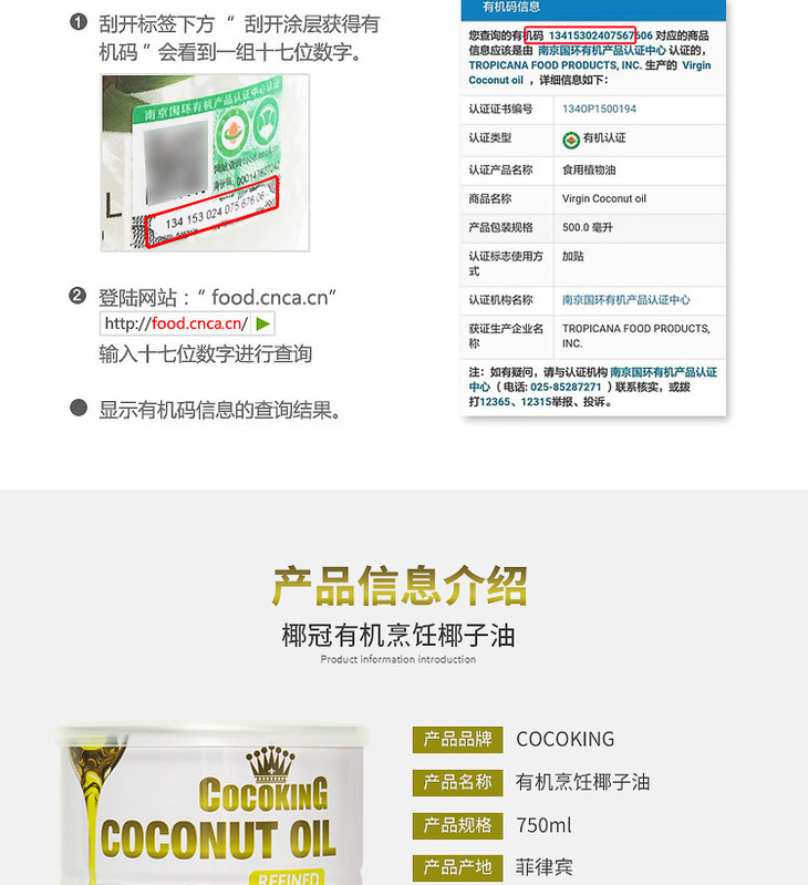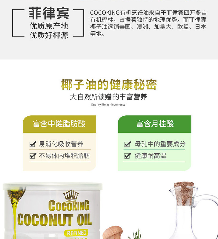 【椰冠】菲律宾原装进口 有机精炼椰子油750ml 无椰香 烹饪椰子油
