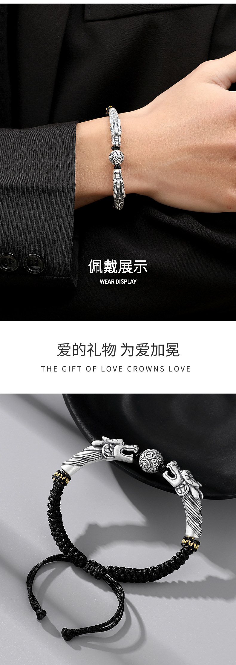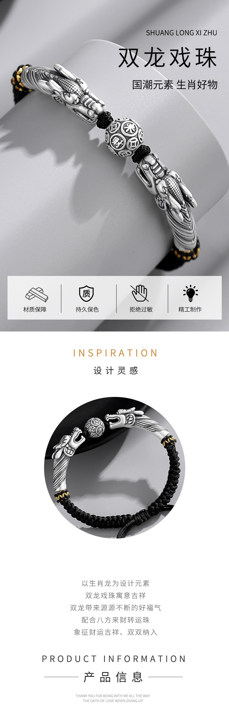 Winy 999足银双龙戏珠手链配证书送男友生日节日礼物