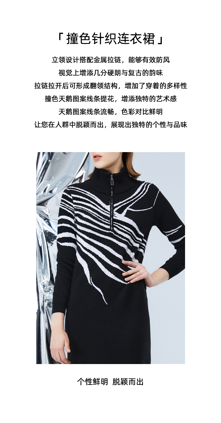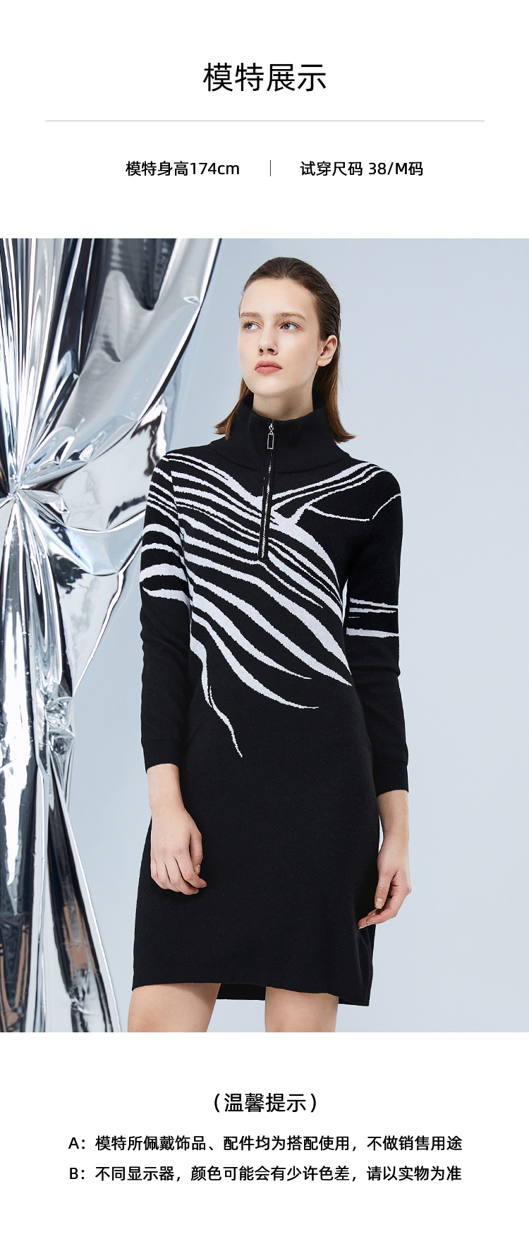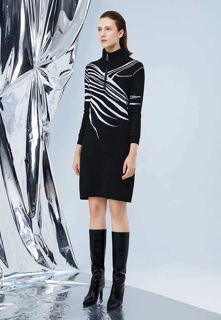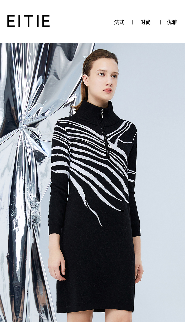 EITIE爱特爱冬季新款高级感印花显瘦高领百搭针织衫连衣裙7601310