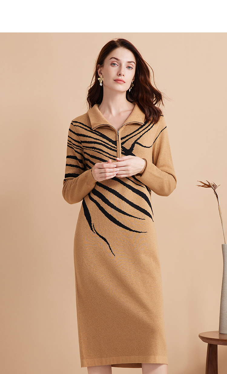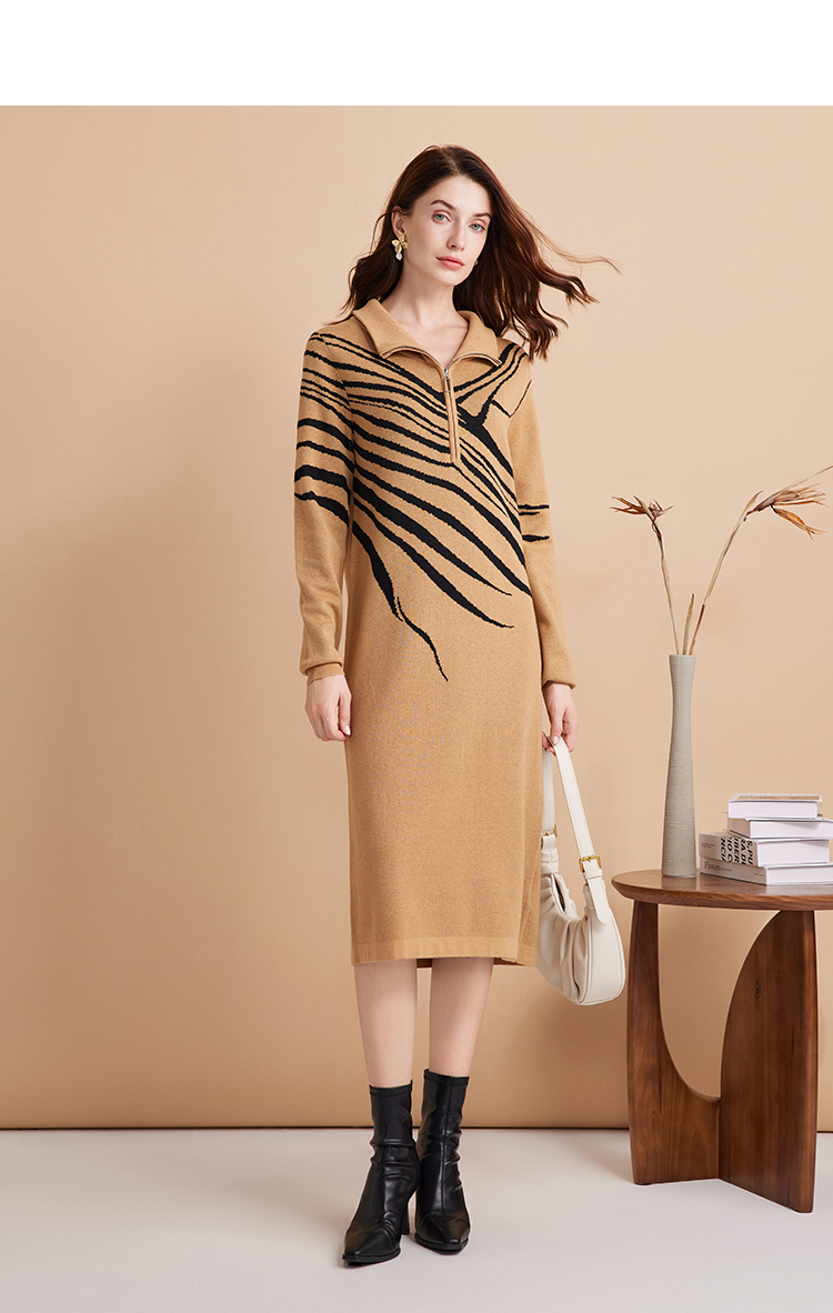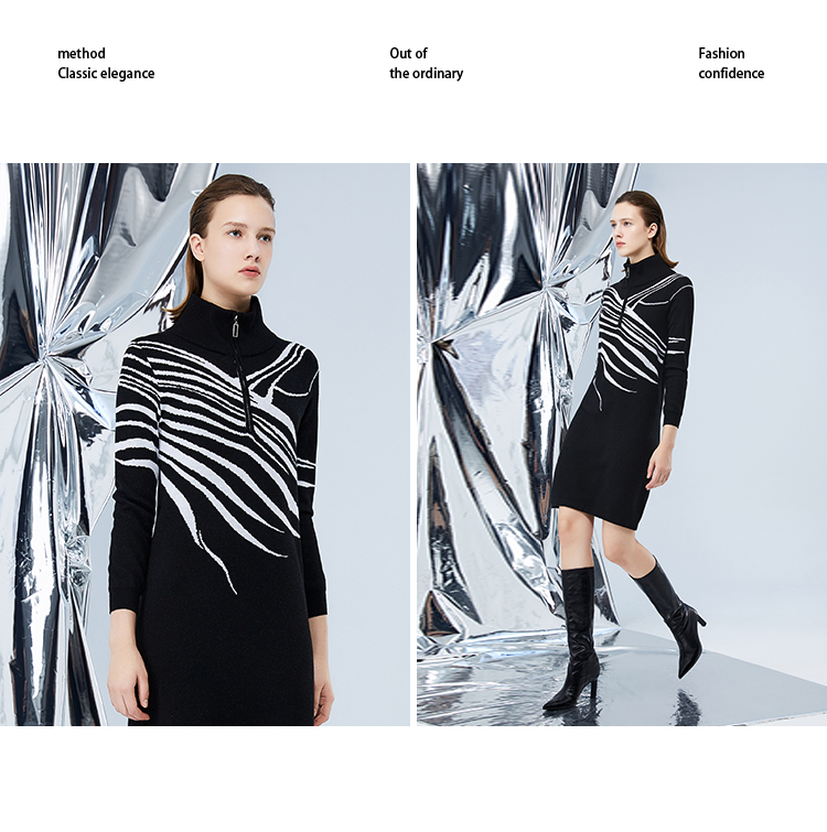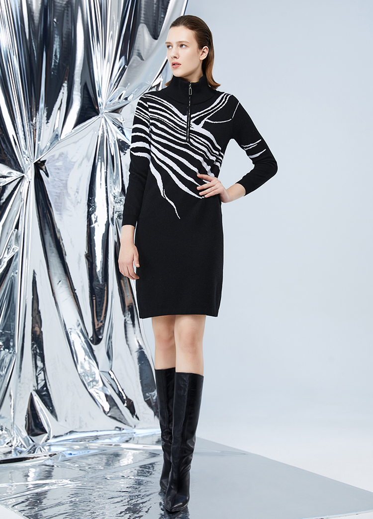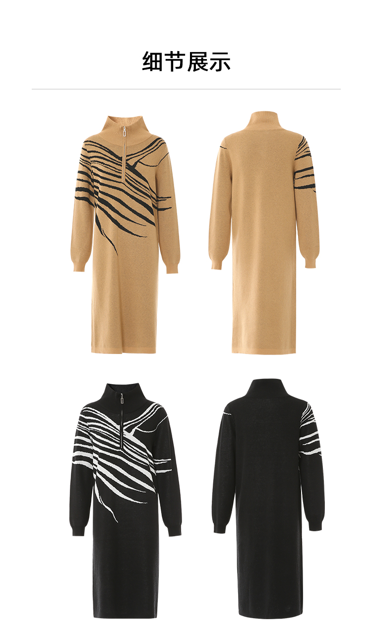 EITIE爱特爱冬季新款高级感印花显瘦高领百搭针织衫连衣裙7601310