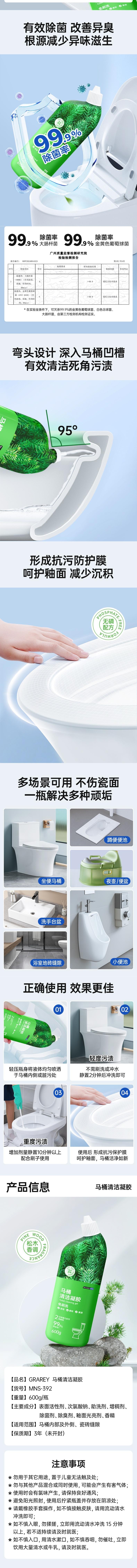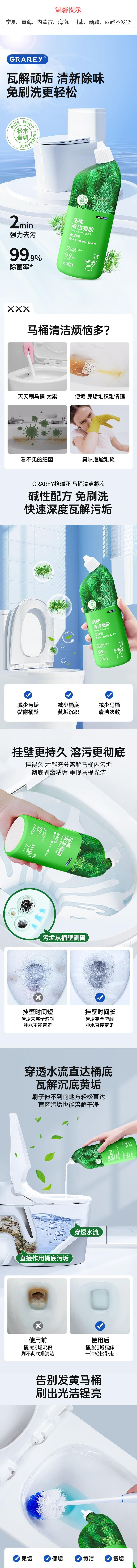GRAREY格瑞亚 马桶清洁凝胶免刷洗自动清洁款600g*3 MNS-392