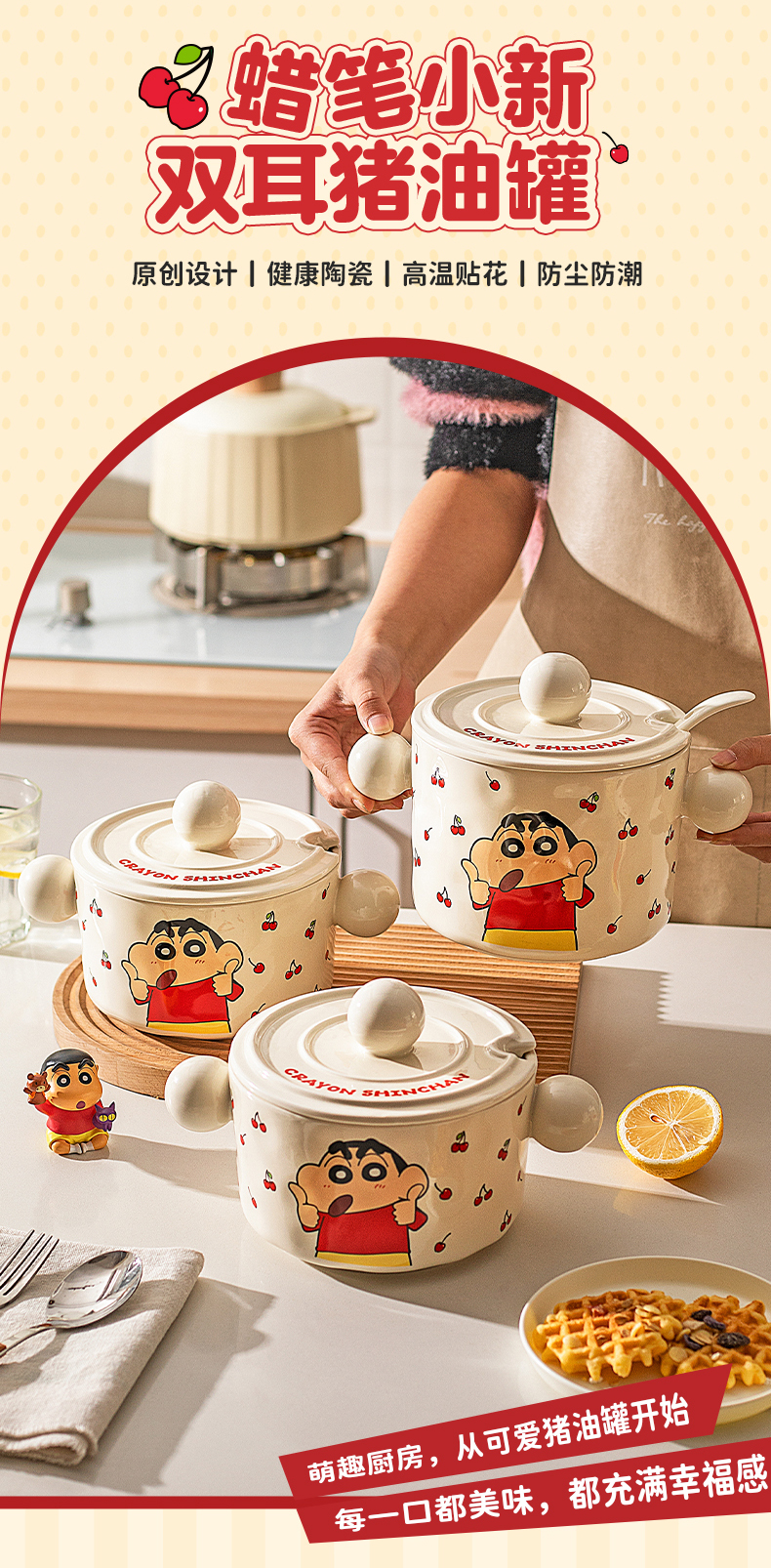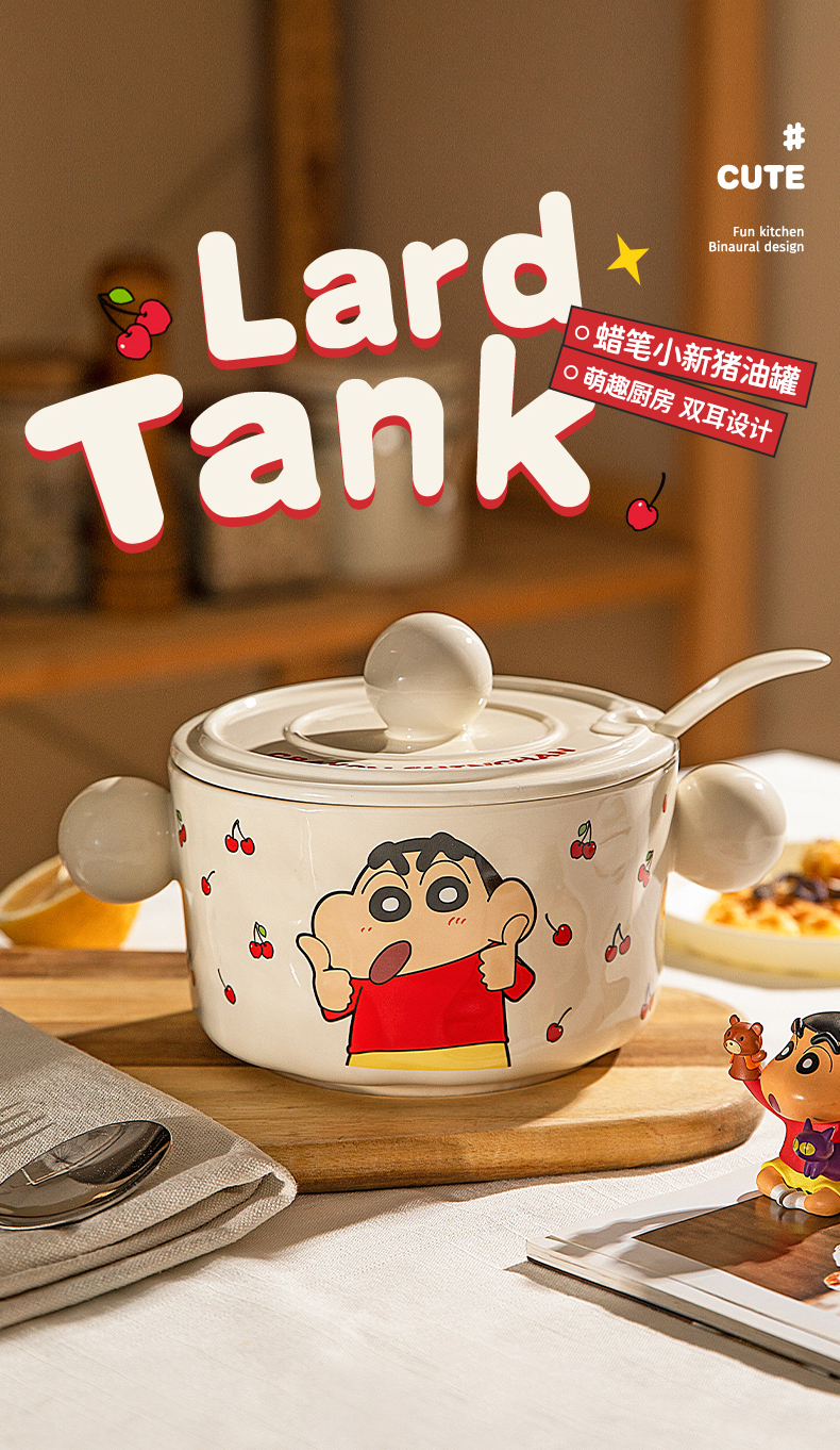 摩登主妇&蜡笔小新 猪油罐陶瓷家用耐高温辣椒油专用调料罐子