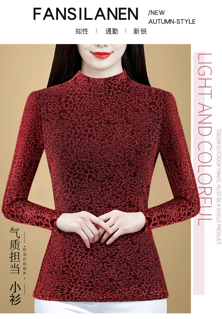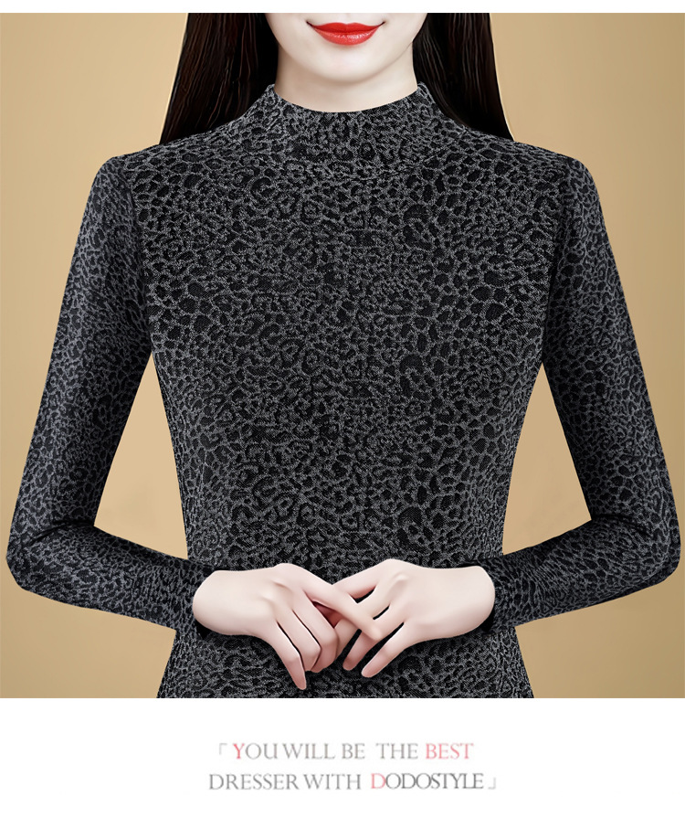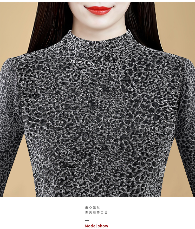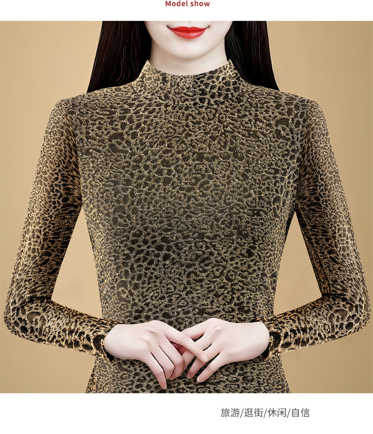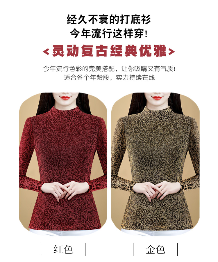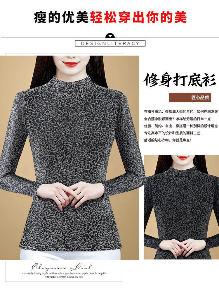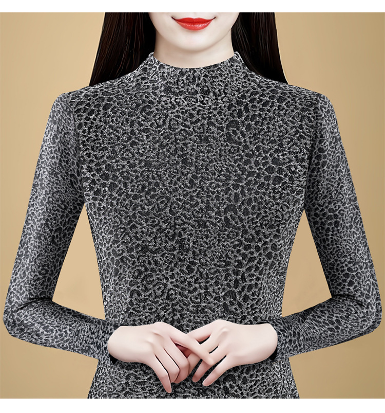 KQL 750G530网纱长袖t恤优雅复古立领加绒上衣