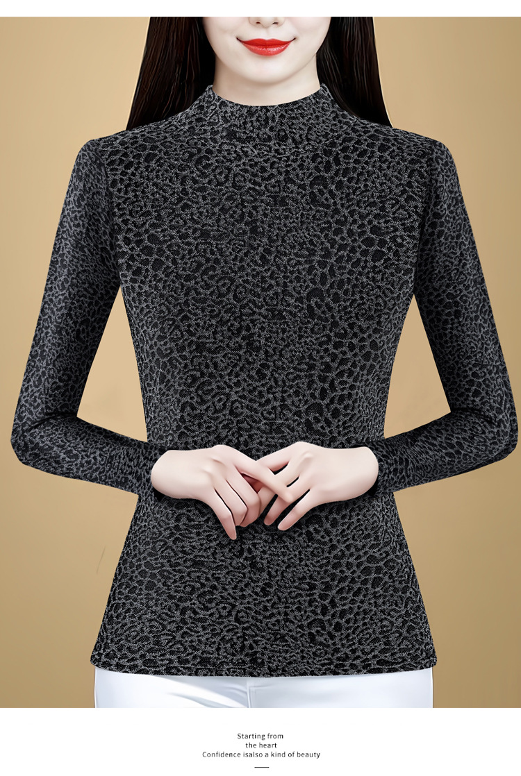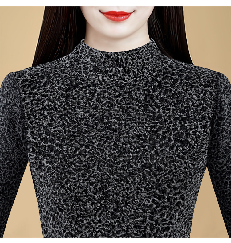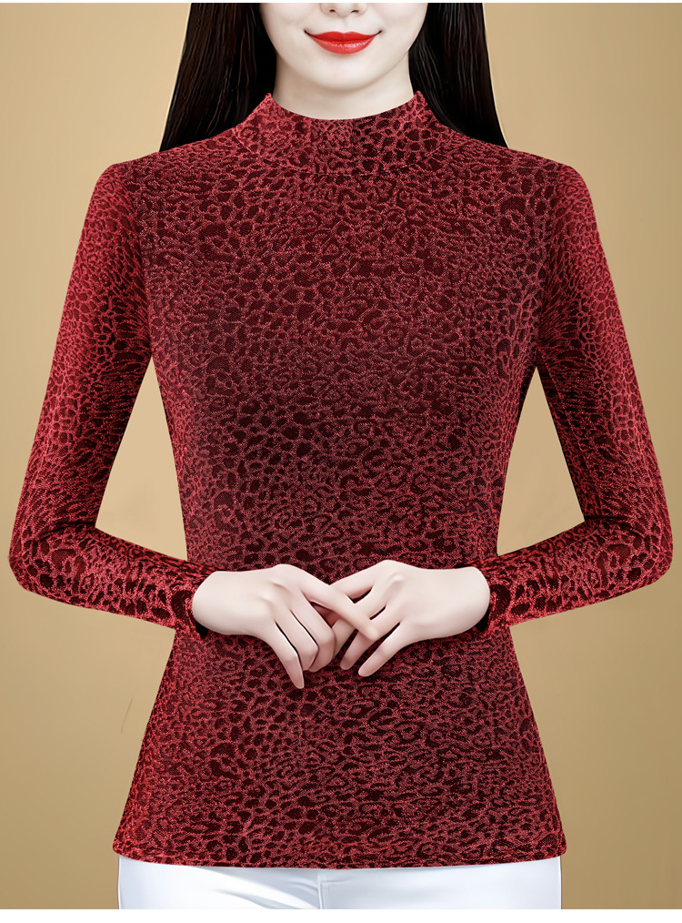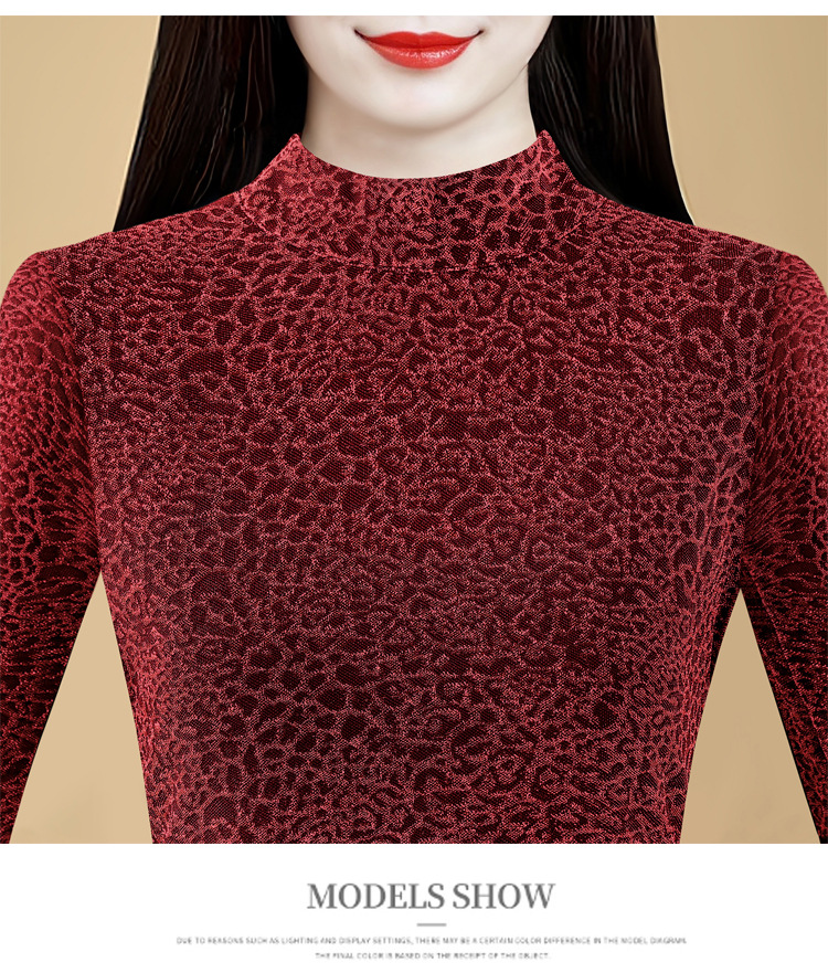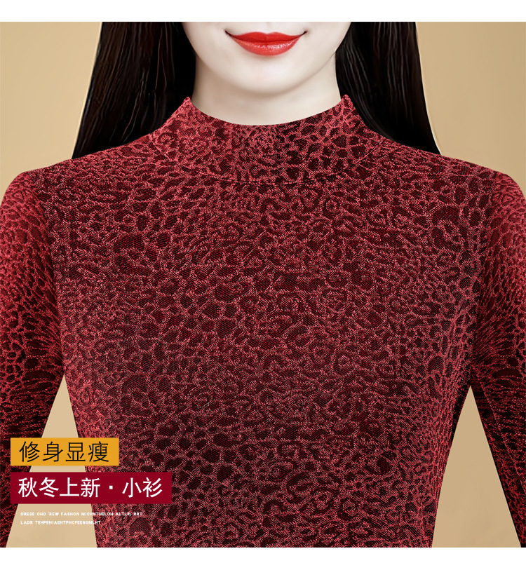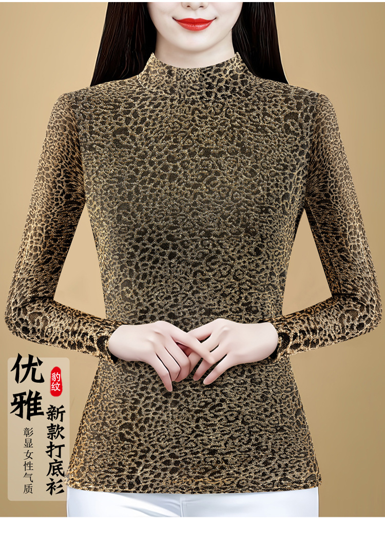 KQL 750G530网纱长袖t恤优雅复古立领加绒上衣