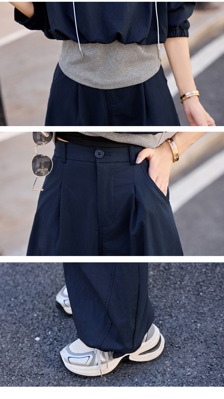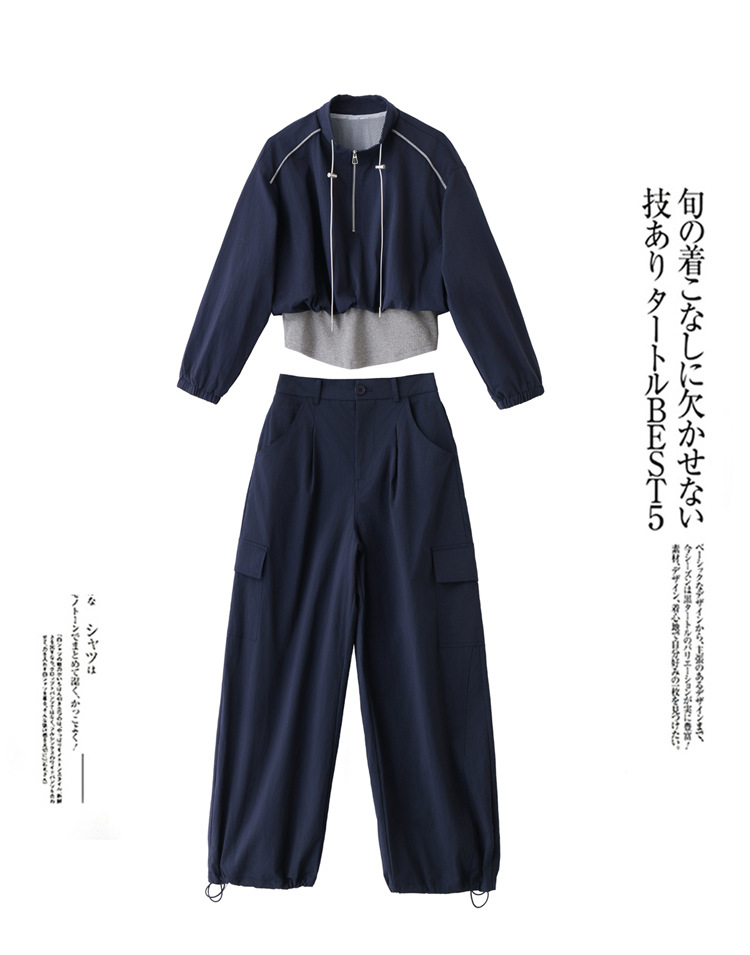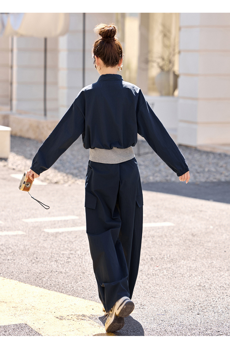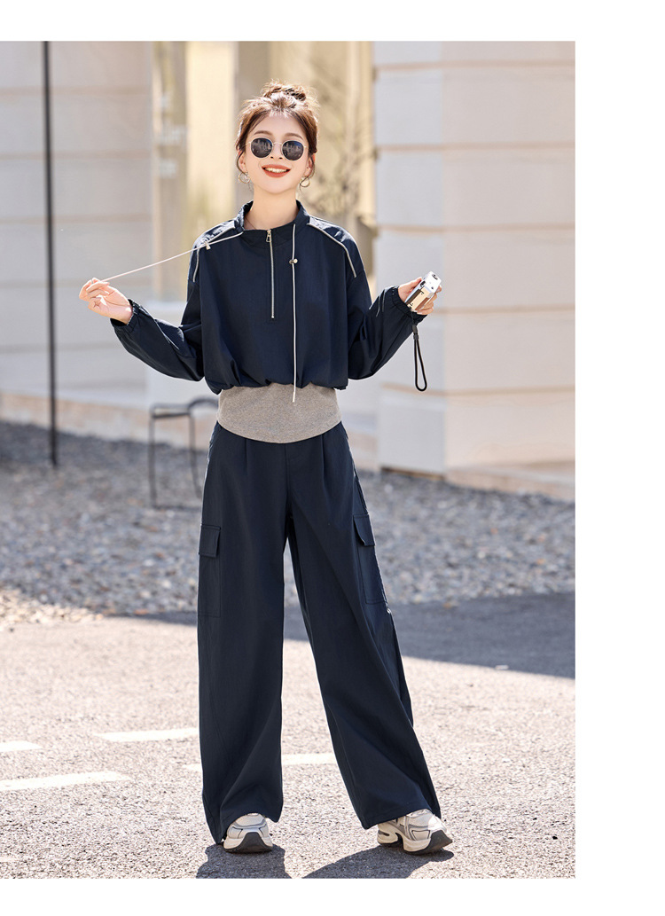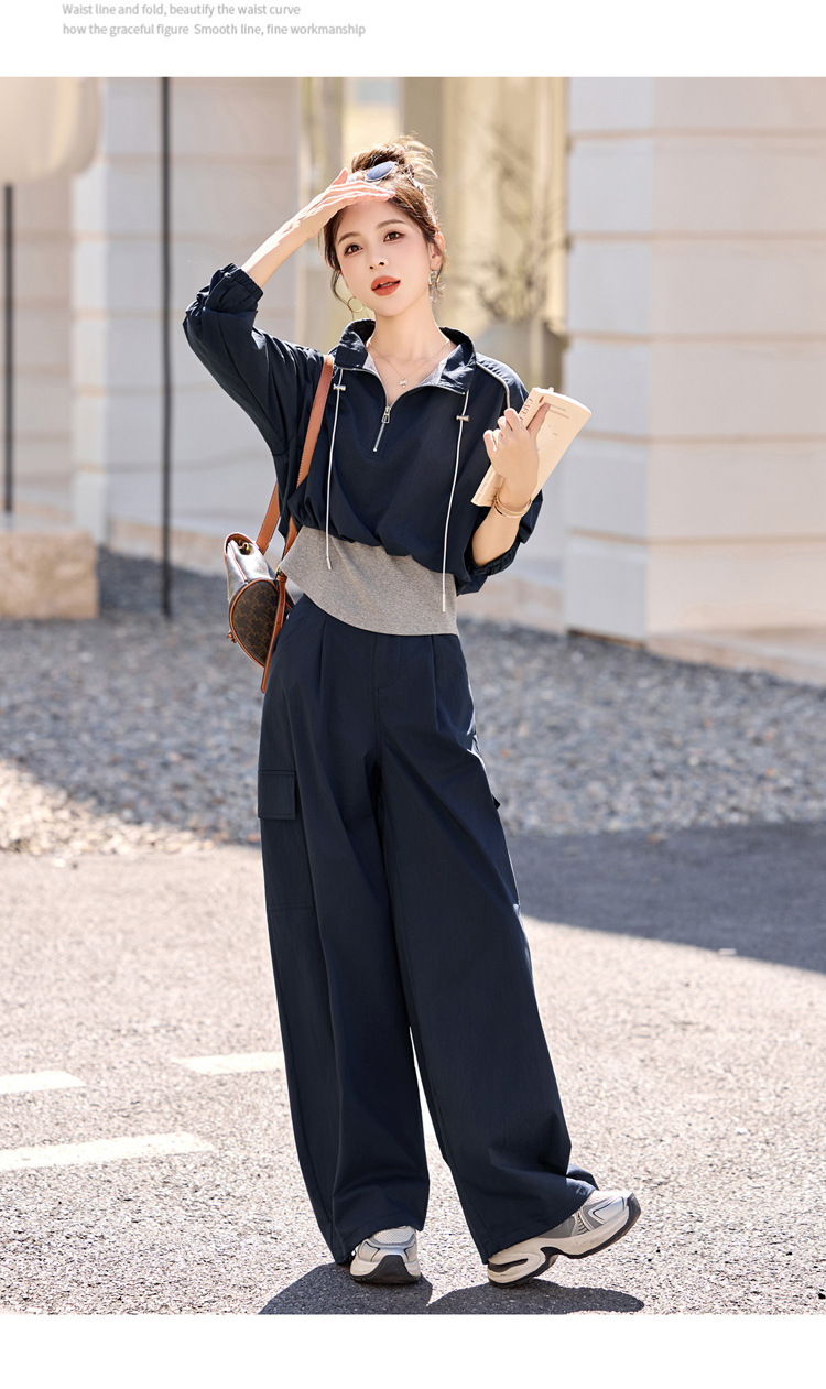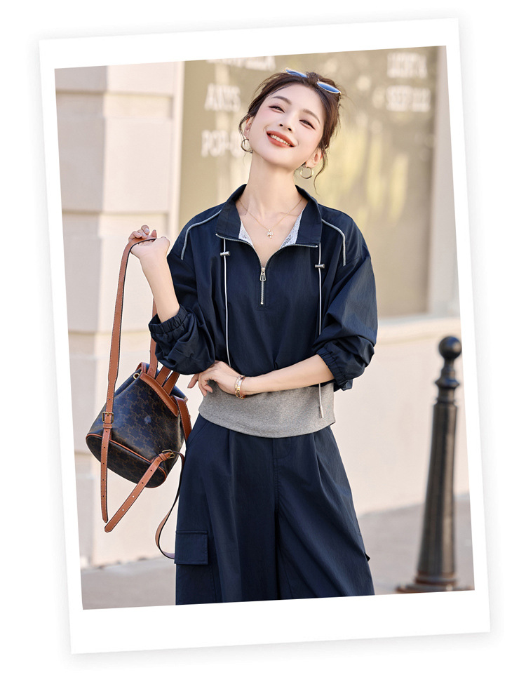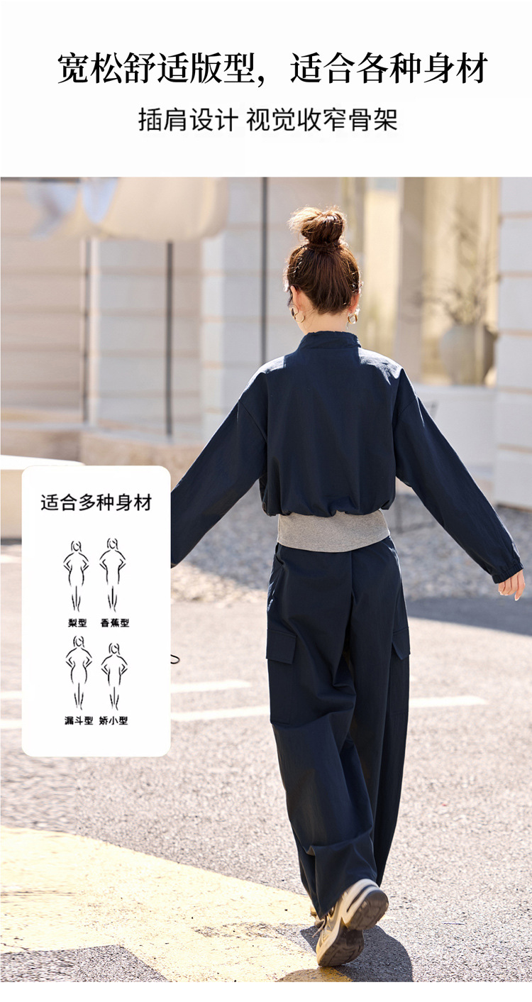 HR YF2615慵懒风休闲运动工装套装假两件拼接上衣阔腿裤二件套 商品图4