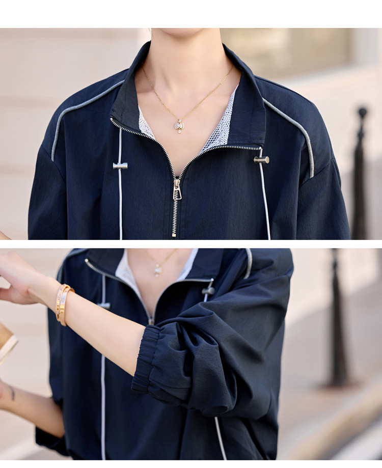 HR YF2615慵懒风休闲运动工装套装假两件拼接上衣阔腿裤二件套 商品图3