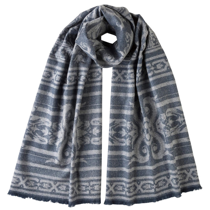 美利奴羊毛提花围巾 180x50cm 蓝色