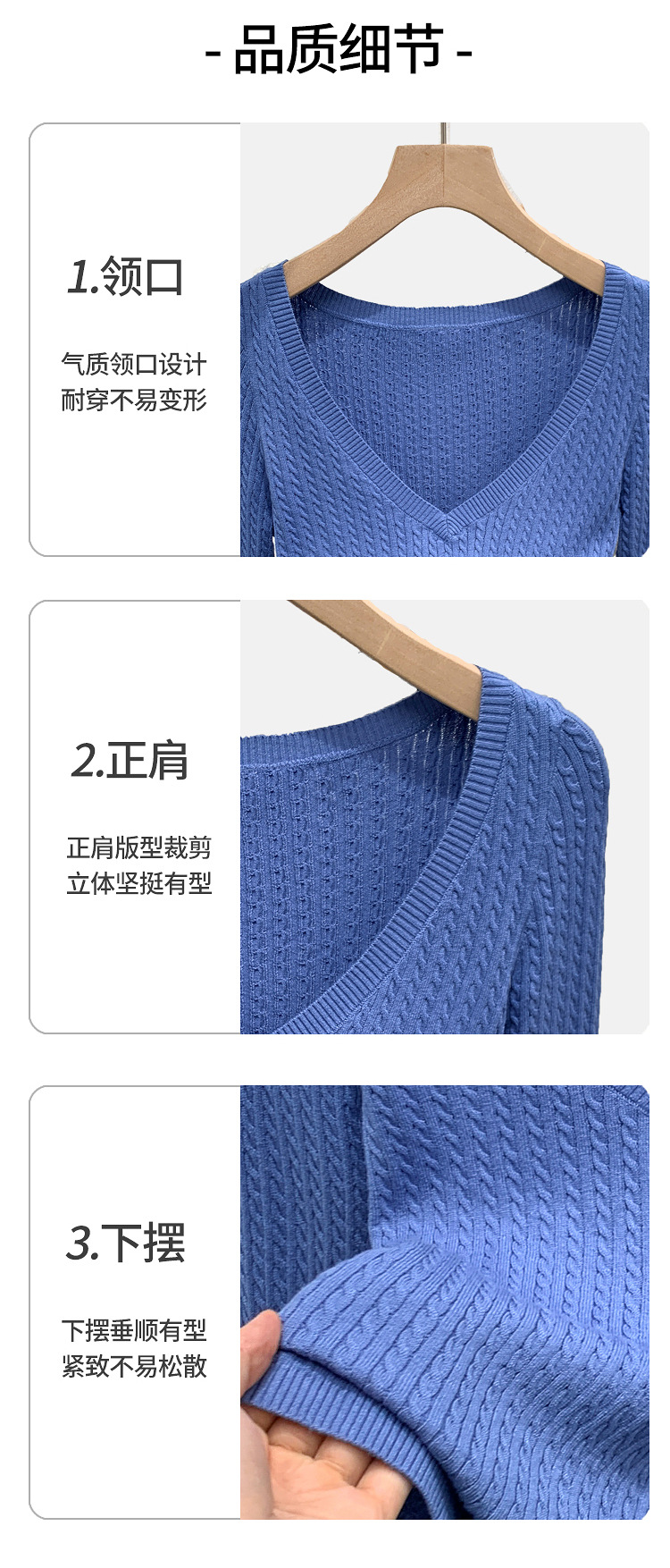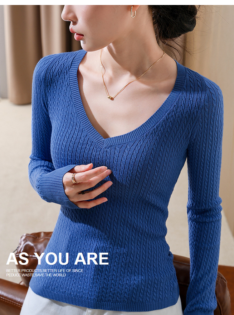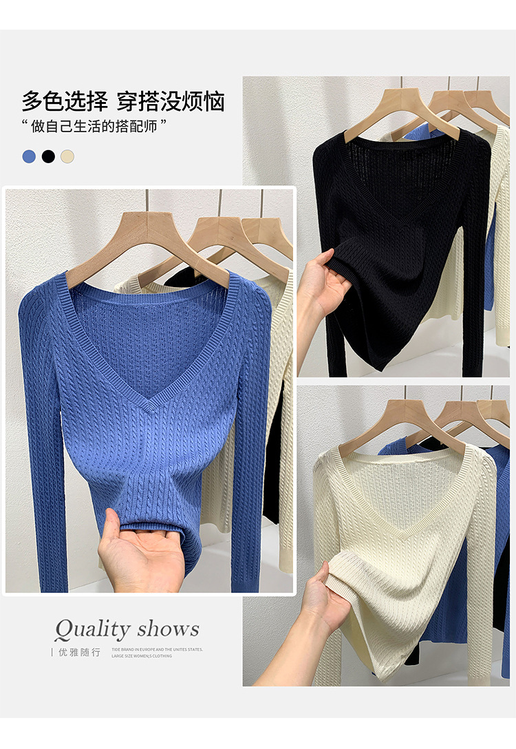 I5D2689-CS针织打底衫女2025新款女装显瘦V领麻花肌理长袖毛衣收腰内搭上衣