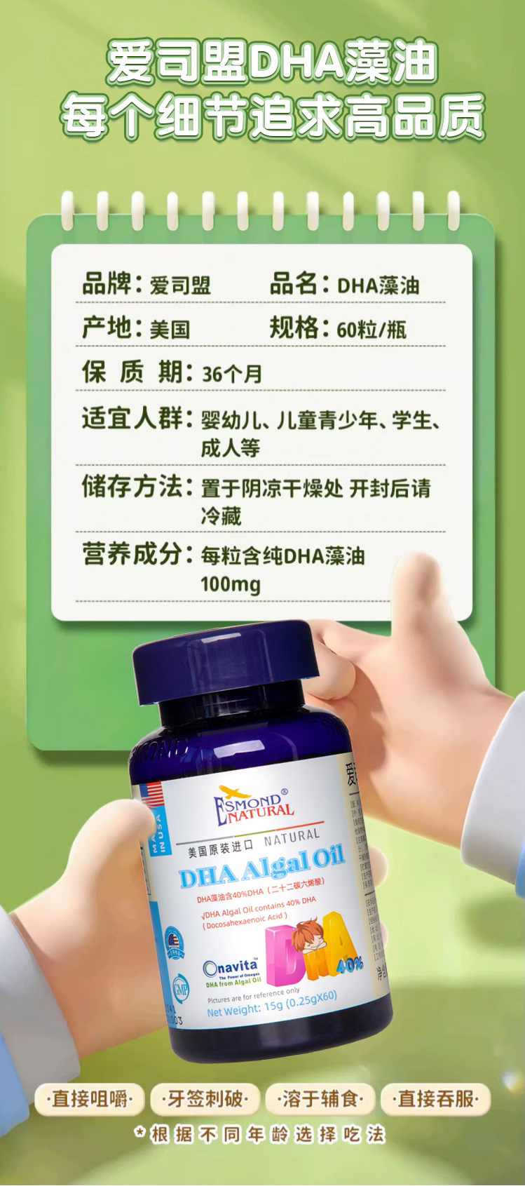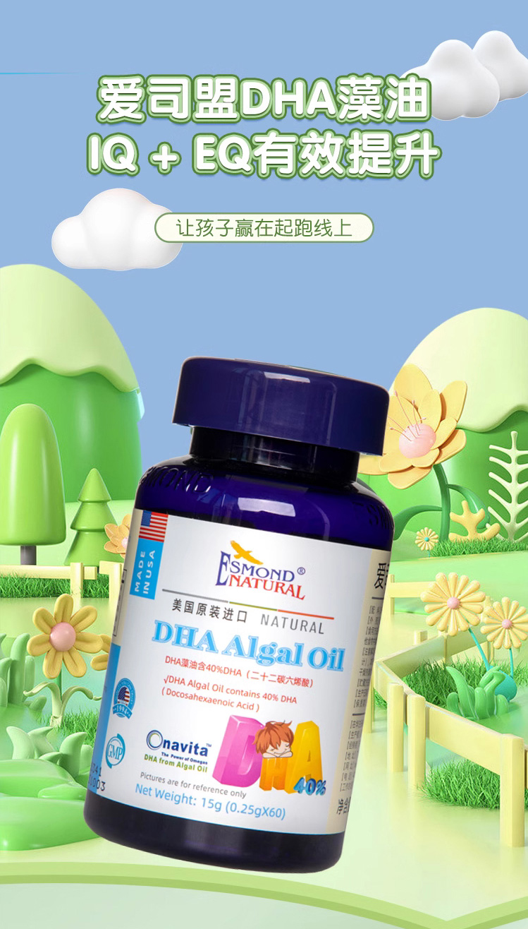 【叼健康】【快递发货】美国爱司盟牌DHA藻油(凝胶糖果)/1瓶(0.25g*60粒)生产日期:25年1月