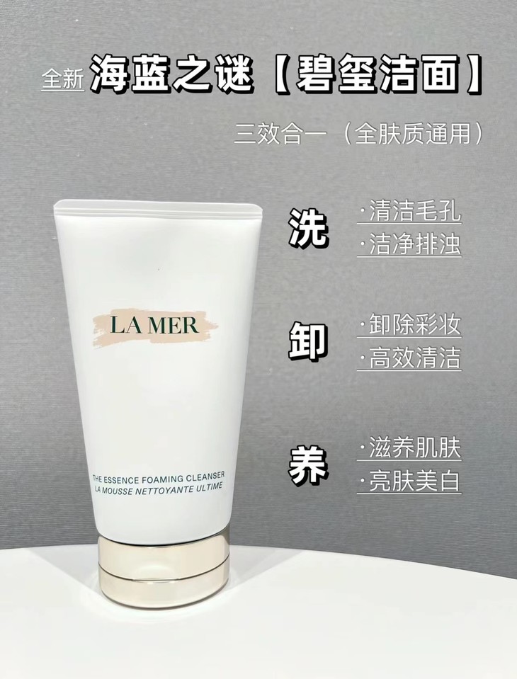 👑LA MER海蓝之谜洗面奶125ml 新版 🔥新成分、新添加、新质地、新包装 🌟以【清洁】【卸妆】【滋养】三合一全新洁面 ✨独家专利“磁解水”,产生丰富泡沫,展示出色清洁功效 ✅含有珍珠粉和磁化宝石等成分,清洁又养肤 👏氨基酸洁面,温和不刺激不紧绷 🌈超强清洁力,日常彩妆、防晒、残留一起带走,高效清洁,更全能