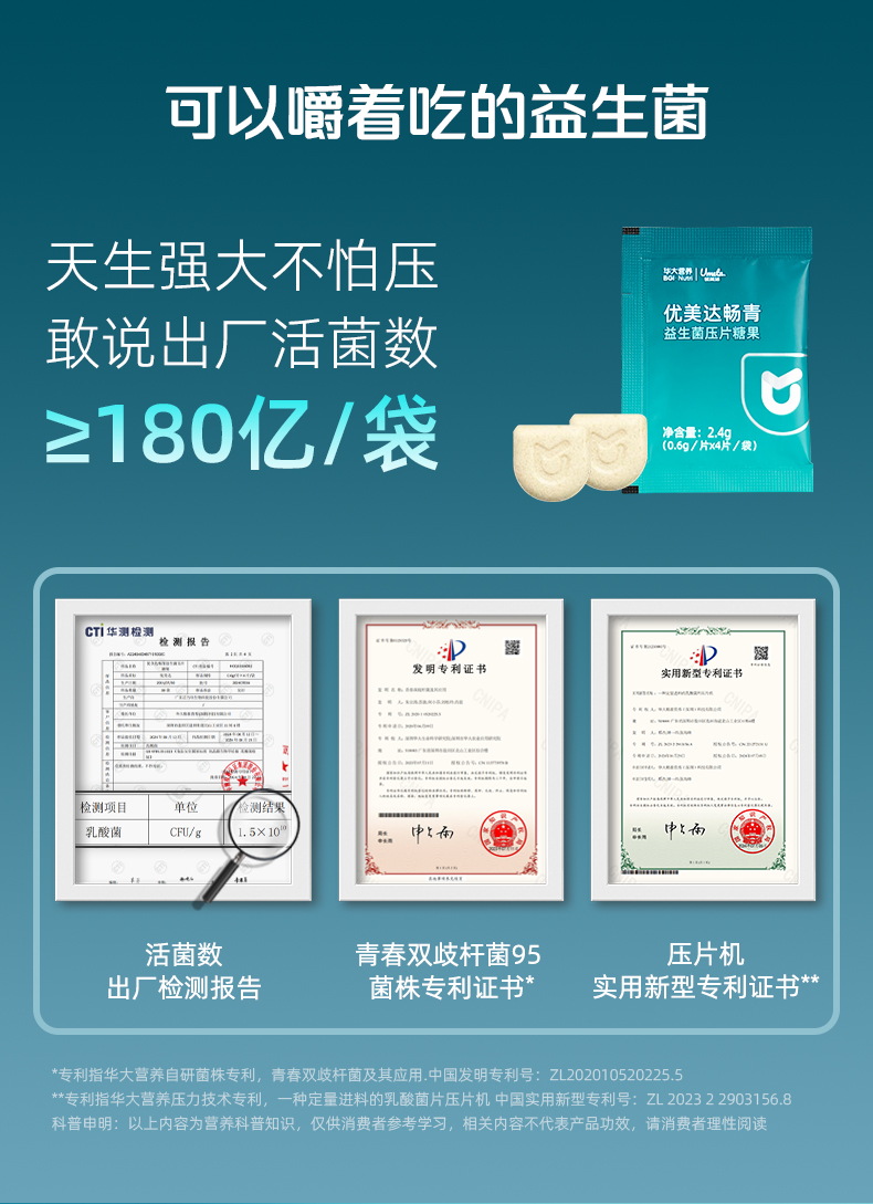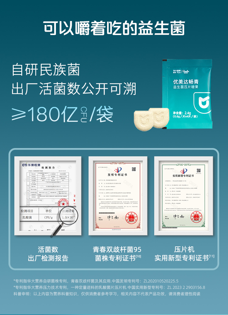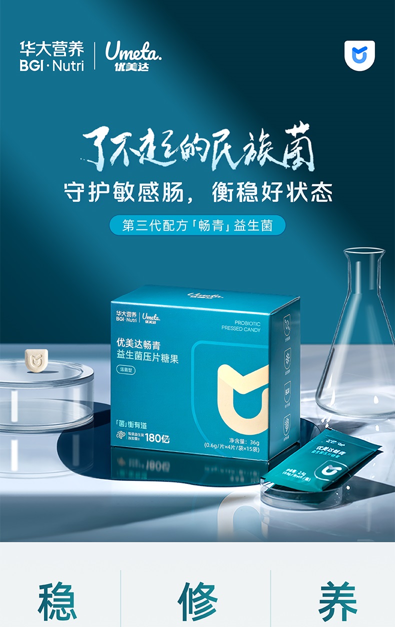【升级版-畅青肠道益生菌】华大益生菌压片糖果 3岁以上可食用 菌株革新 活性升级+ 两大优质益生元