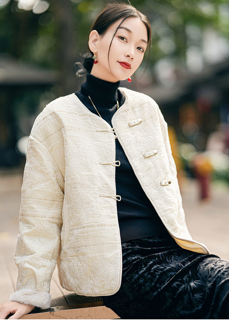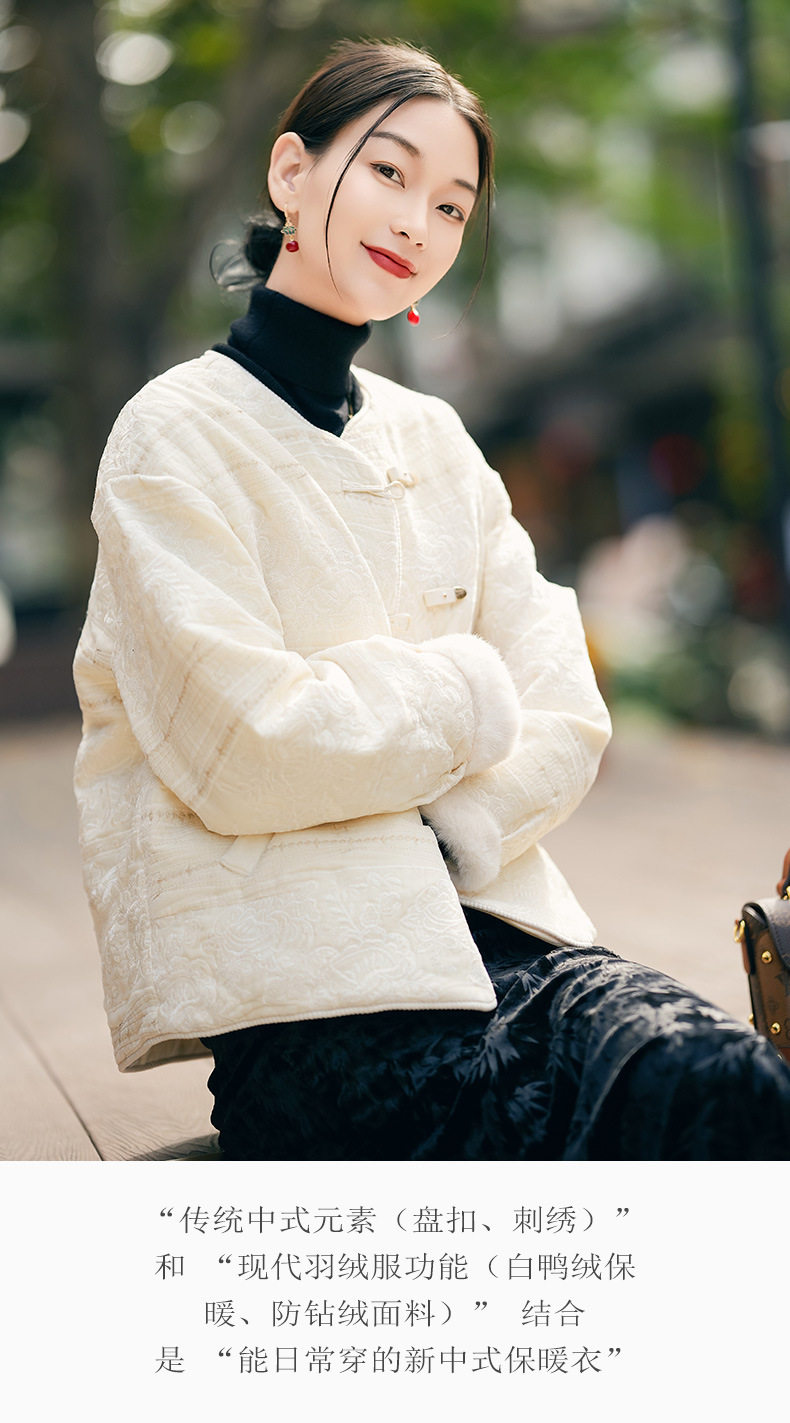 「自」全新升级【铂金会员661/天猫899/差价238】(14759)洛诗琳新中式刺绣短款羽绒服2025冬季高级感小香风外套