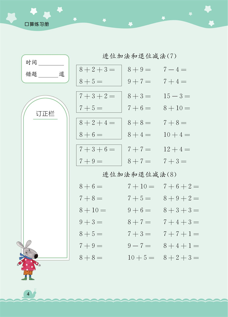 2025年春 口算练习册 课标苏教版 一年级下册1下 小学教辅 数学配套同步教材教辅 计算口算速算 江苏凤凰教育出版社