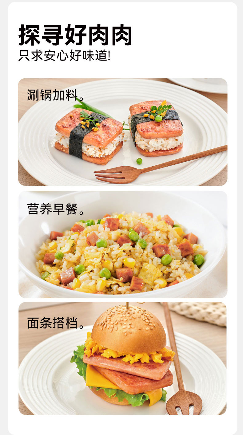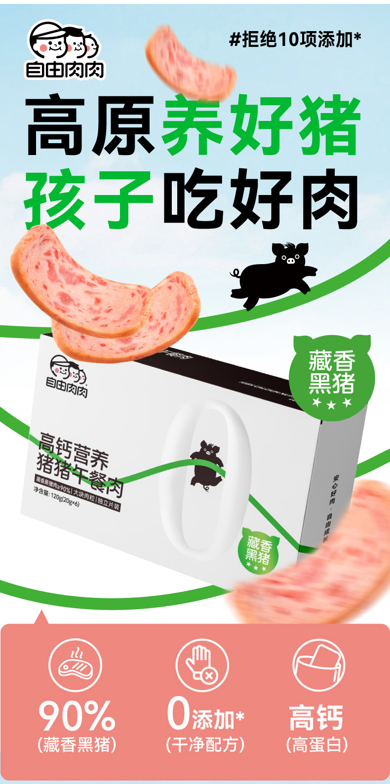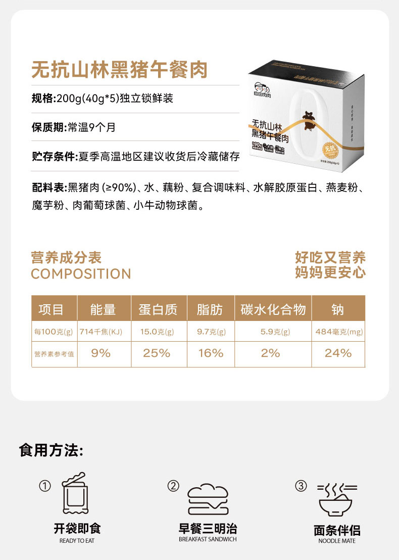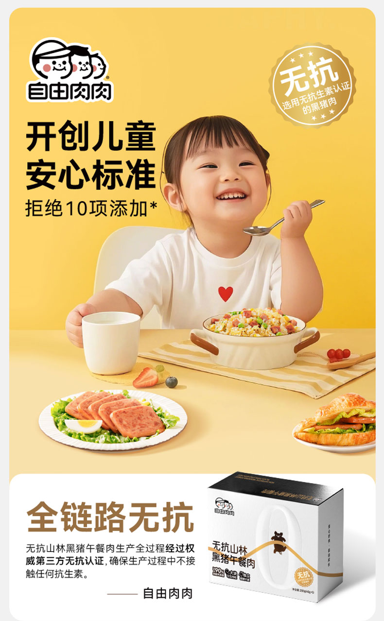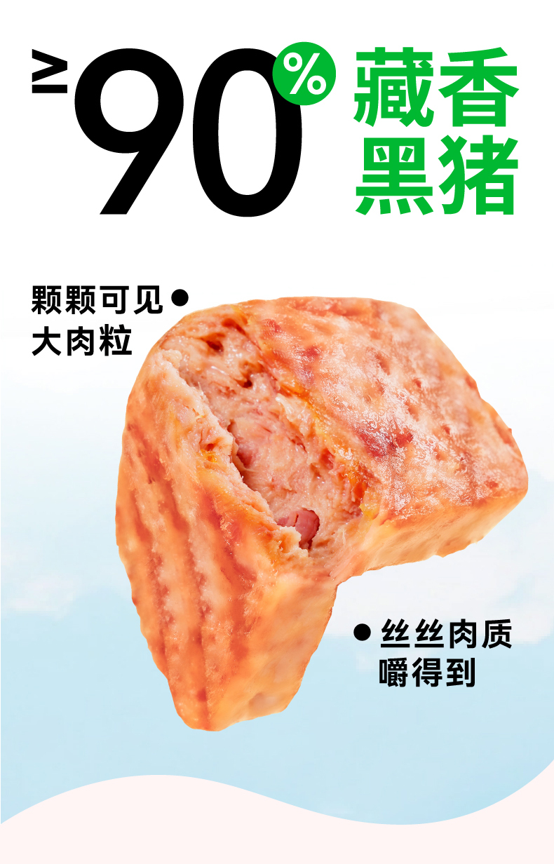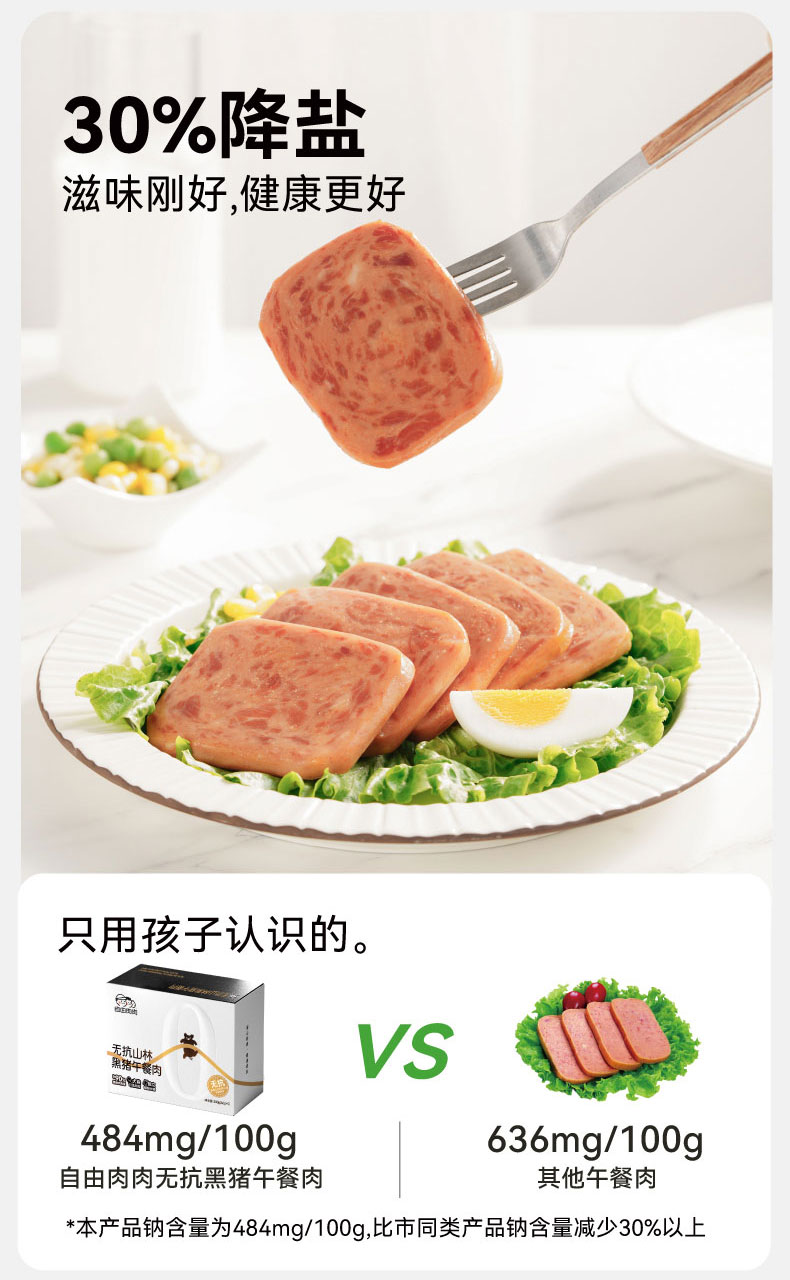 自由肉肉 山林黑猪午餐肉200g/盒 高钙藏香猪午餐肉120g/盒 火腿罐头 肉含量≥90%,少盐,儿童安心标准;独立锁鲜包装