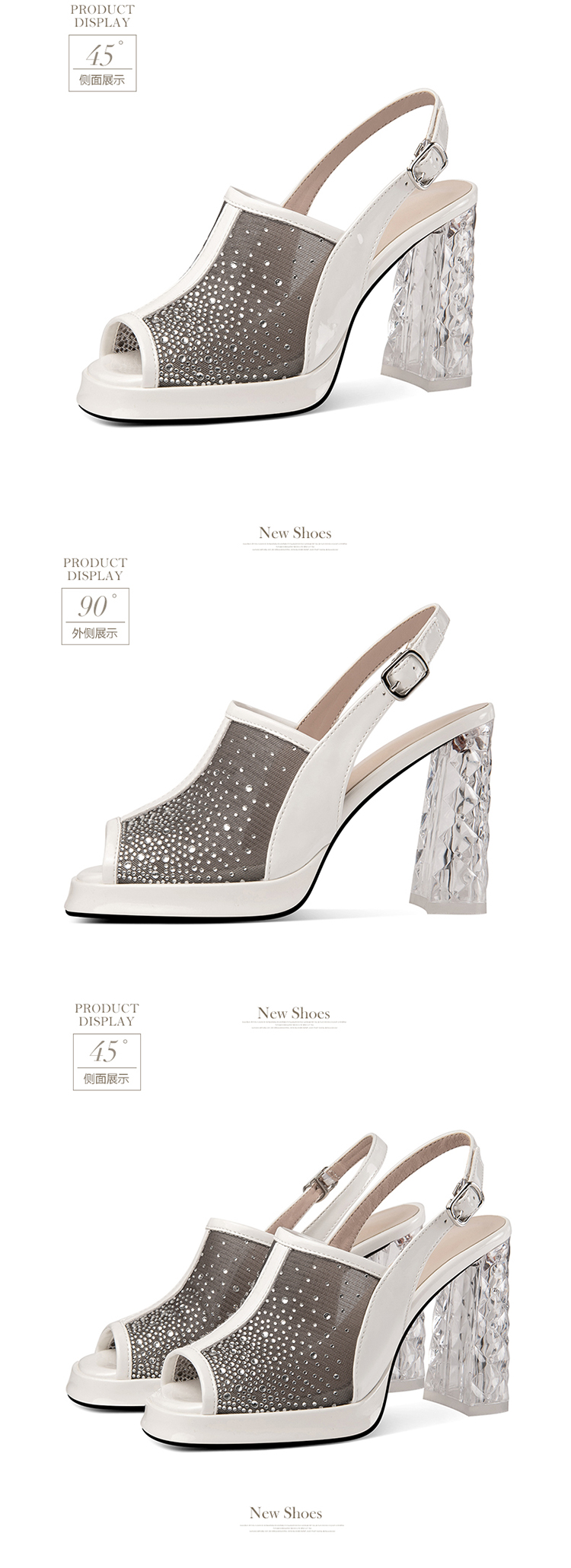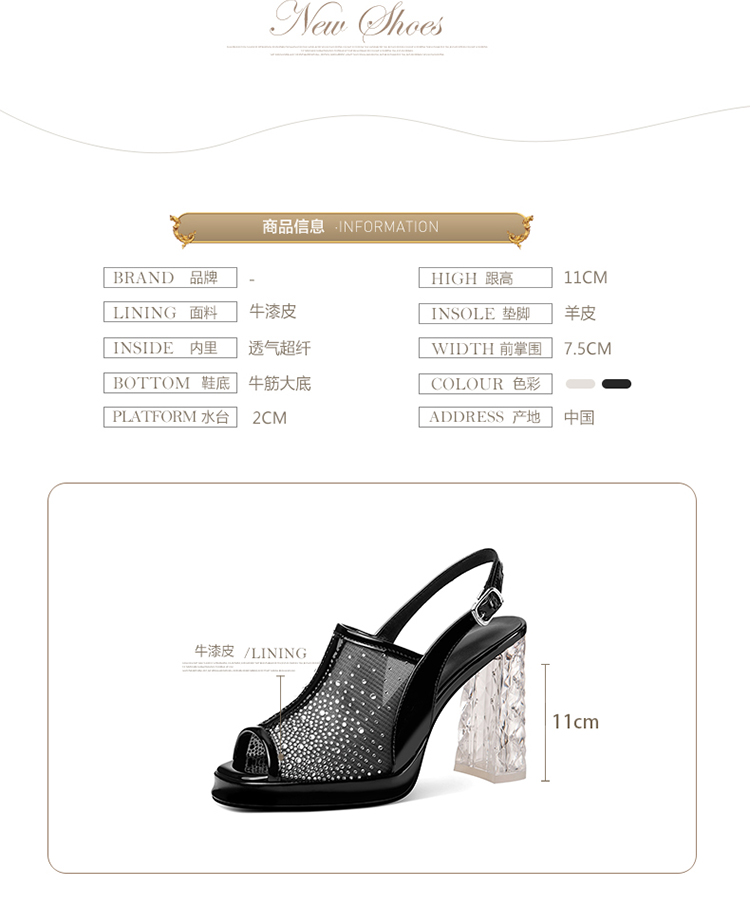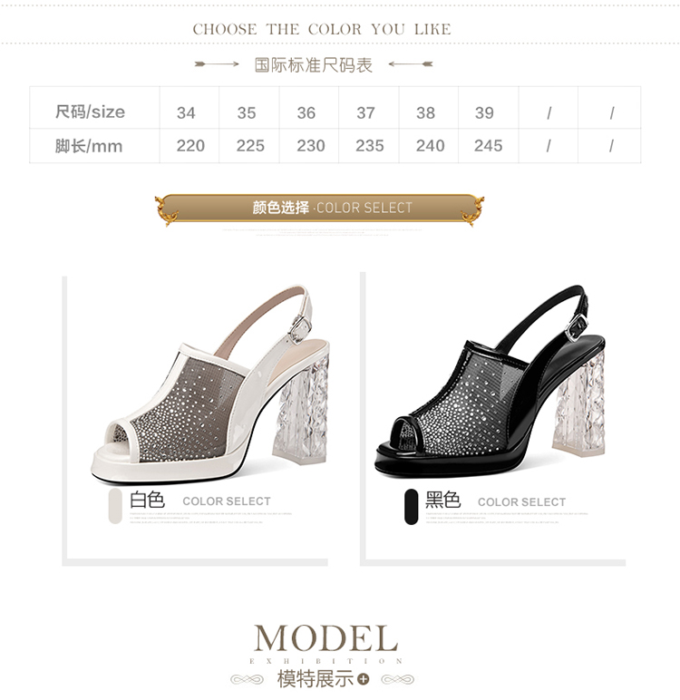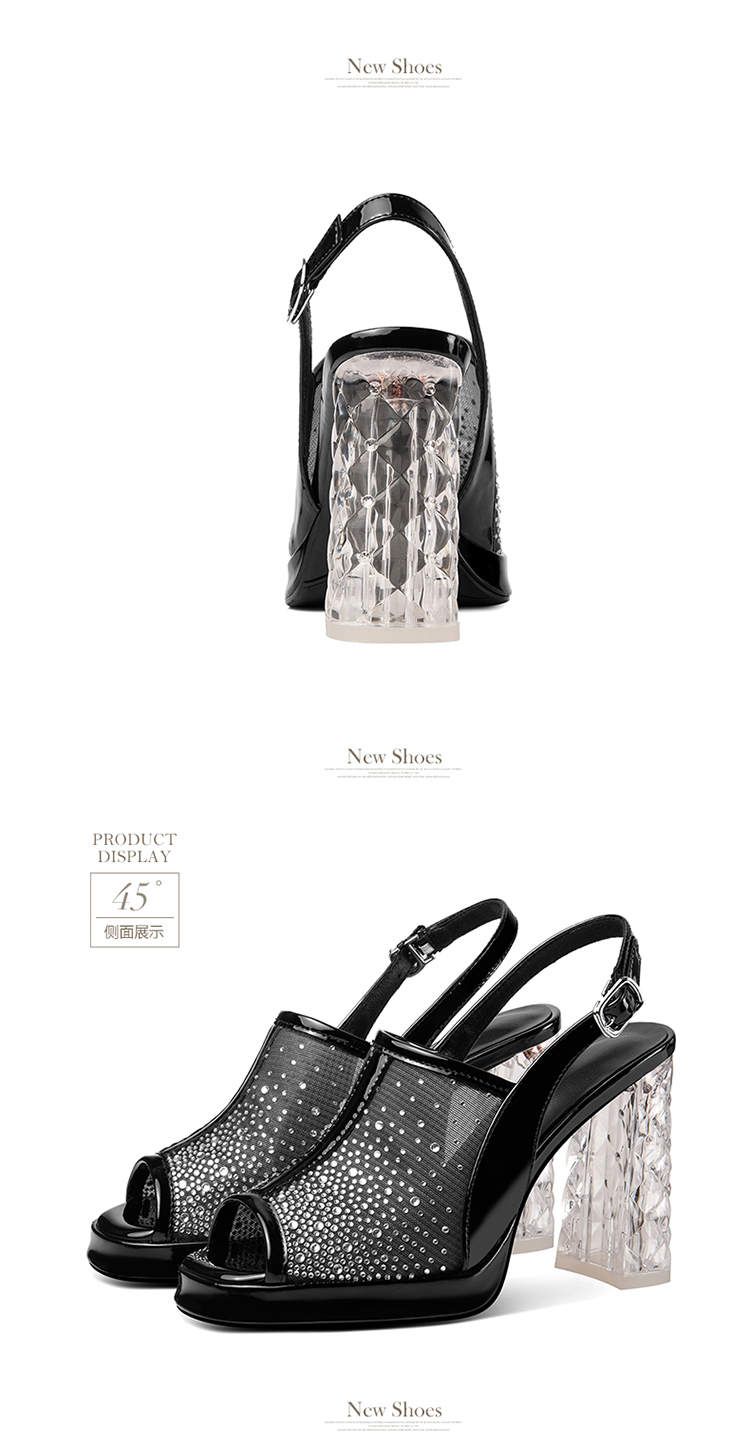 【预售5天】个性鱼嘴百搭,防水台高跟水晶跟凉鞋JQR&7828