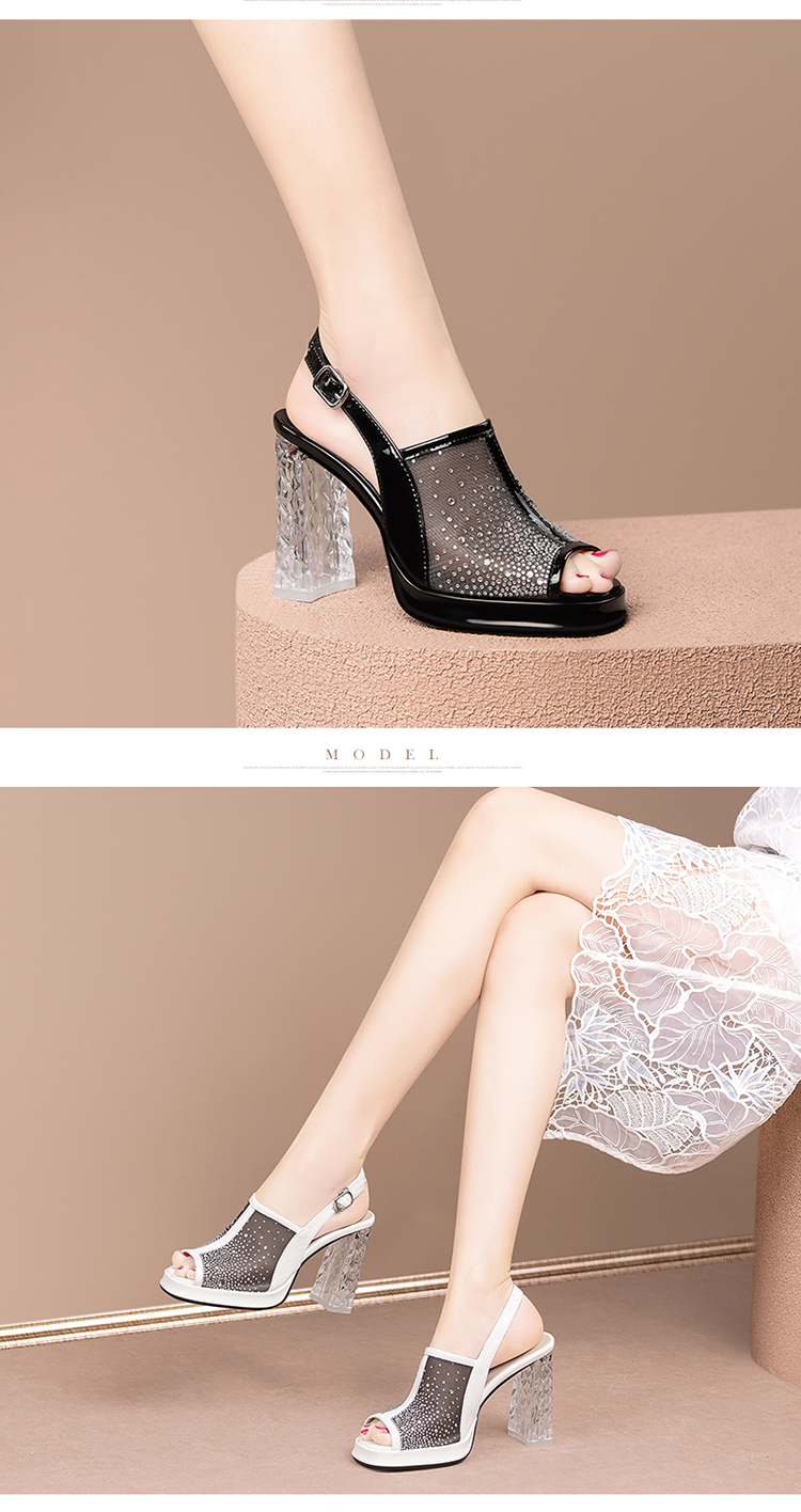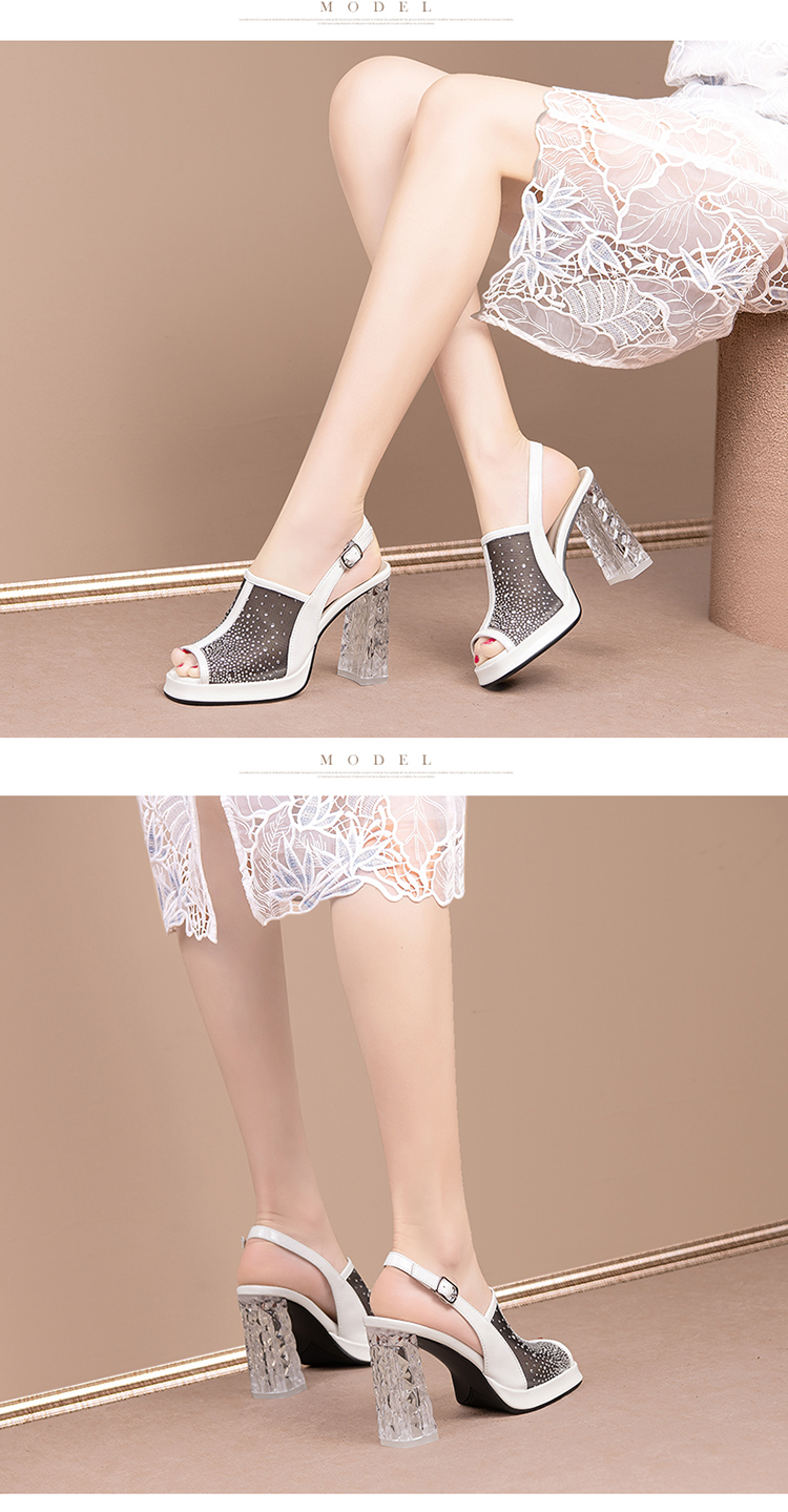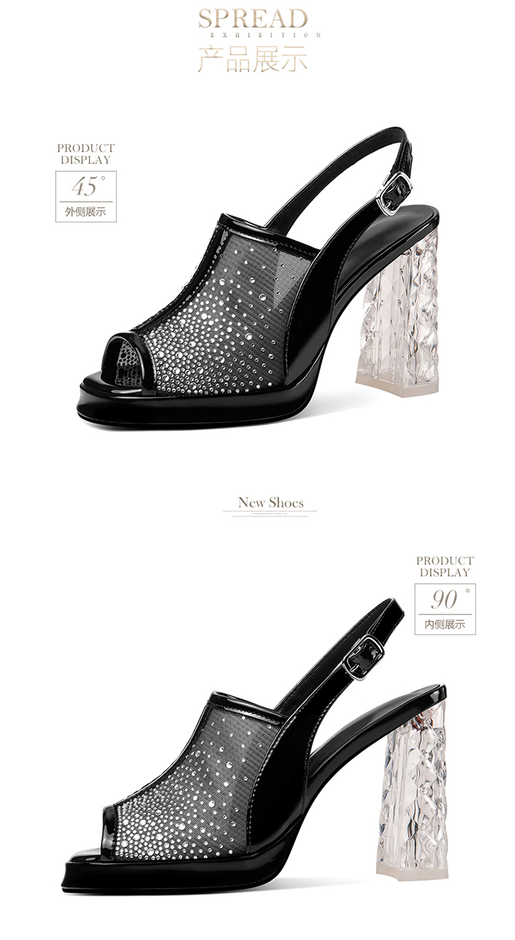 【预售5天】个性鱼嘴百搭,防水台高跟水晶跟凉鞋JQR&7828