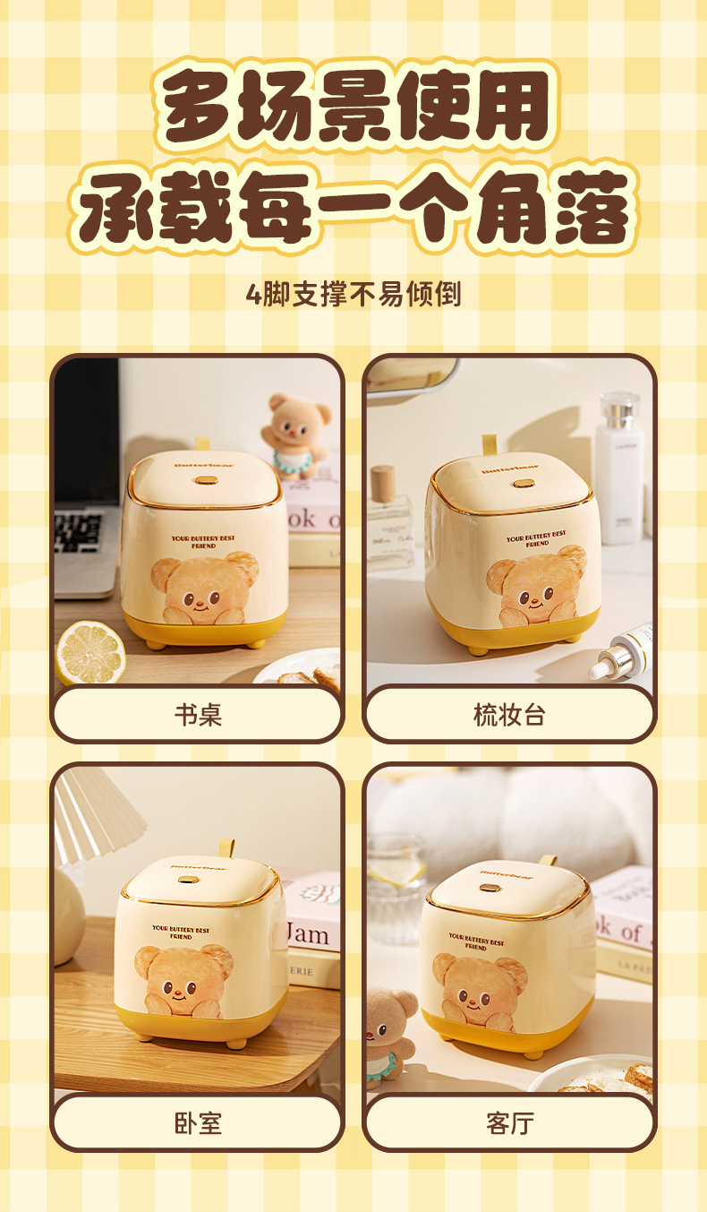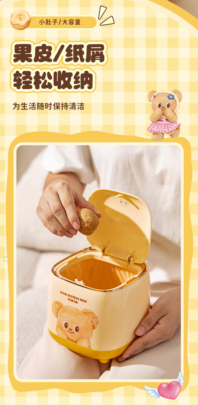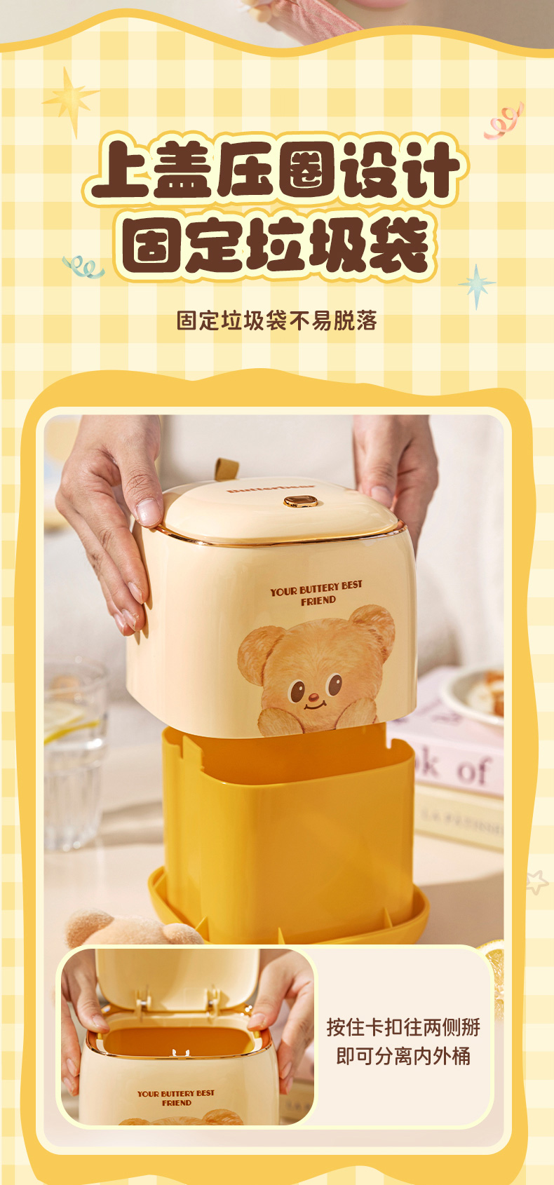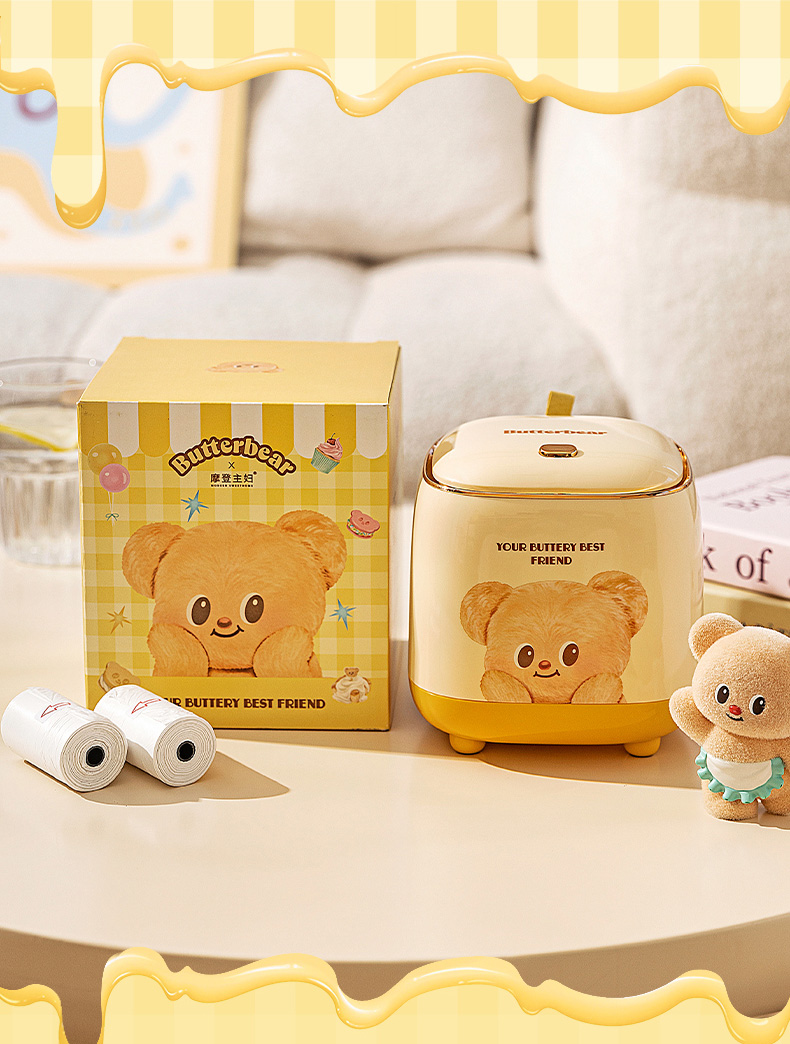 【厨具上新】中国摩登主妇&黄油小熊桌面垃圾桶1.5L(赠60只垃圾袋)