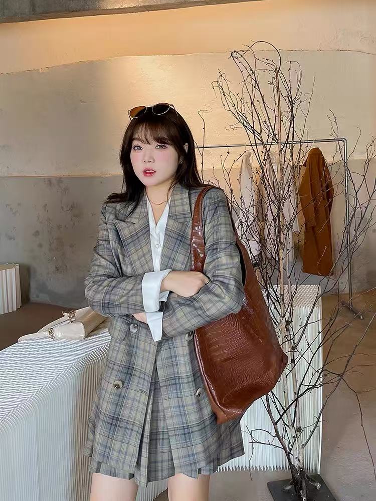 【诗铭洛可】XCA416西服外套格子中长单件外套B22-1