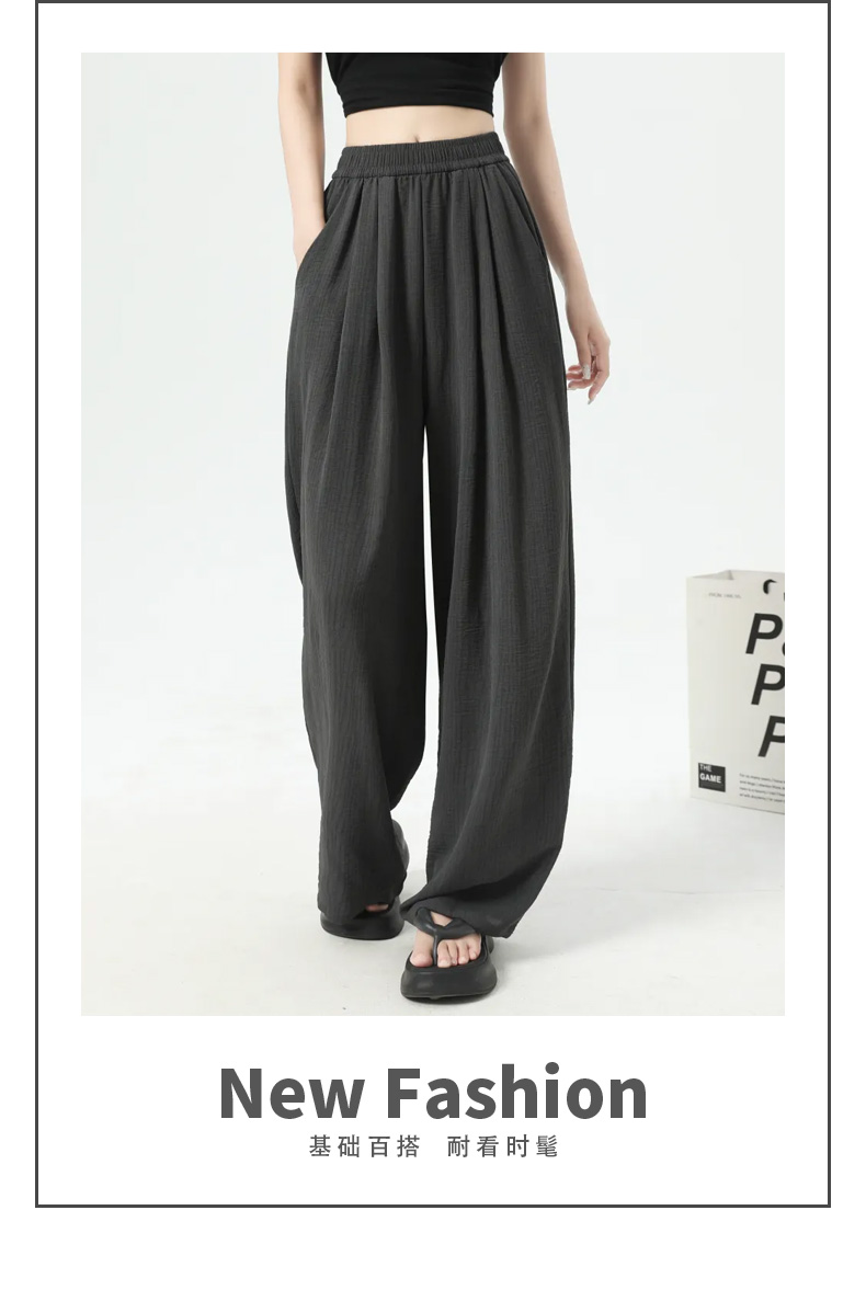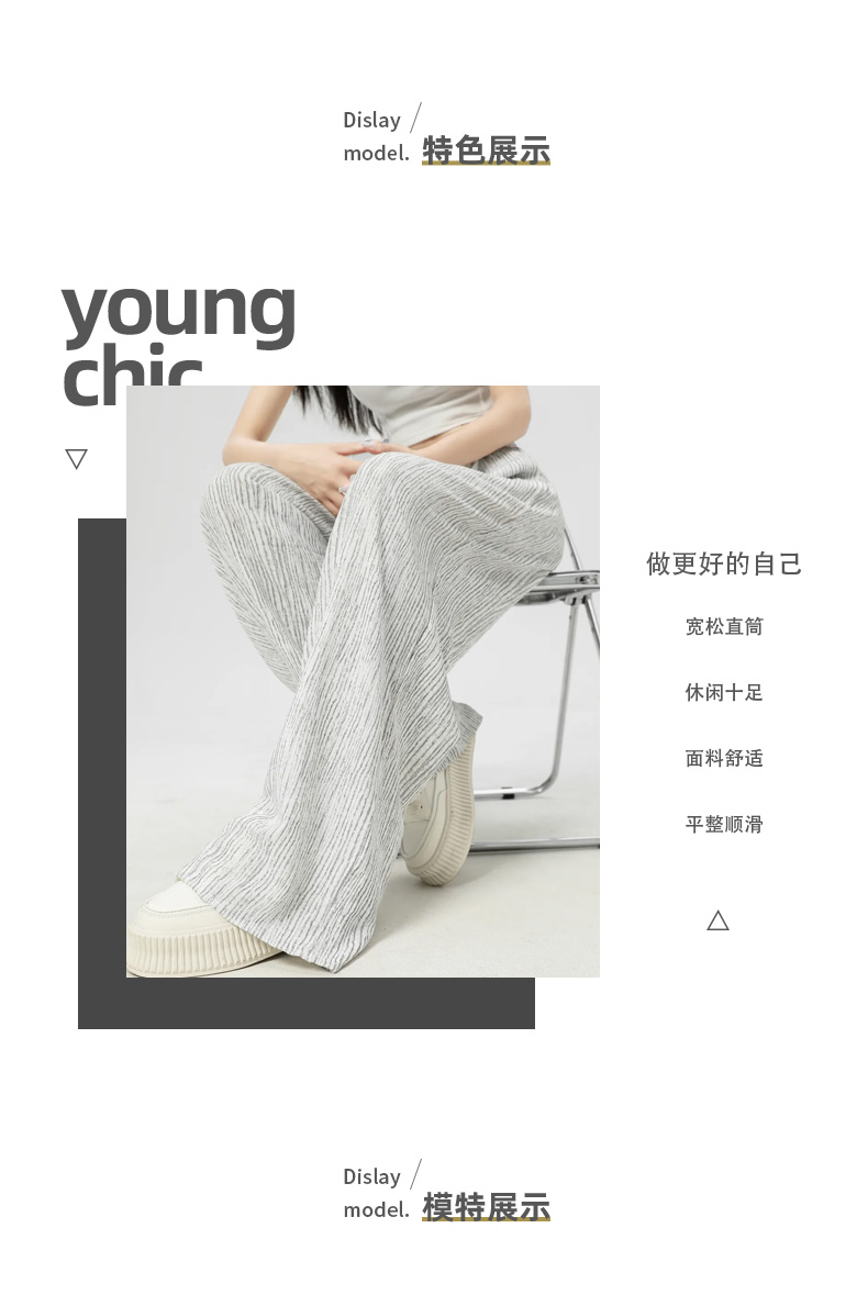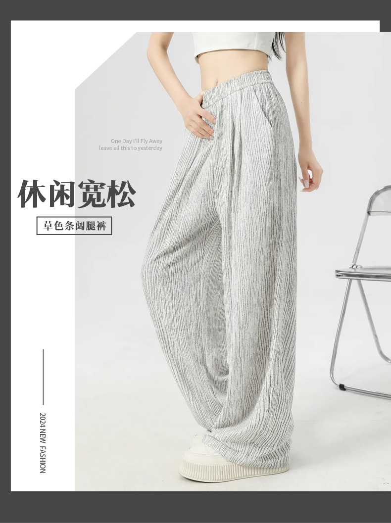 馥迦休闲松弛草色条阔腿裤