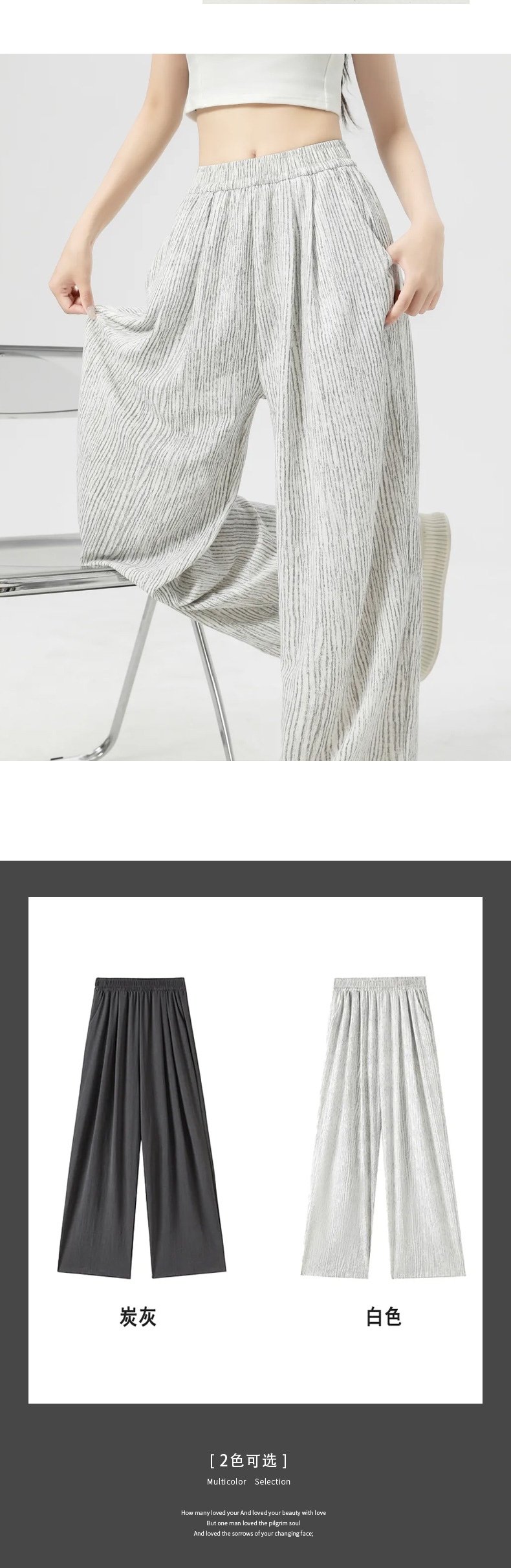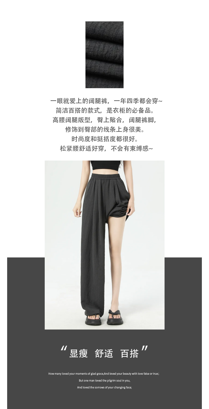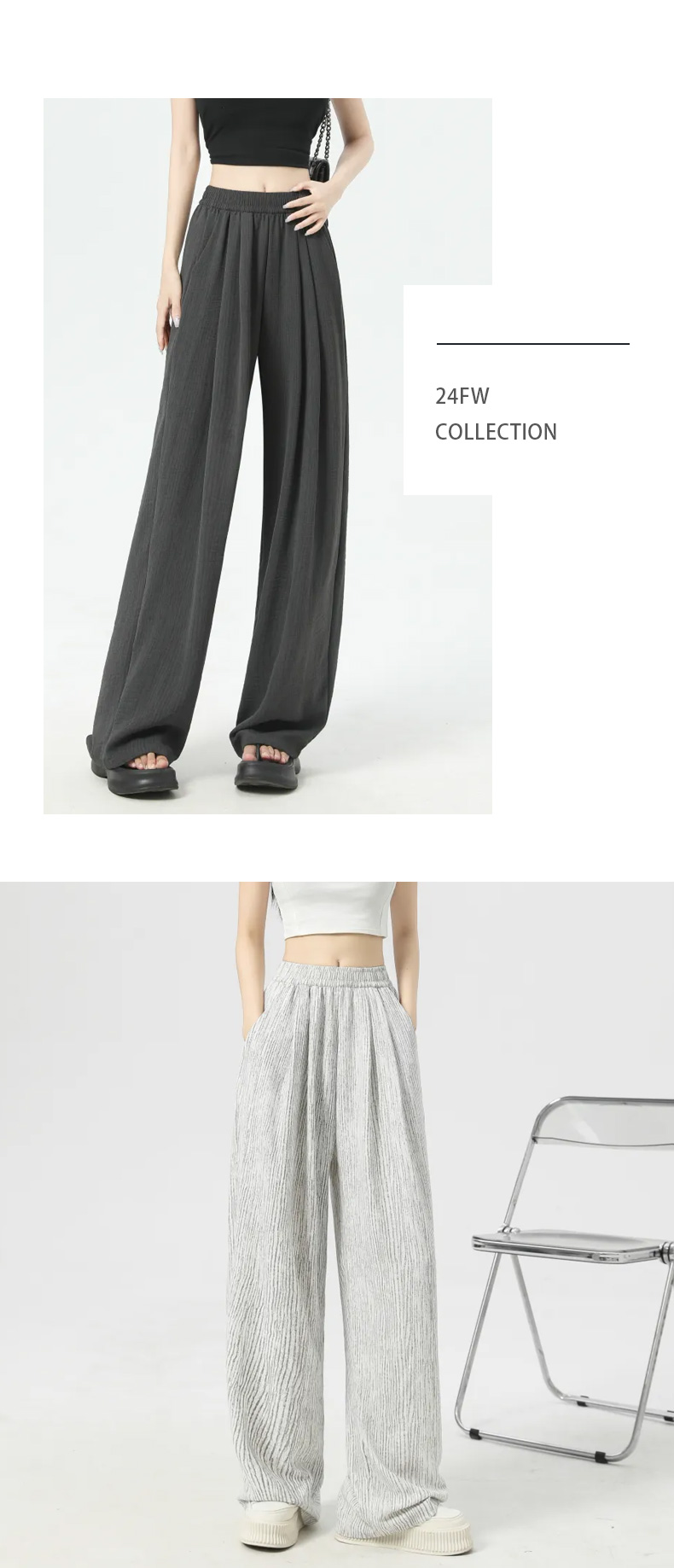 馥迦休闲松弛草色条阔腿裤
