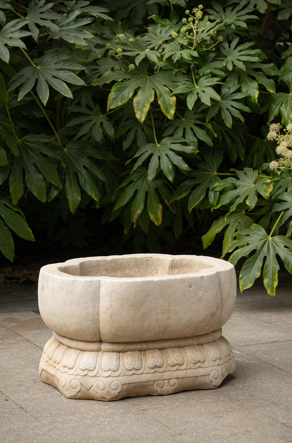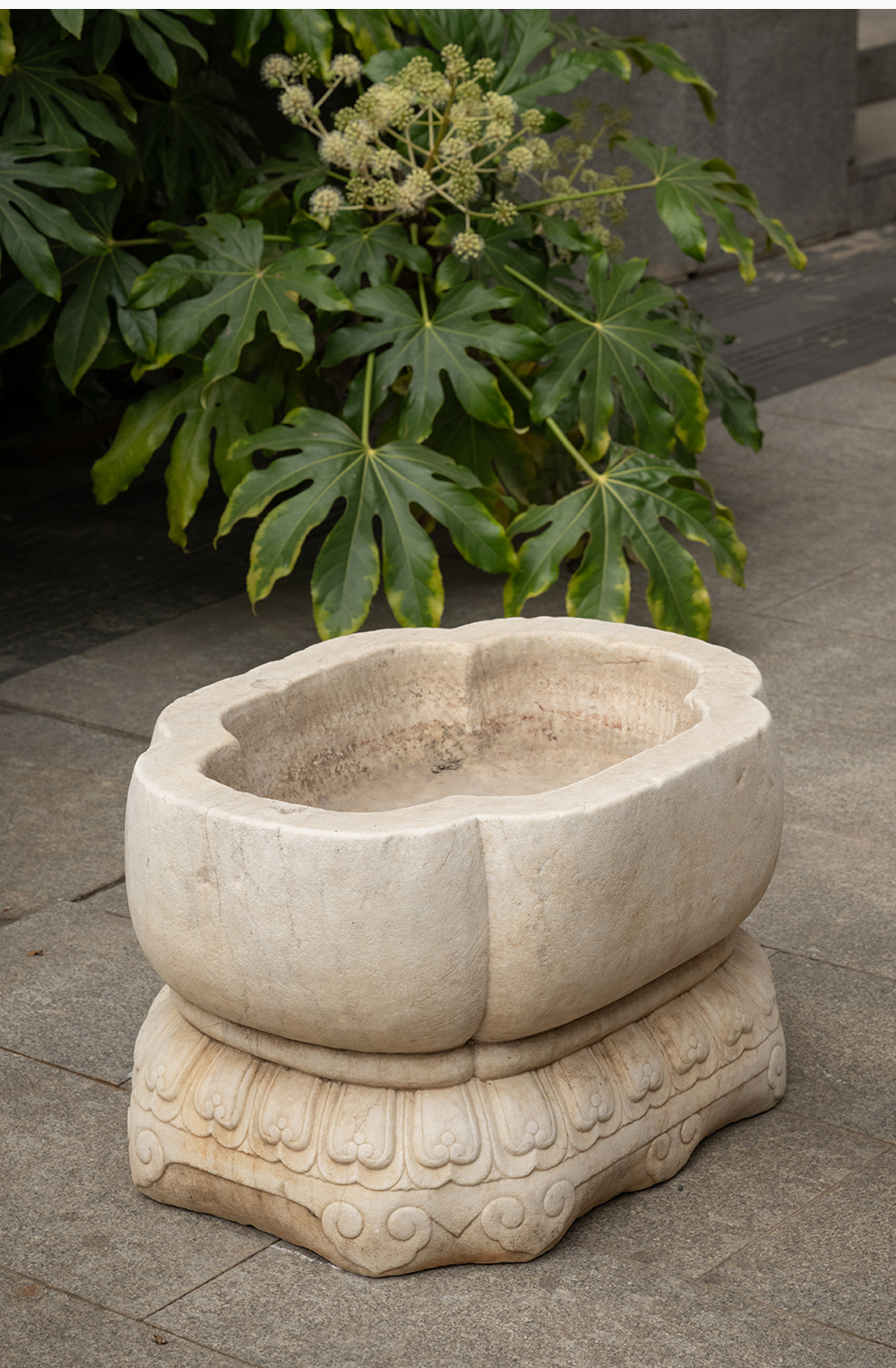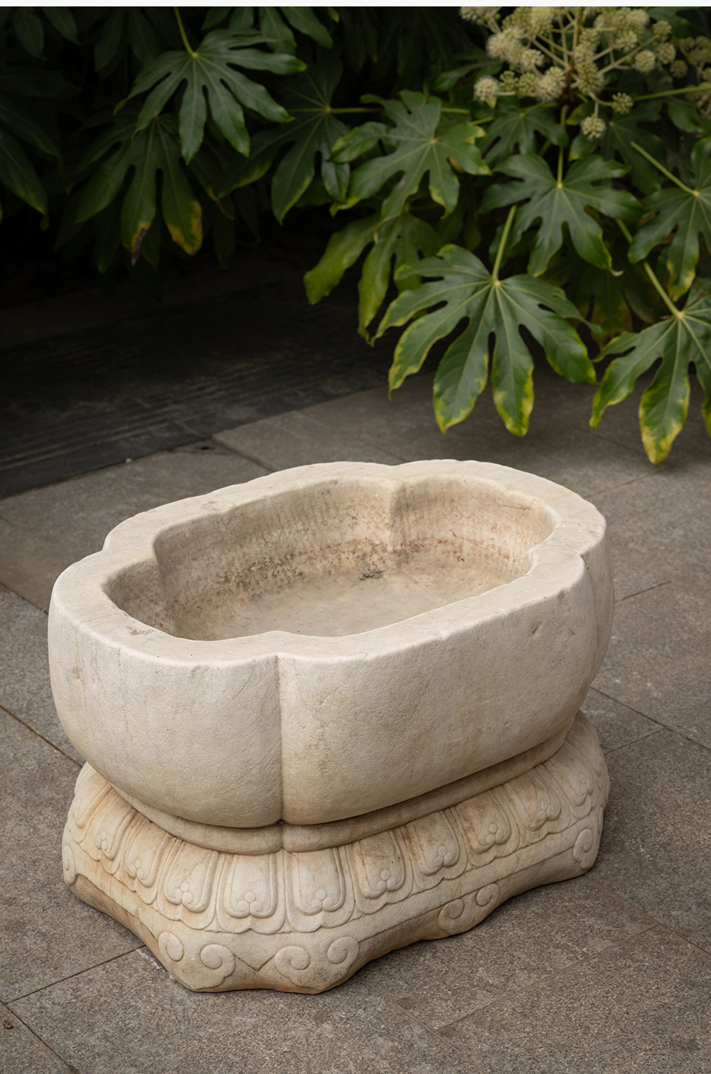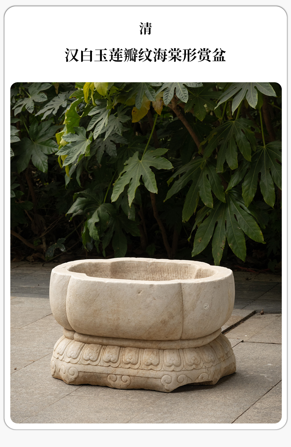 清 汉白玉莲瓣纹海棠形赏盆
