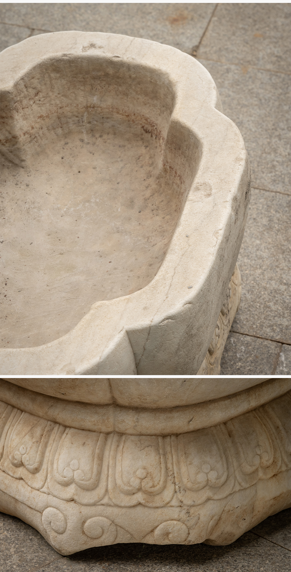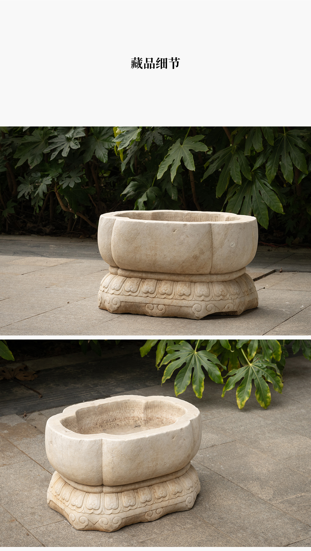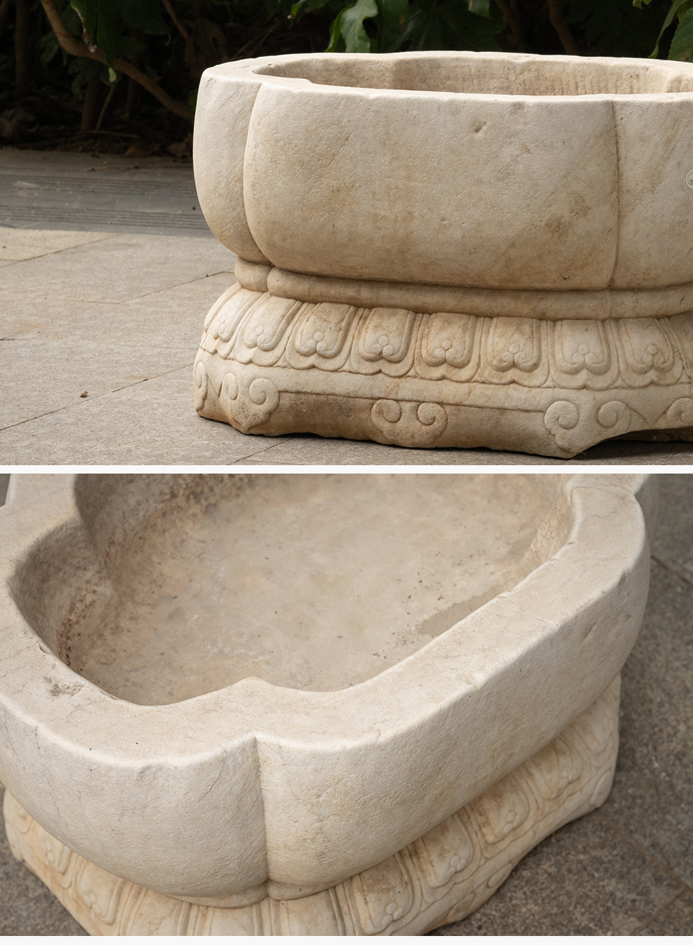 清 汉白玉莲瓣纹海棠形赏盆
