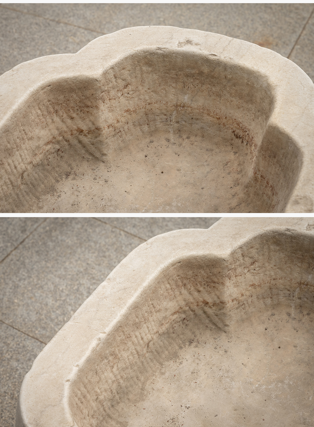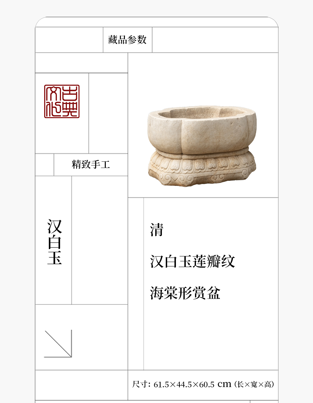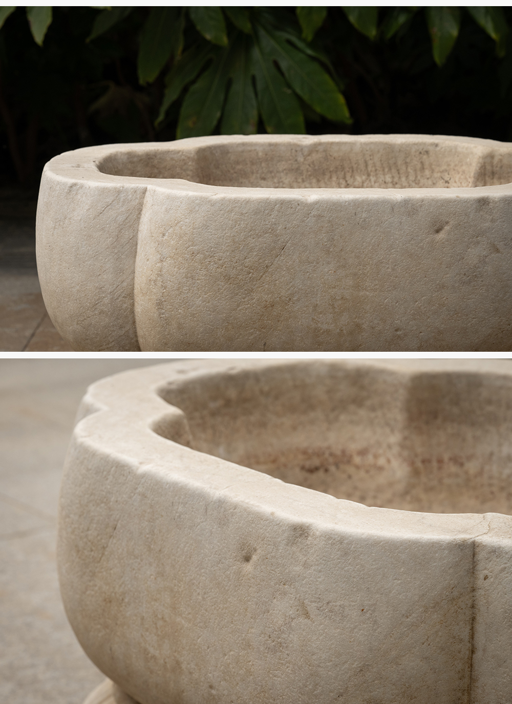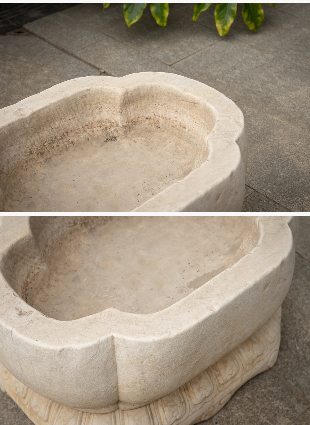 清 汉白玉莲瓣纹海棠形赏盆