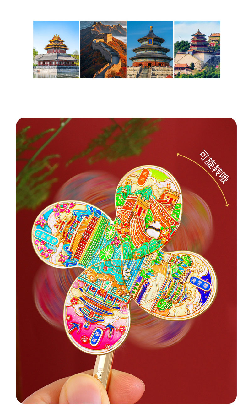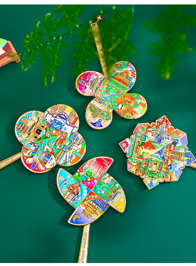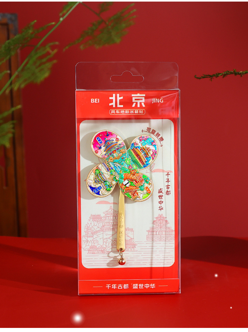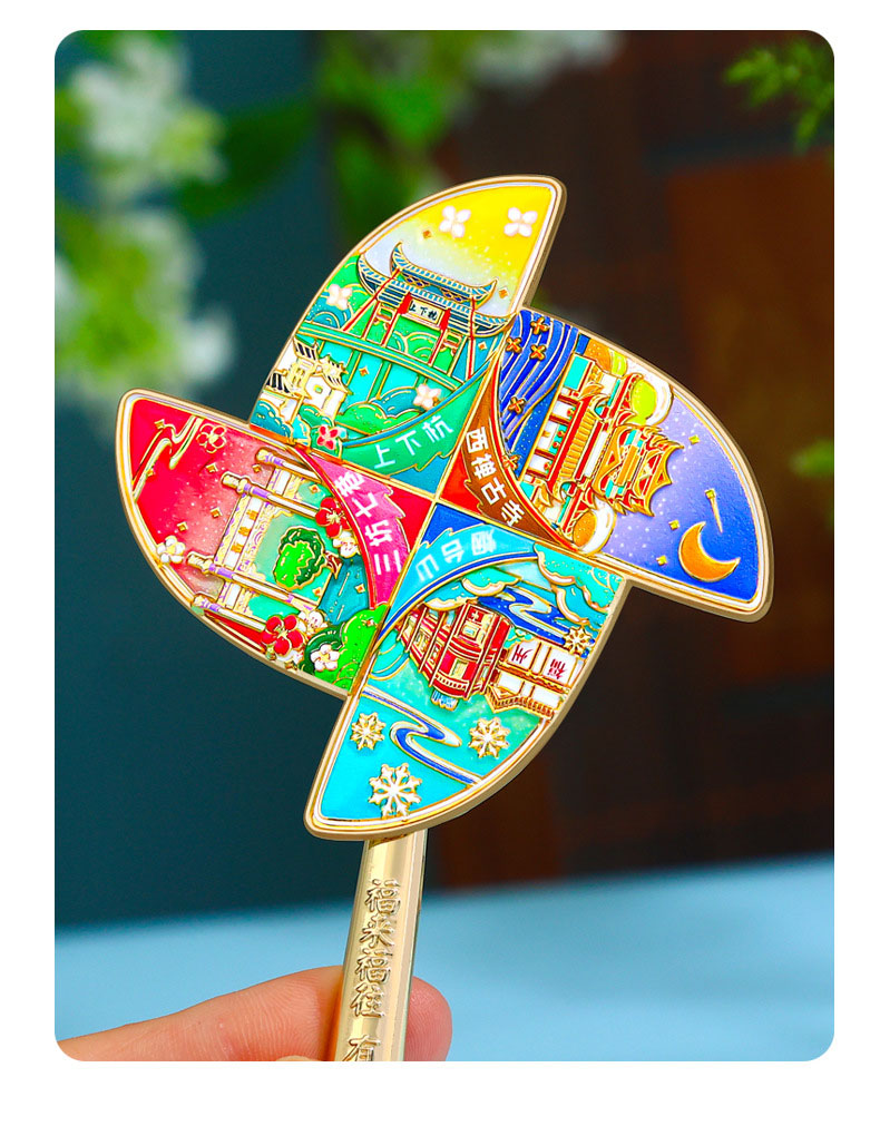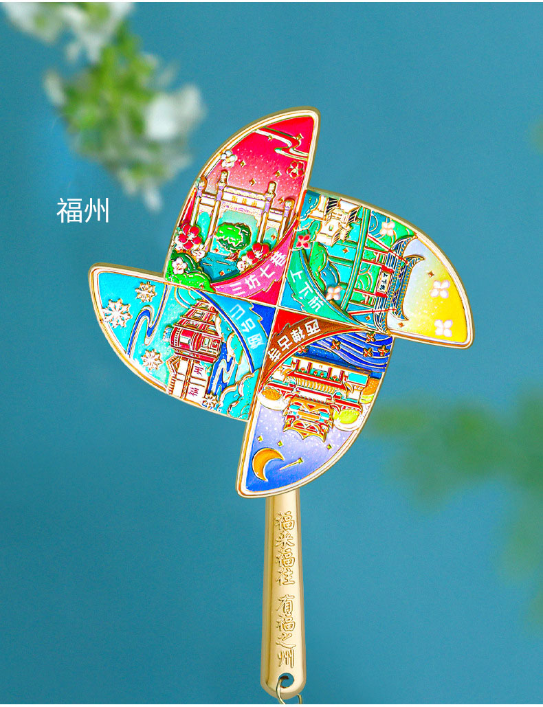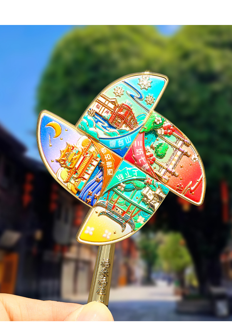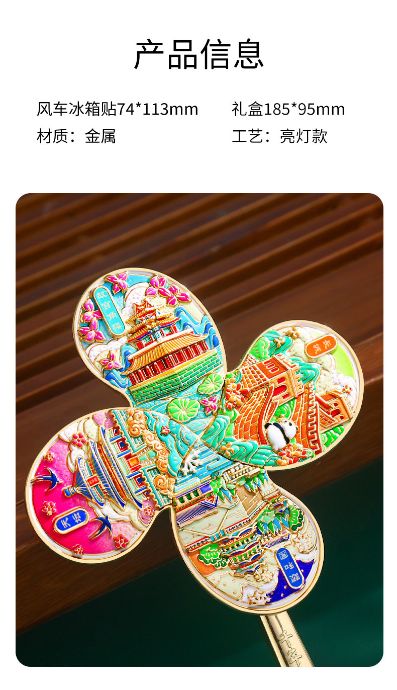 【城市国潮旋转风车冰箱贴】北京苏州福州哈尔滨镭射强磁吸城市文创旅游纪念品金属冰箱贴