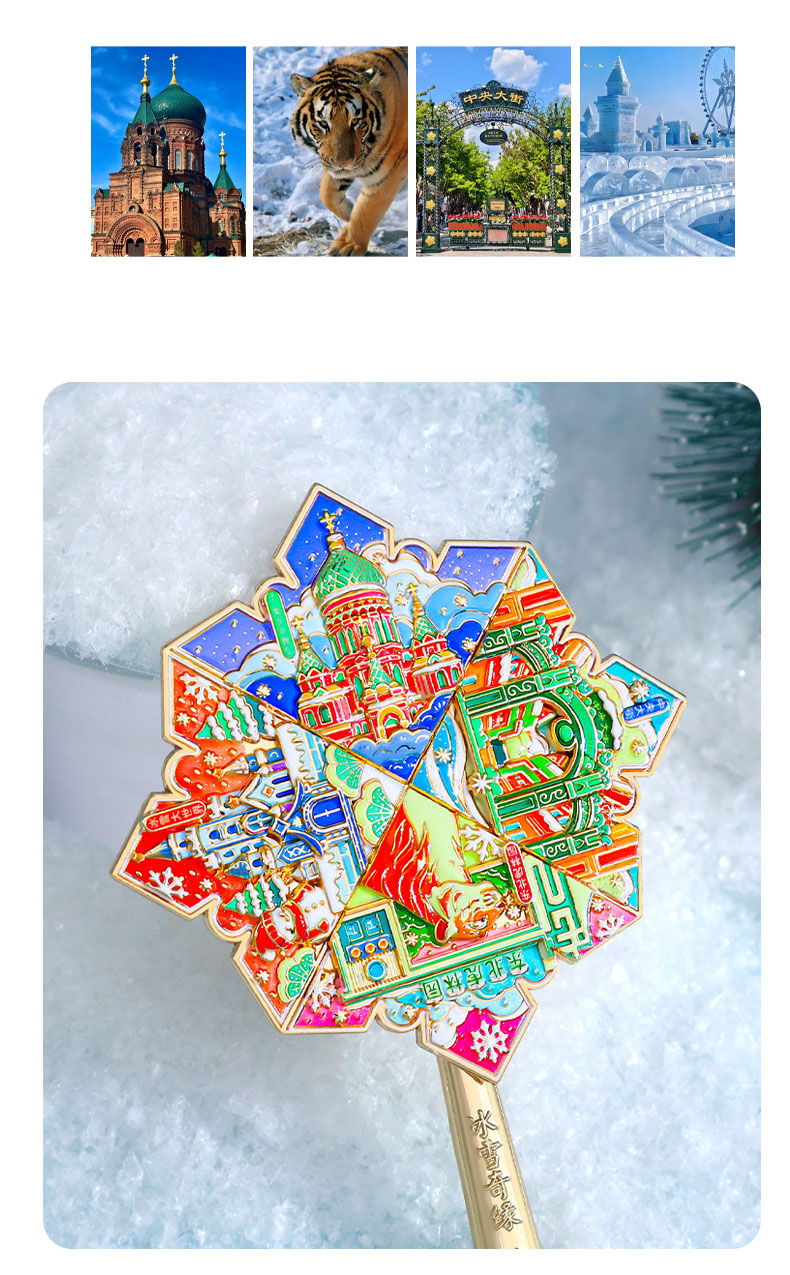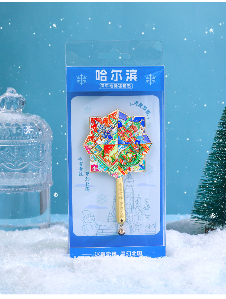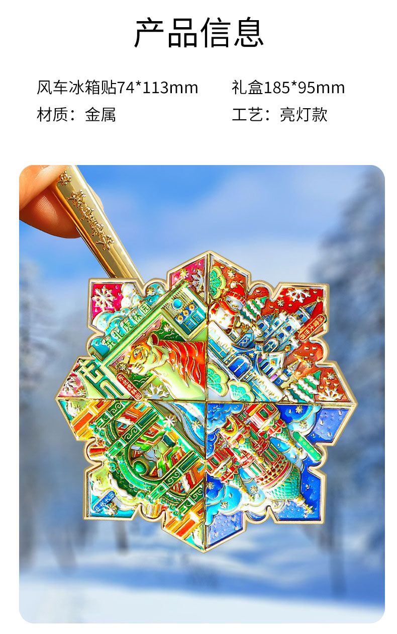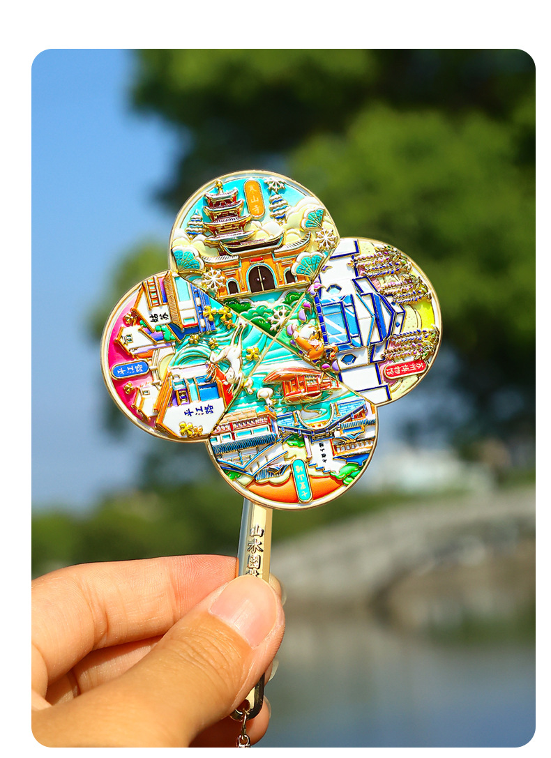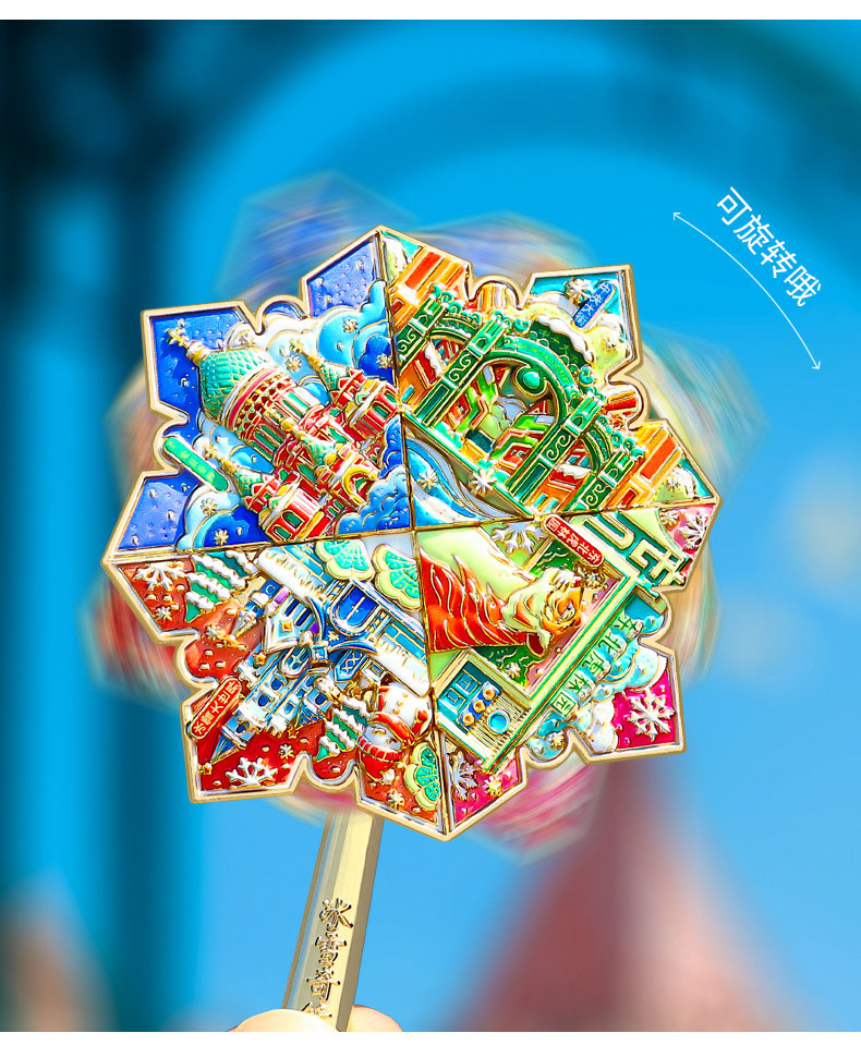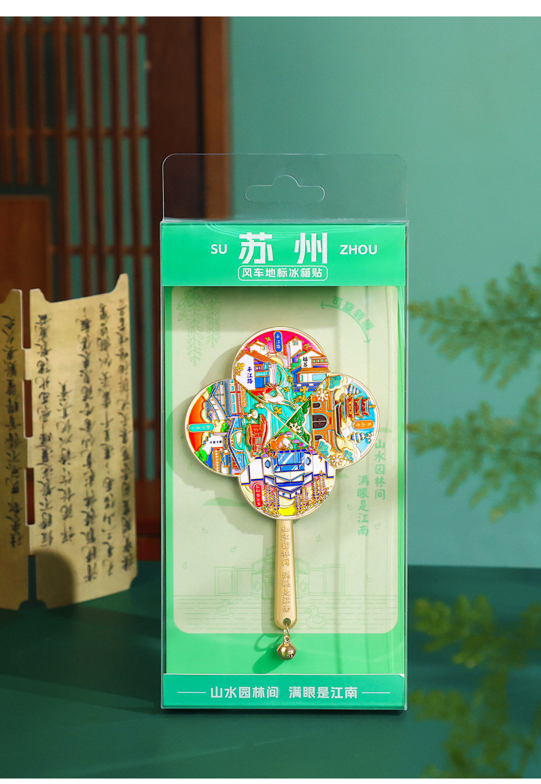 【城市国潮旋转风车冰箱贴】北京苏州福州哈尔滨镭射强磁吸城市文创旅游纪念品金属冰箱贴