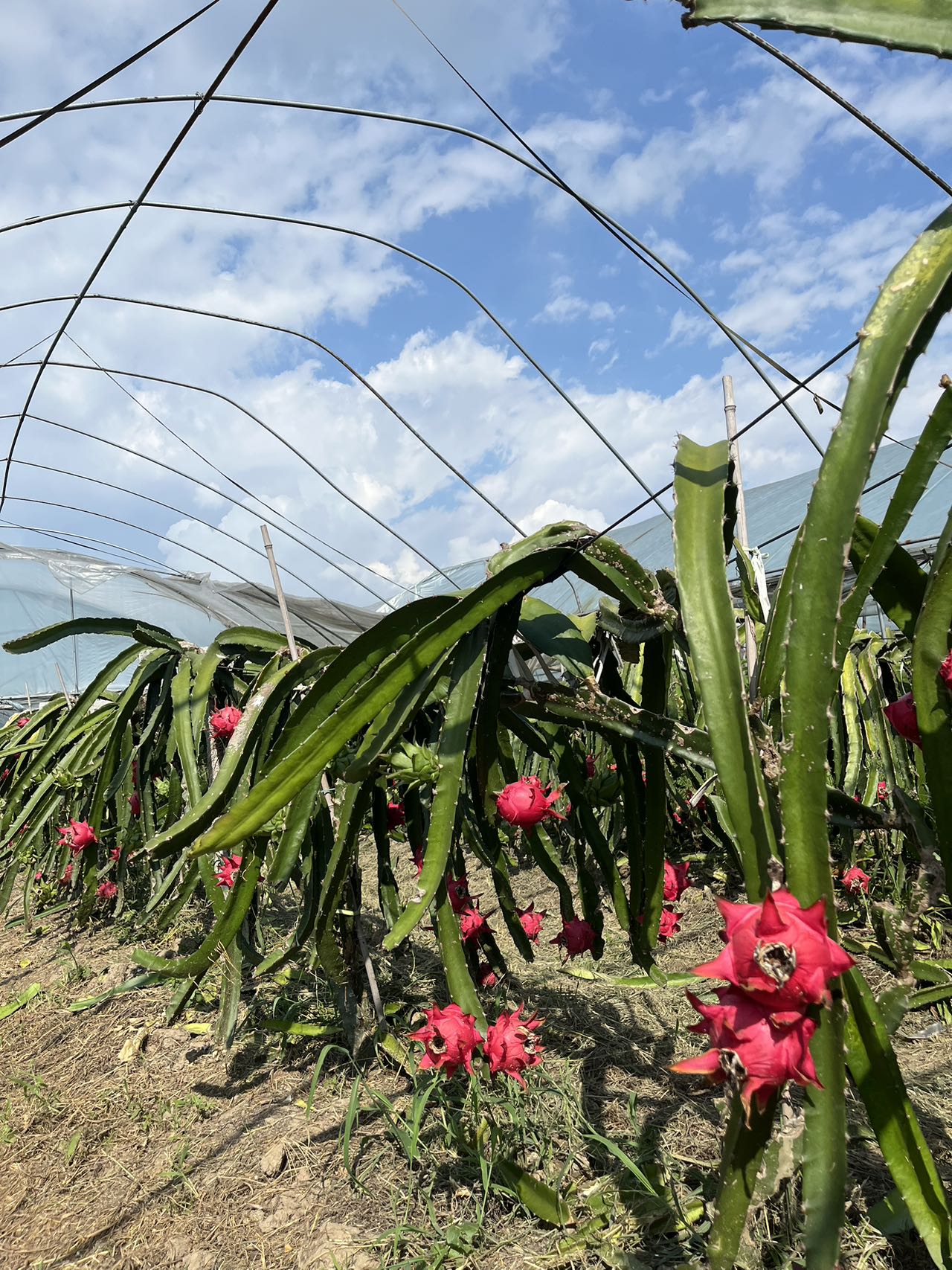 生态种植并不是一帆风顺的,第一年结的火龙果花里有满满的青虫,用了防虫酵素也效果不大。作为生产一员的熊然相信坚持的力量,生产团队慢慢调整田间管理,一年又一年优化,直到2022年,火龙果花的青虫基本见不着了,虫子更多的是去吃旁边的草,虫吃坏果子也越来越少。