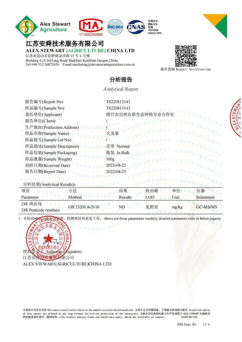 2022年我们送检了四川火龙果,248项农残未检出,详细报告如上。