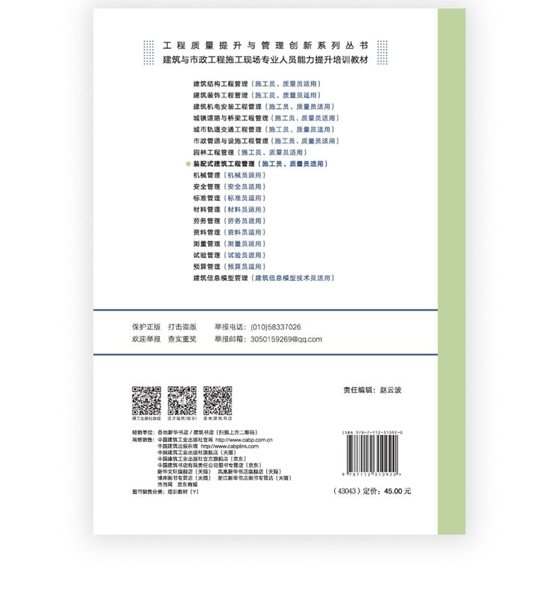 书名:装配式建筑工程管理(施工员、质量员适用)