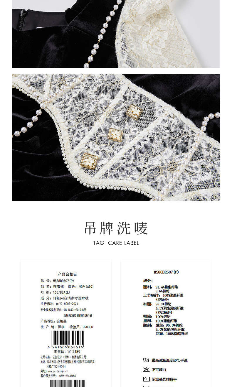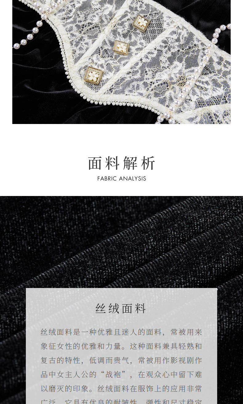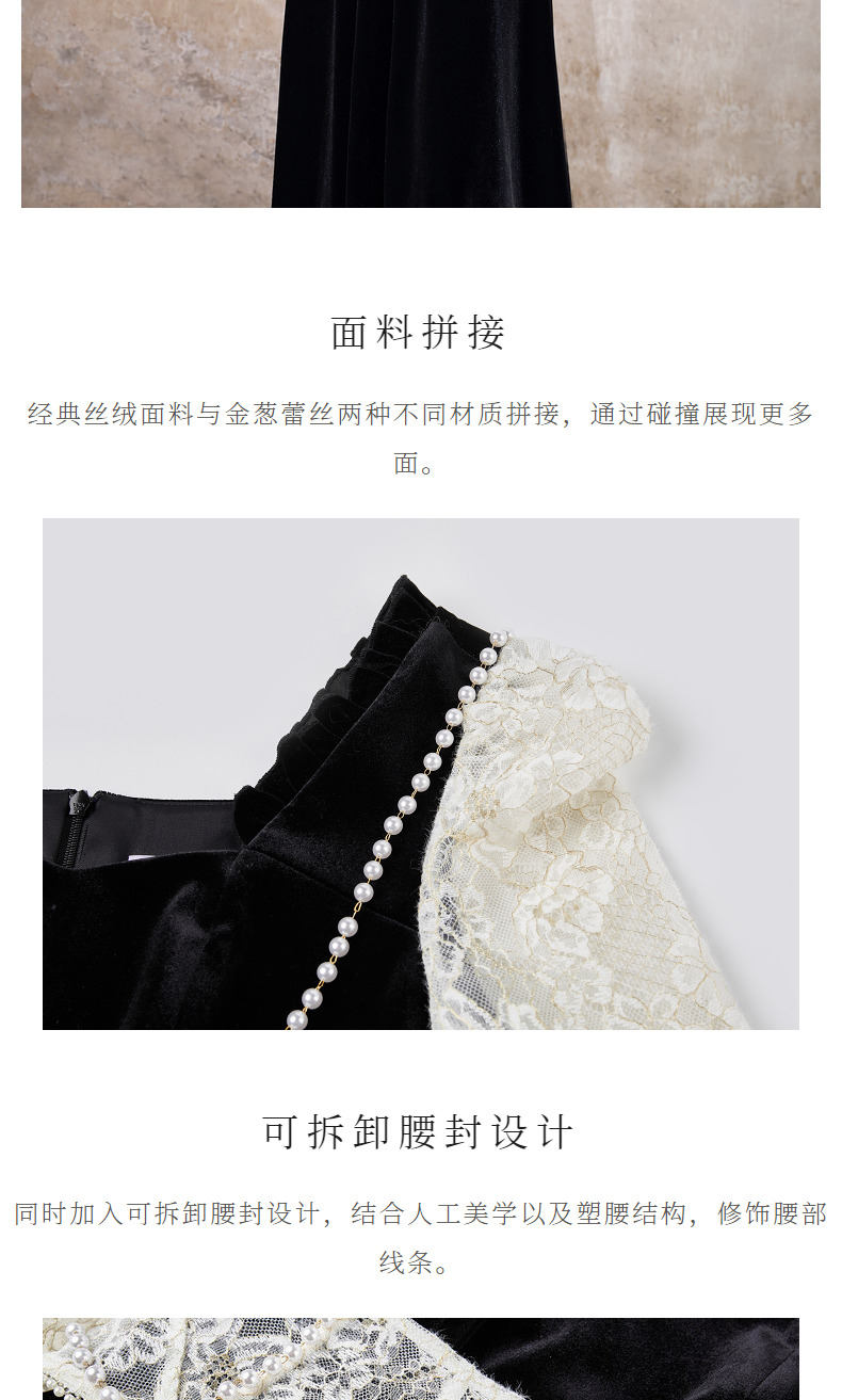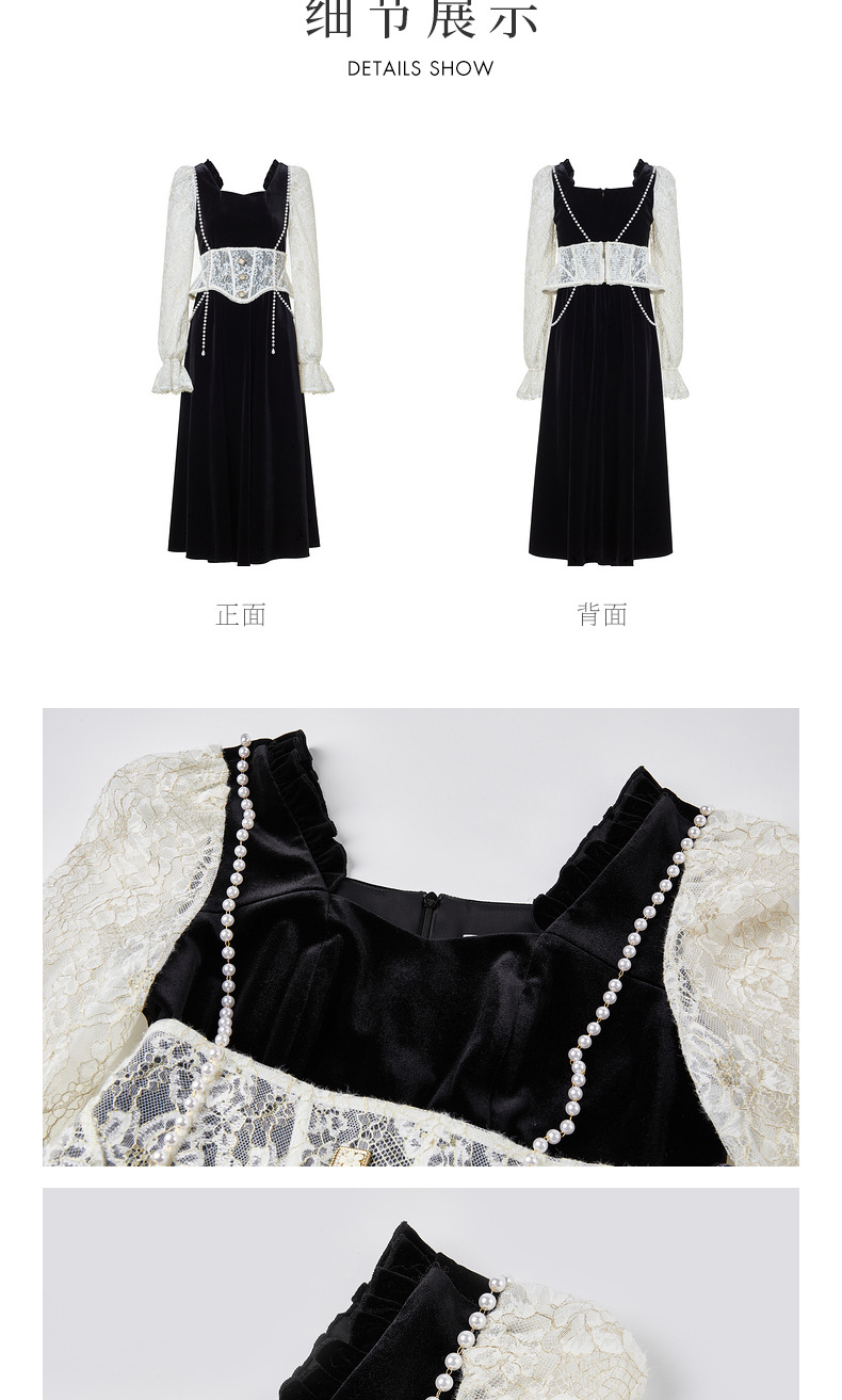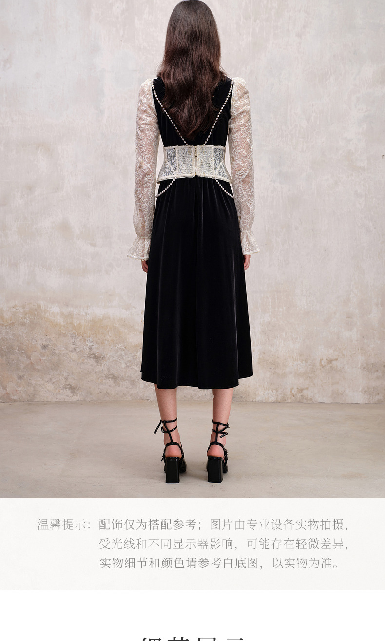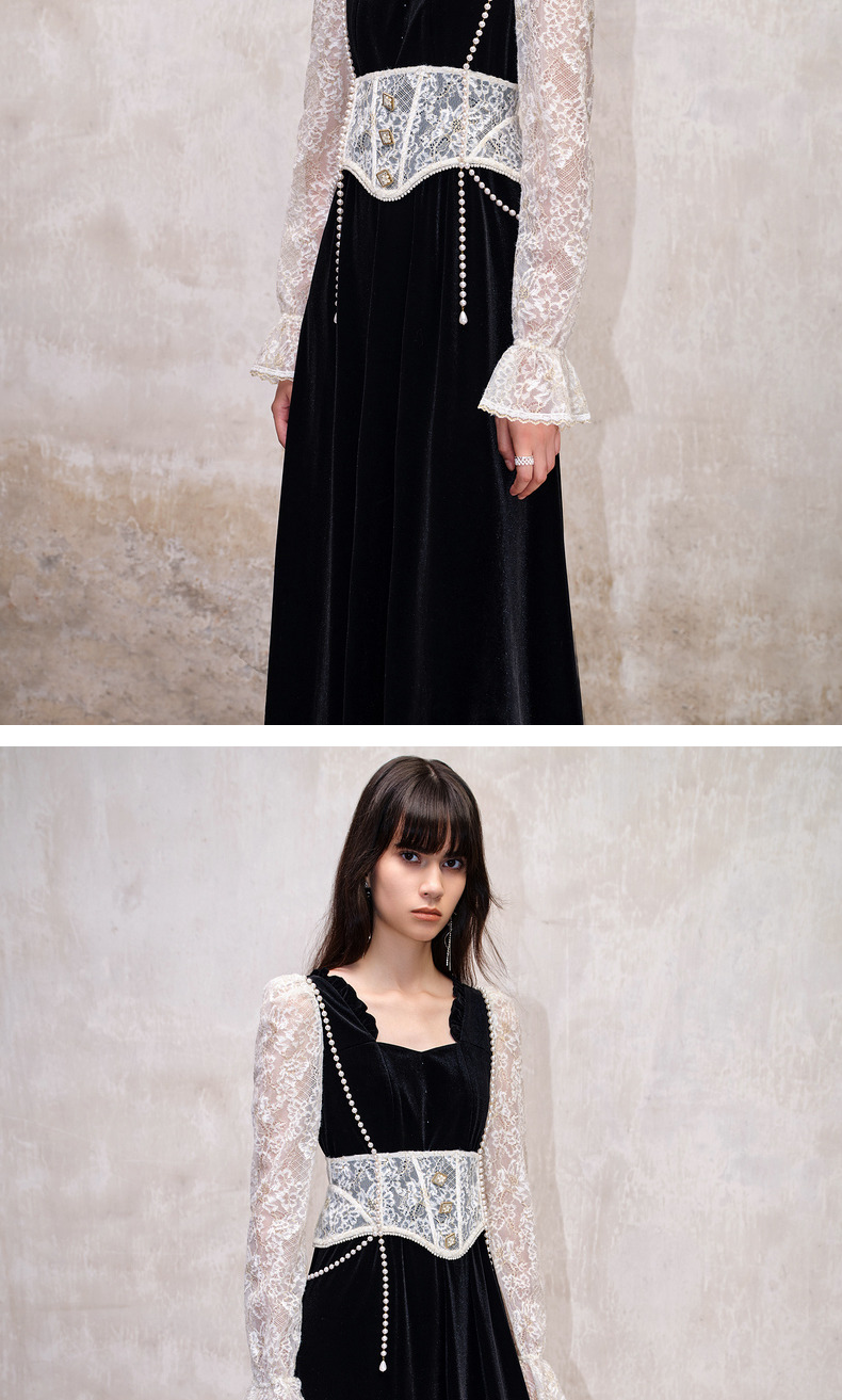 MAXRIENY法式宫廷复古风拼接蕾丝丝绒连衣裙(货号:MS88DR507)