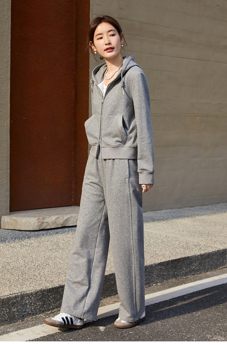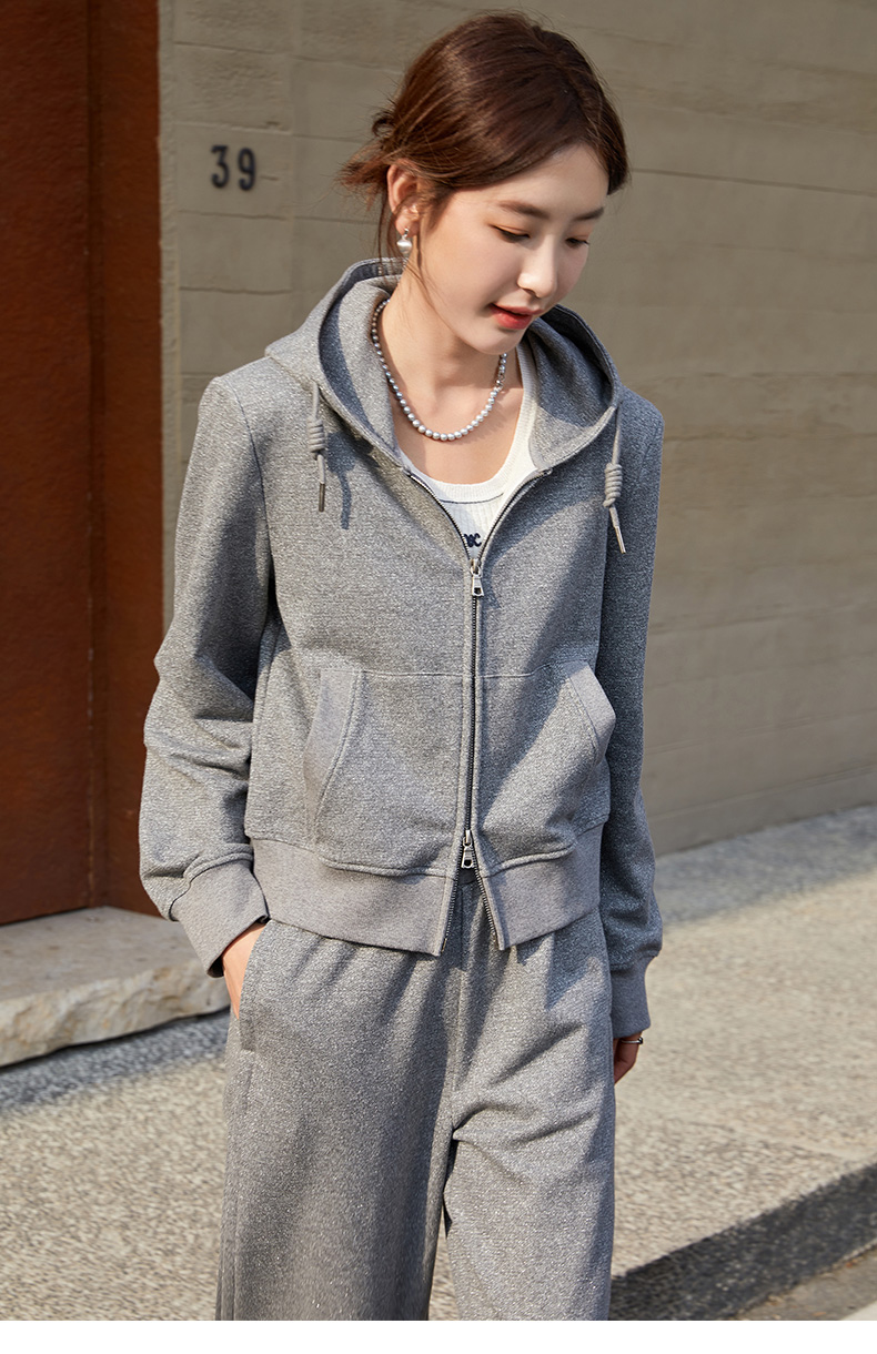 双拉链时尚显瘦气质长袖连帽宽松休闲运动女士上衣