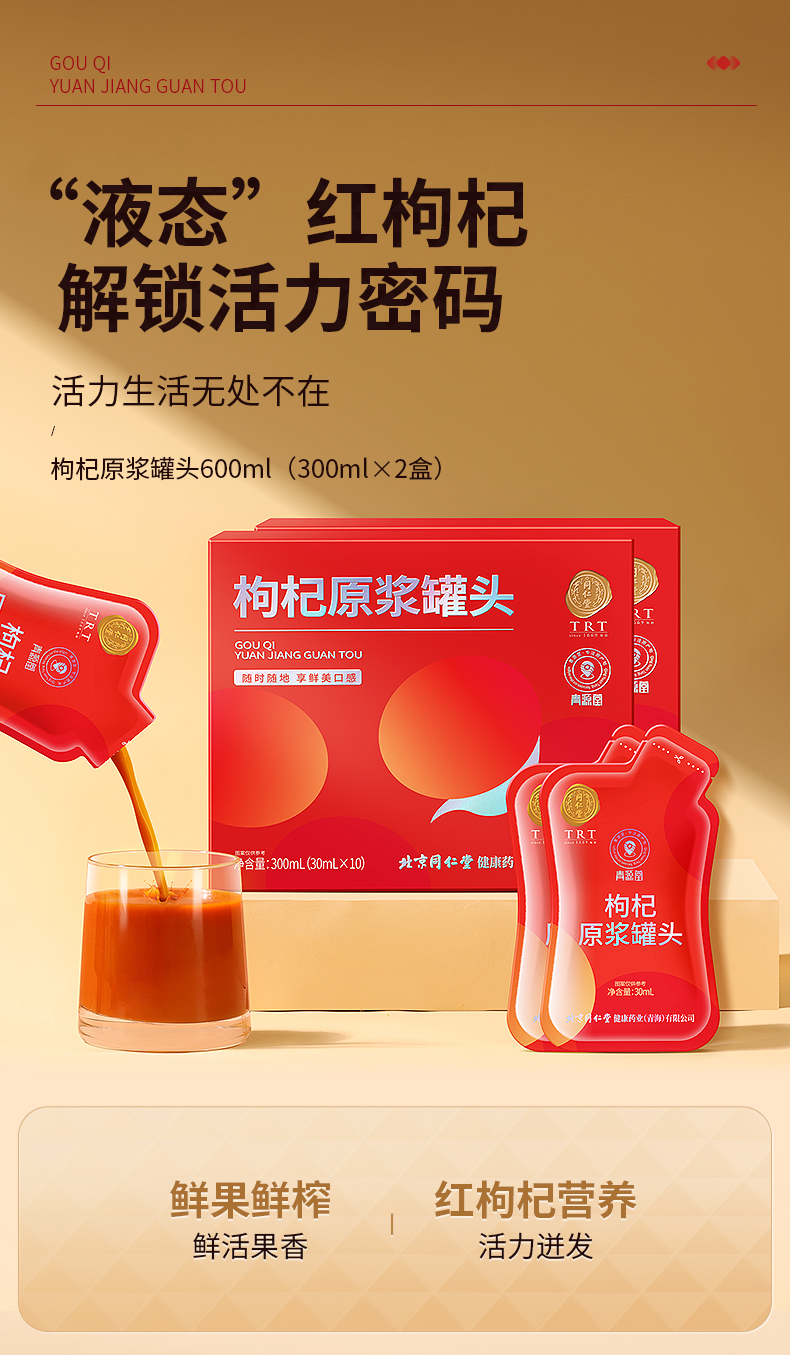 【正宗同仁堂品牌】北京同仁堂 鲜枸杞原浆 600ml(300ml×2盒) SY
