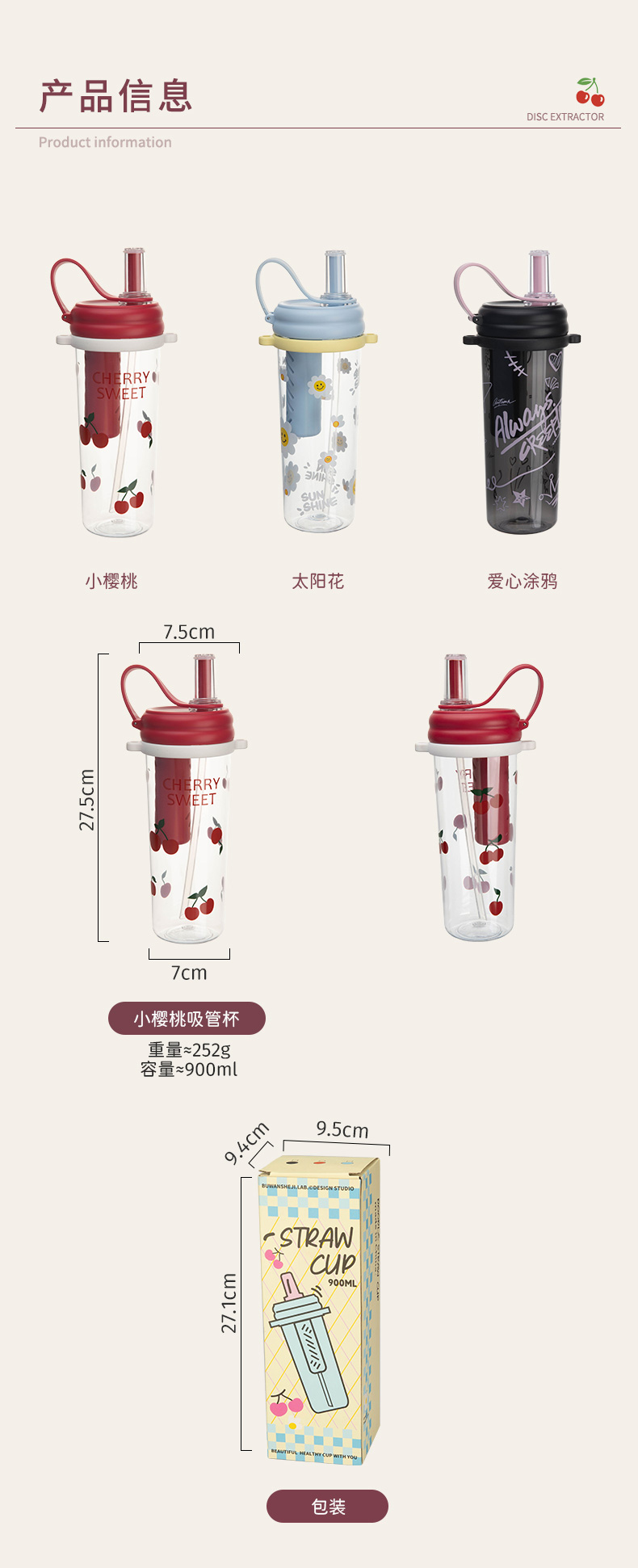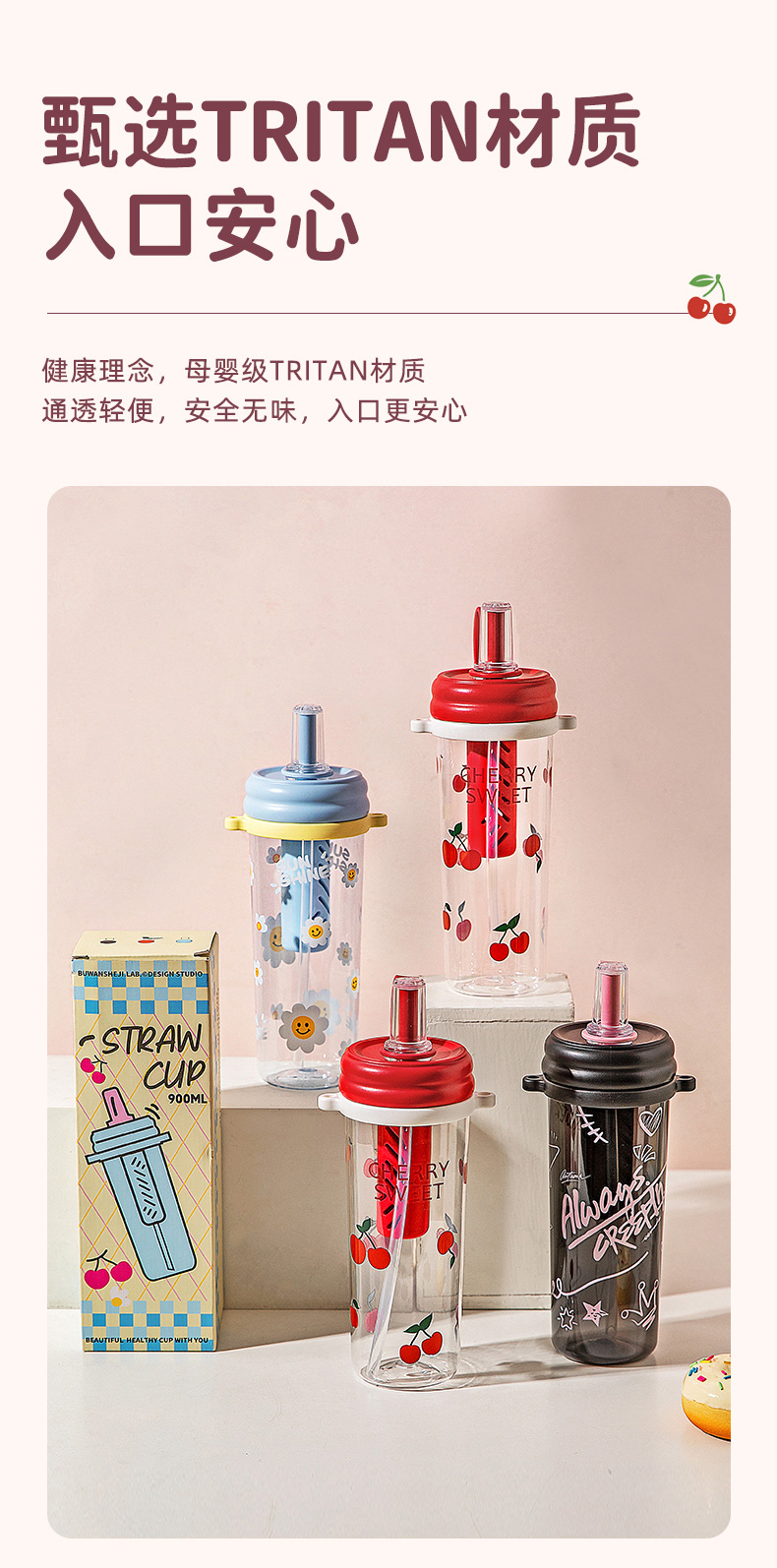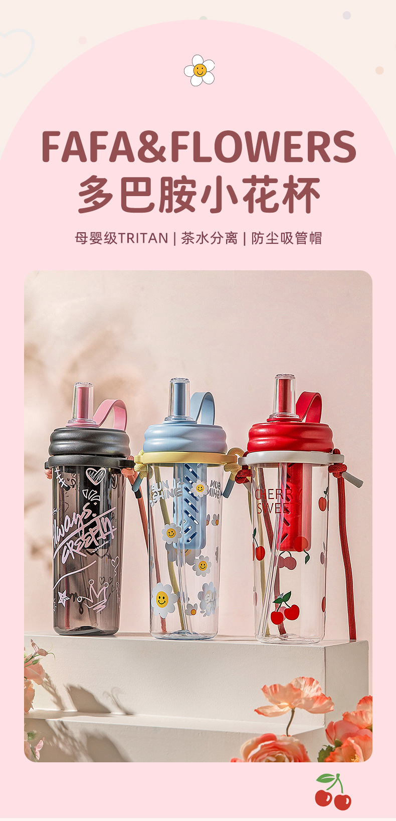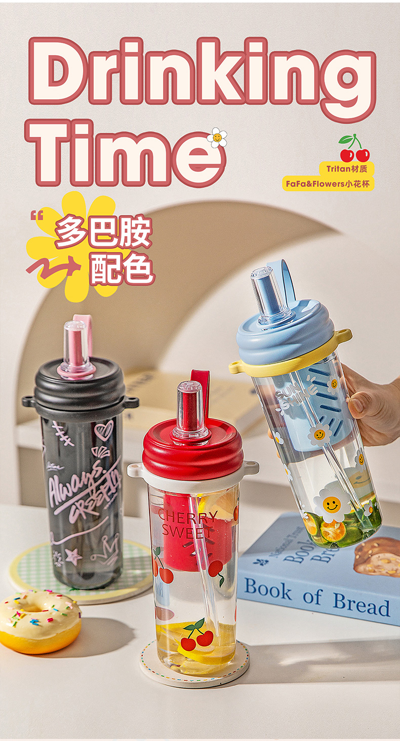 摩登主妇运动水杯女夏日tritan食品级塑料杯外出便携学生上学杯子