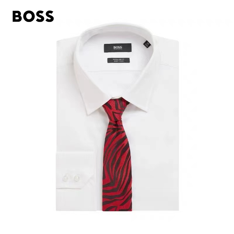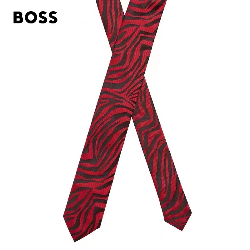 百货世界-HUGOBOSS雨果博斯男士2022早春红色系列虎纹真丝领带