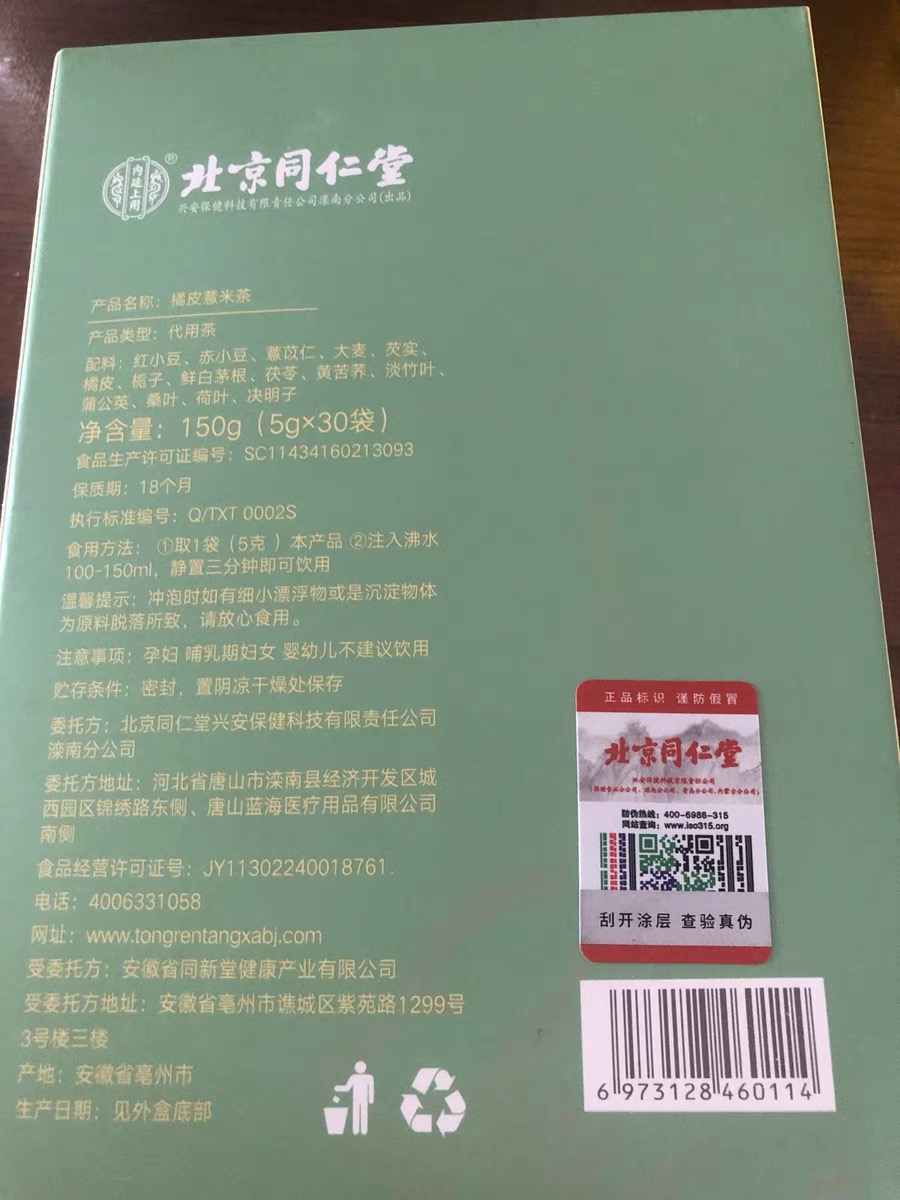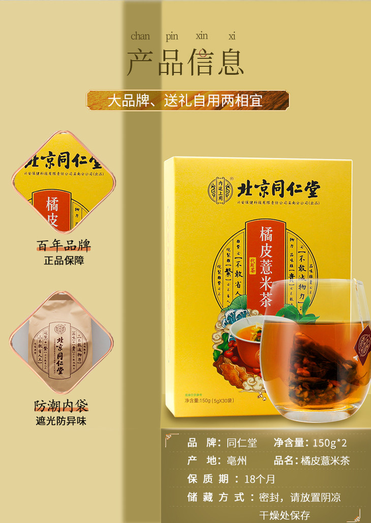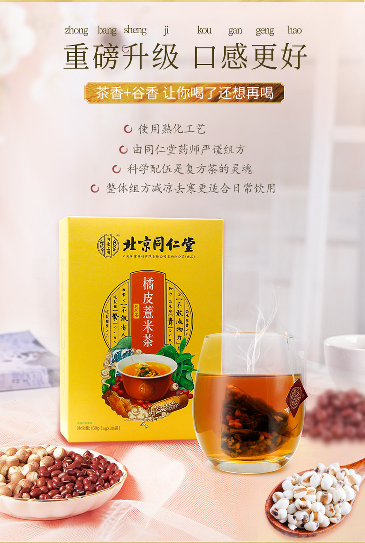 【买2发3 拍3发5盒】北京同仁堂红豆薏米橘皮薏米茶