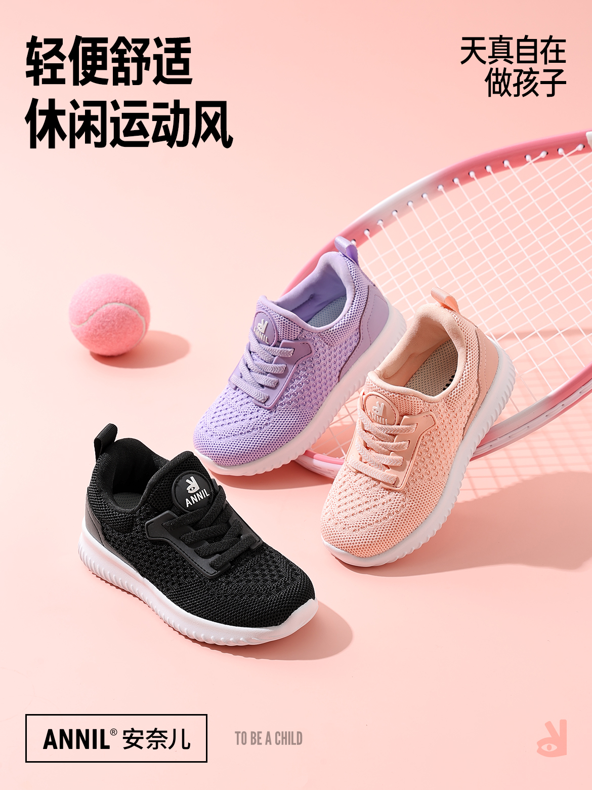 ANNIL/安奈儿童鞋韩系潮款儿童鞋透气软底女飞织耐磨运动鞋HM5305382