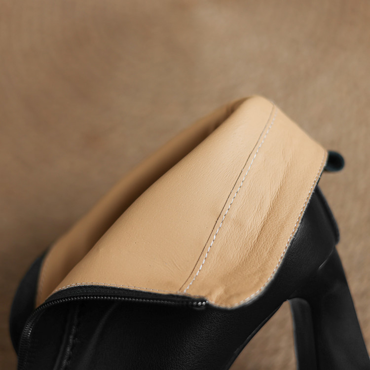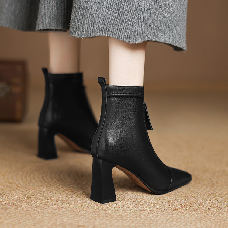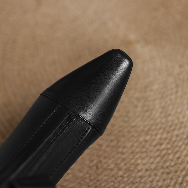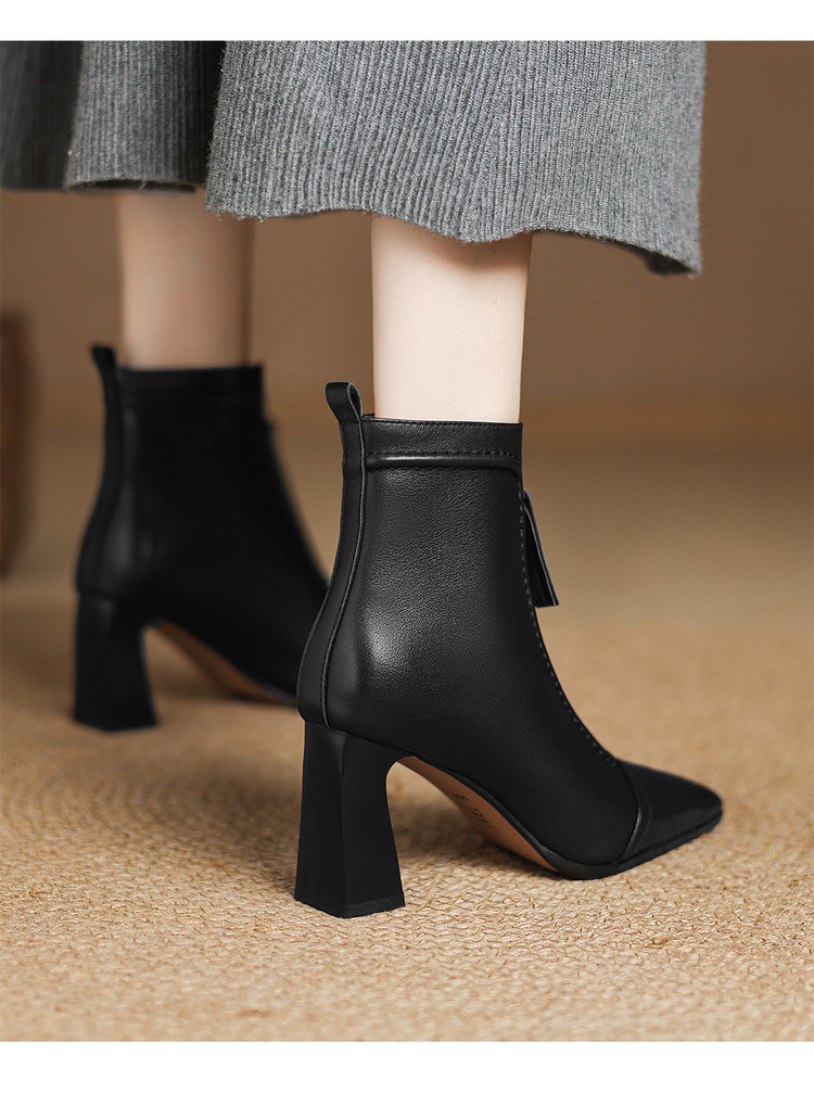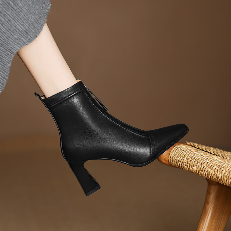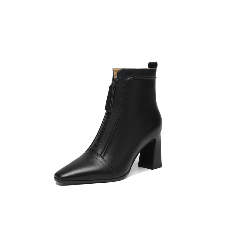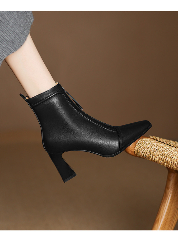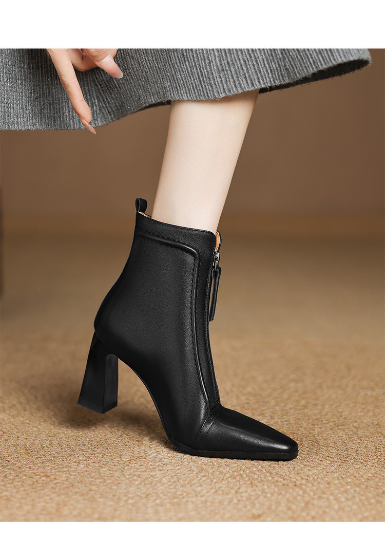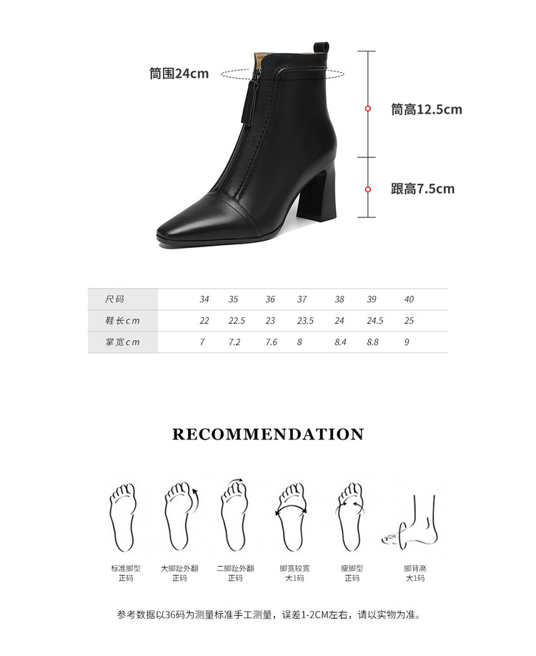 【预售5天】秋冬气质高跟前拉链棕色短靴女新款复古真皮方头粗跟百搭马丁靴DS&1902