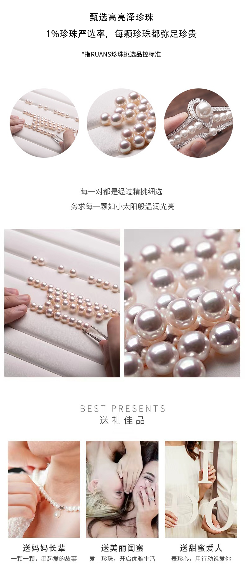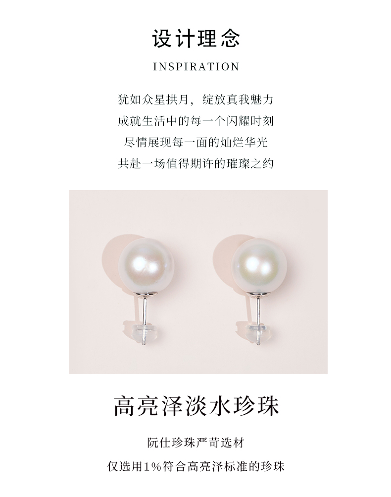 阮仕珍珠 纯简系列S925银淡水珍珠耳饰 11-12mm 正圆 微瑕 极强光