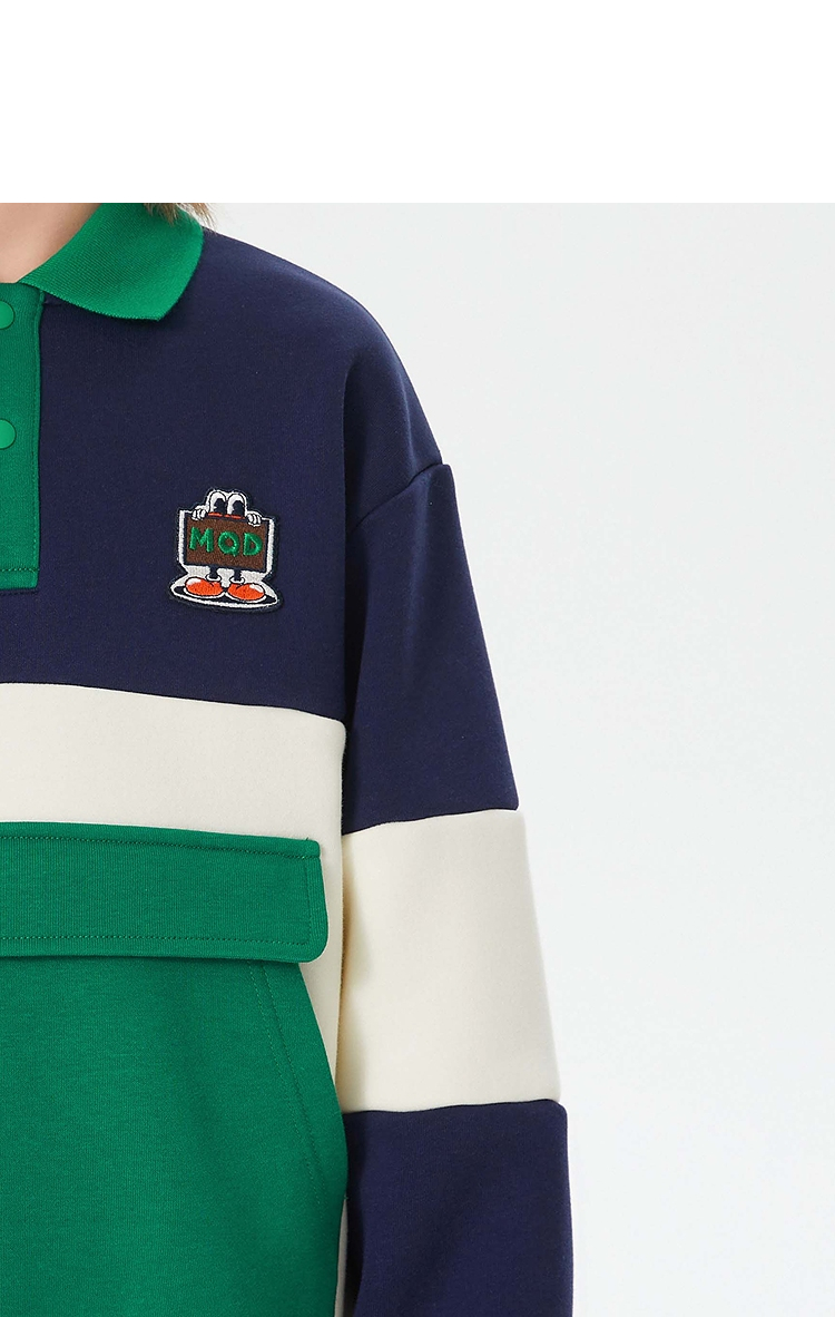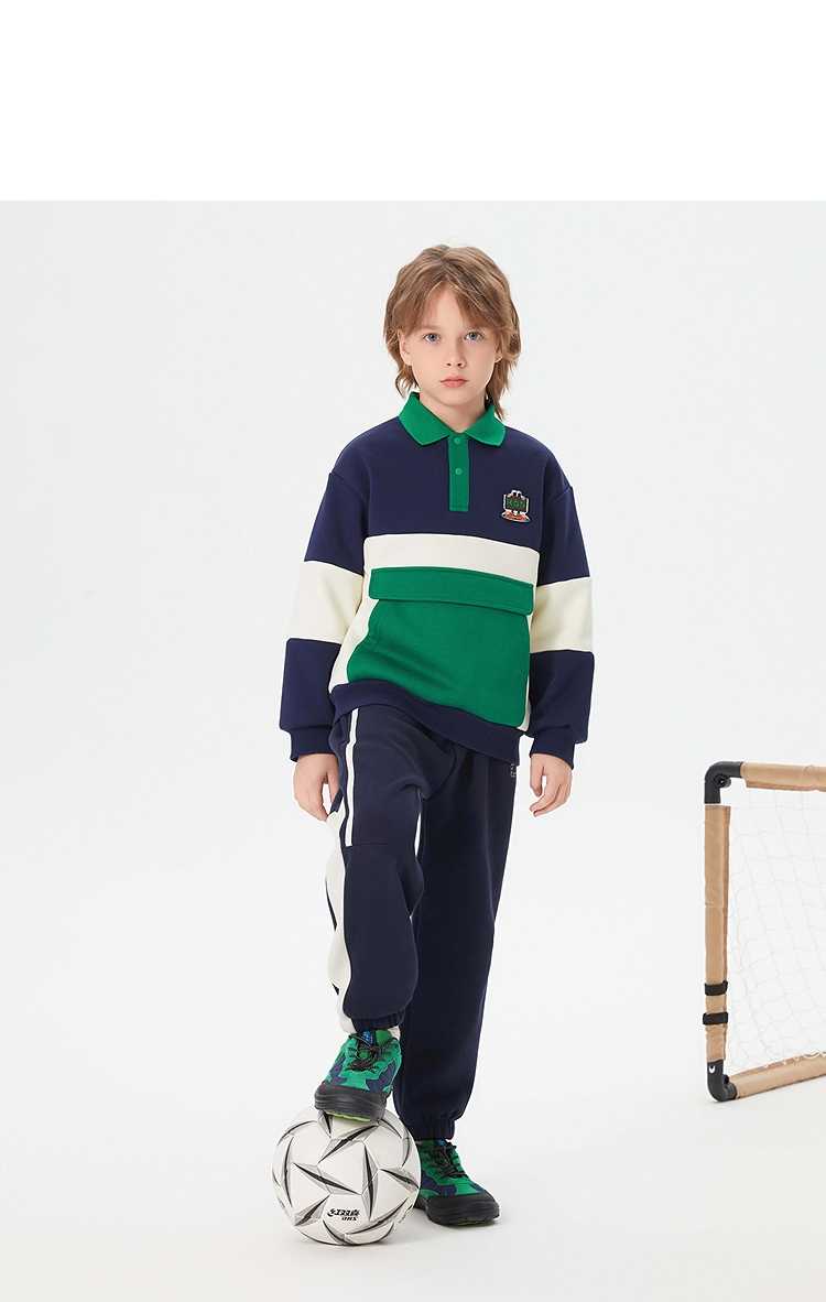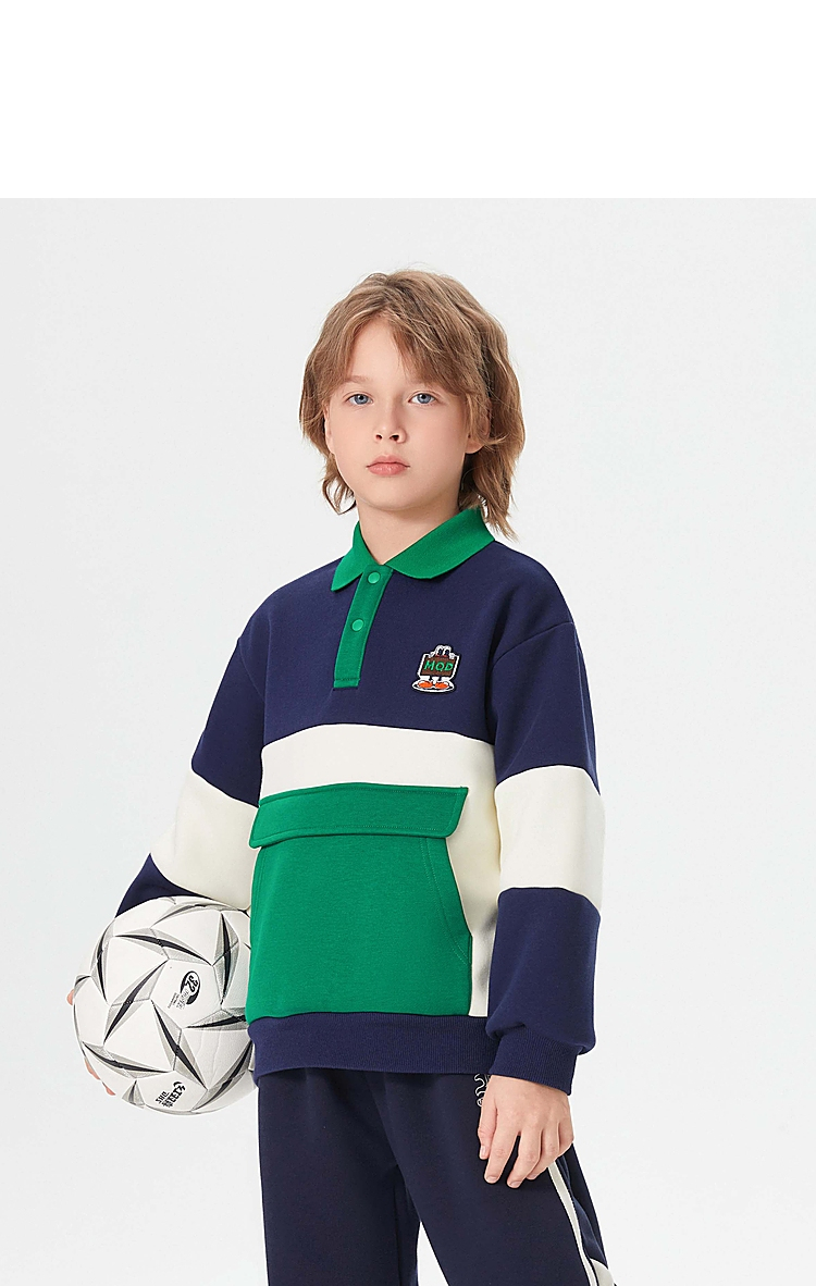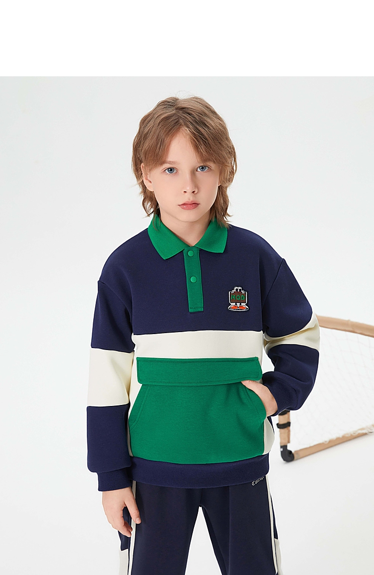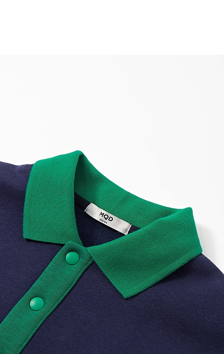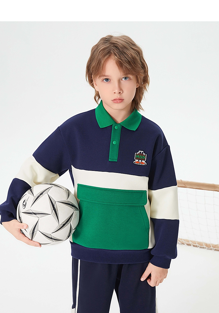 【MQD】童装男大童学院风翻领卫衣新款加绒保暖儿童撞色大口袋上衣新