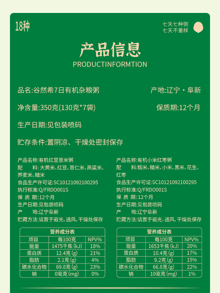 正耕 谷希然7日有机杂粮粥(130*7盒)