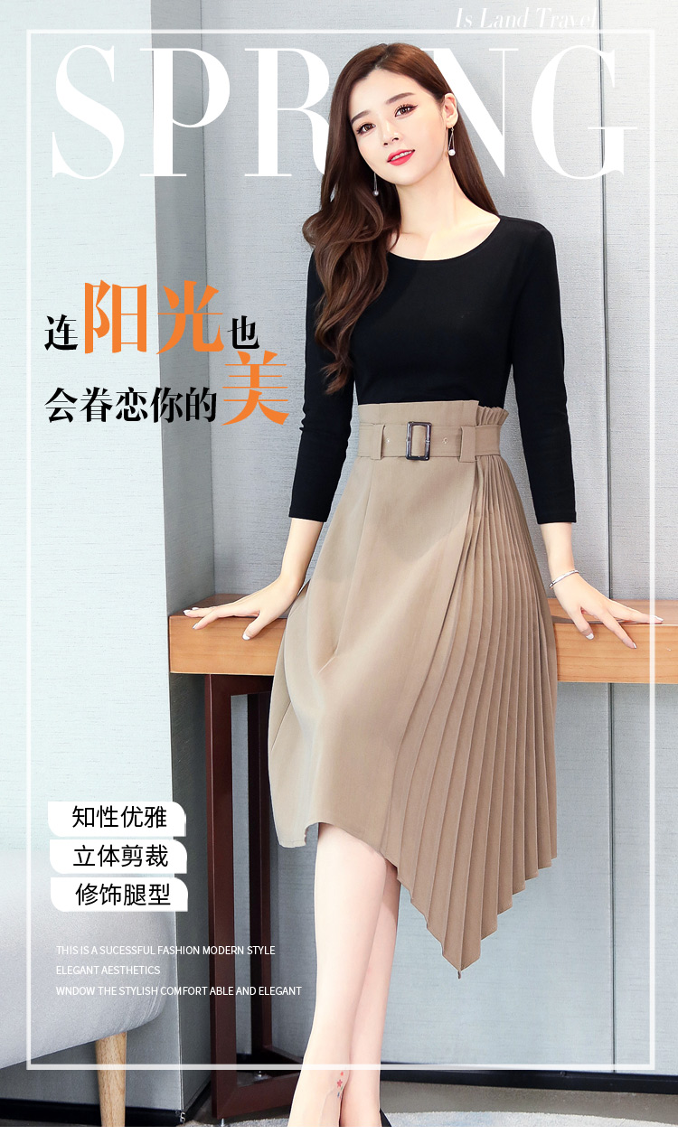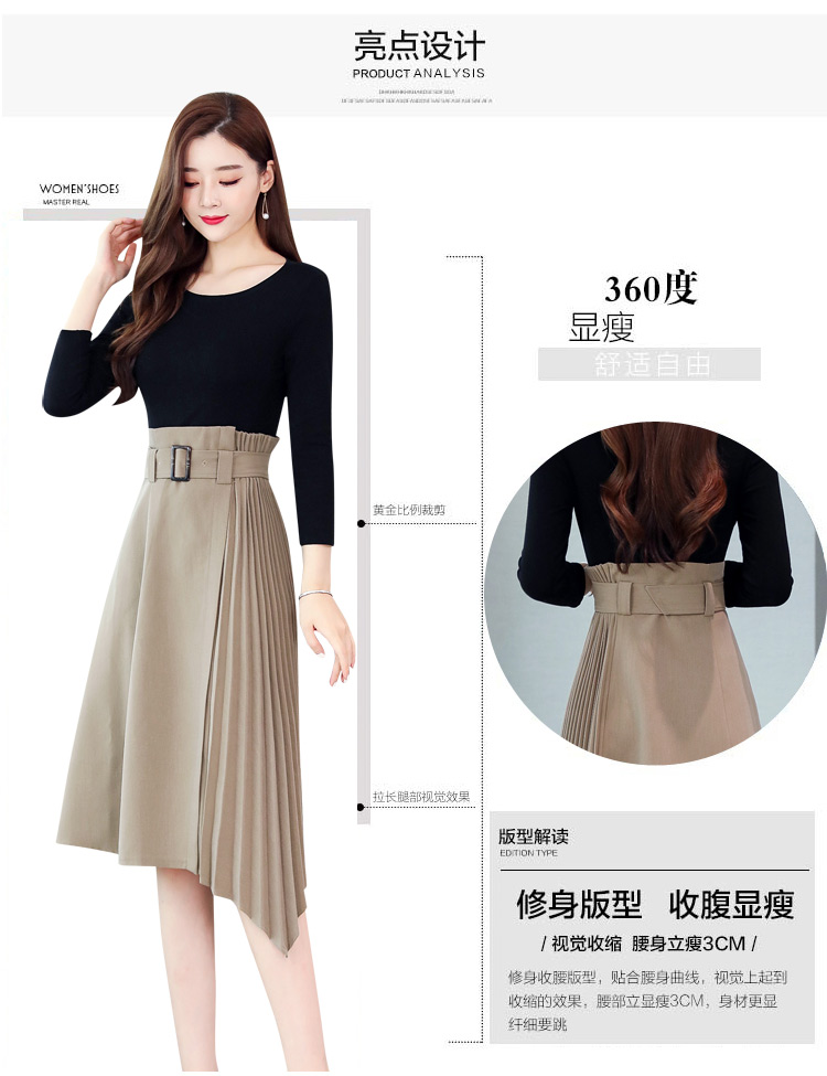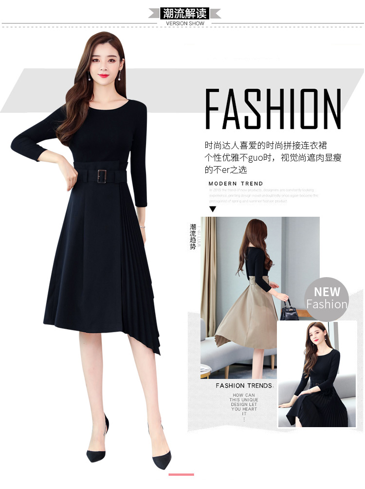 WZNH-XMYR1973潮流舒适时尚圆领拼接连衣裙