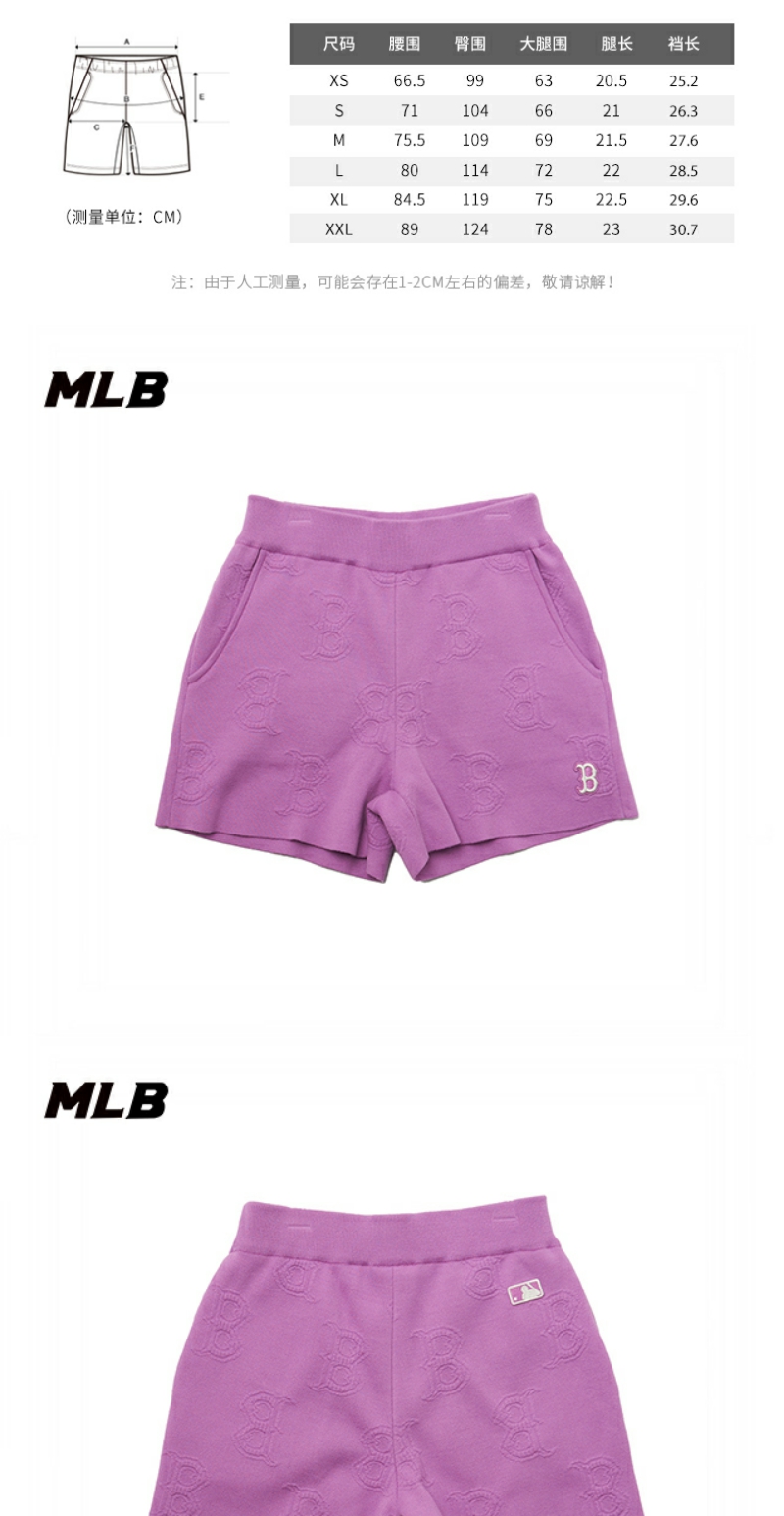 MLB23春夏季新款女式经典交织字母正面图案针织运动短裤波士顿红袜3FSPM0433【无货退款介意勿拍】