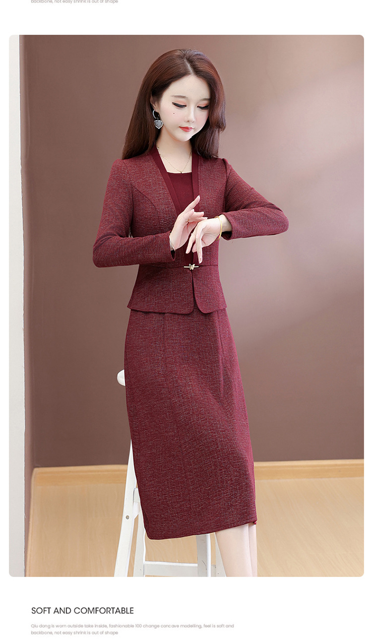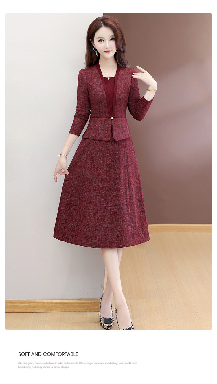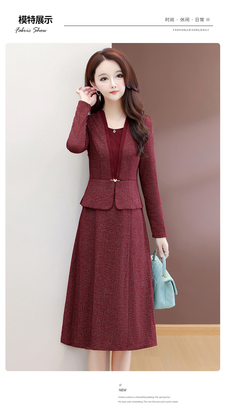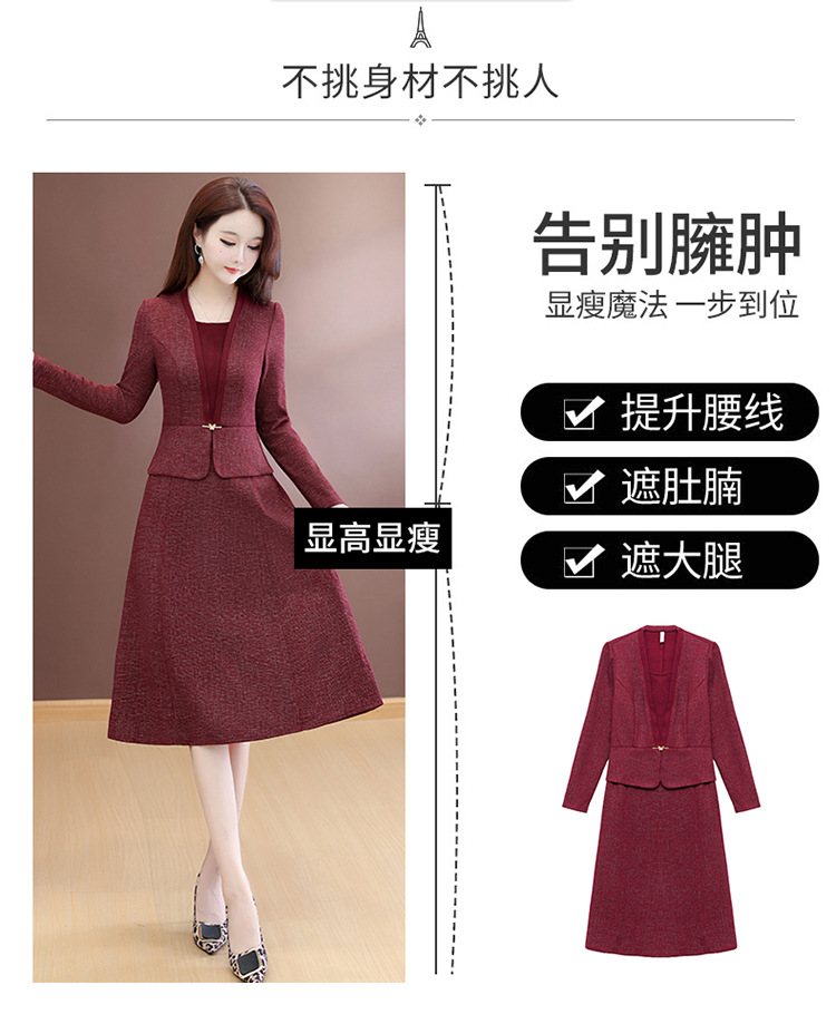 QYM 54C2521-Y时尚连衣裙假两件连衣裙中长款A字裙 商品图4