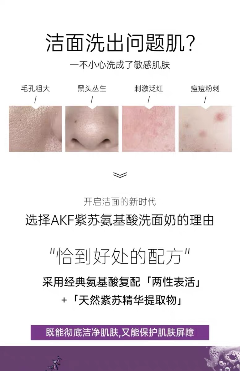 韩国AKF紫苏氨基酸洗面奶深层清洁收缩毛孔控油祛痘洁面乳120g*2