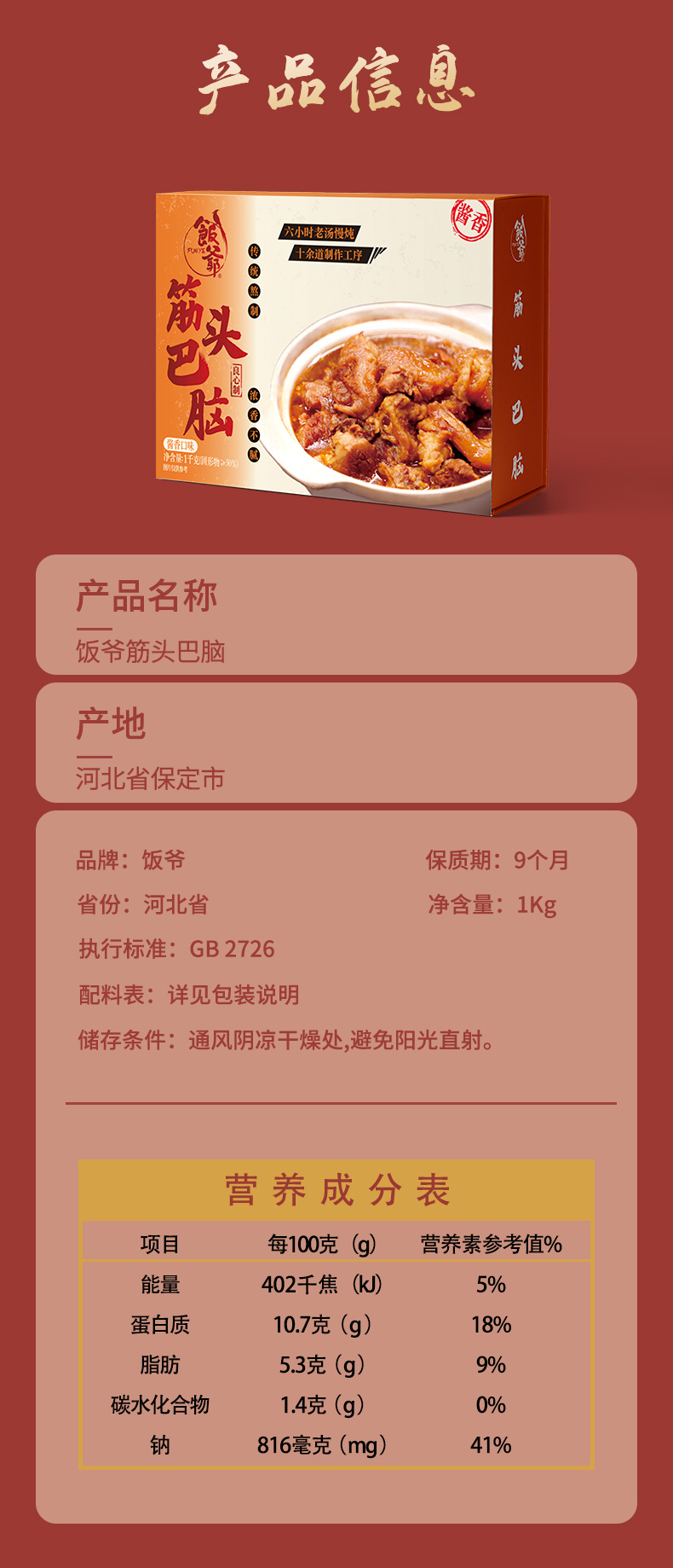 【肉筋软烂 软糯Q弹 老汤慢炖】饭爷筋头巴脑酱香口味 1kg*1//2盒