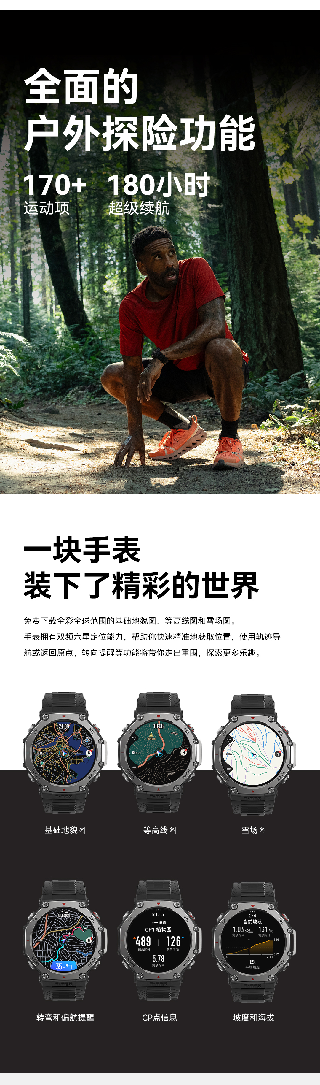 华米 T-Rex 3 户外运动跑步智能手表 48mm 1.5英寸AMOLED屏幕 最高亮度2000尼特 六星双频定位 170+运动模式 45 米自由潜 全面的户外探险功能