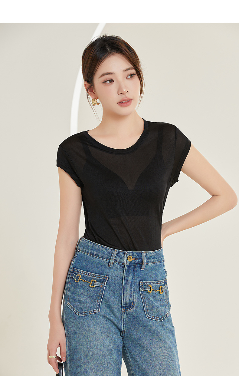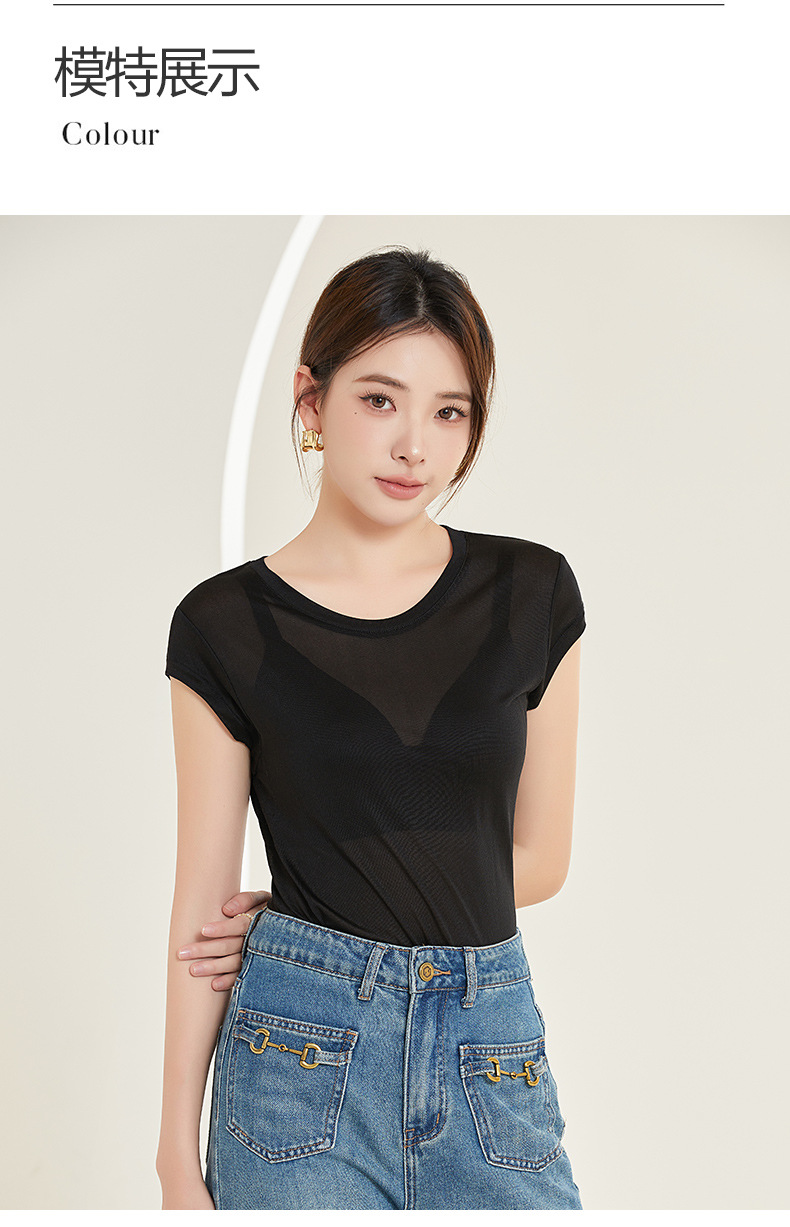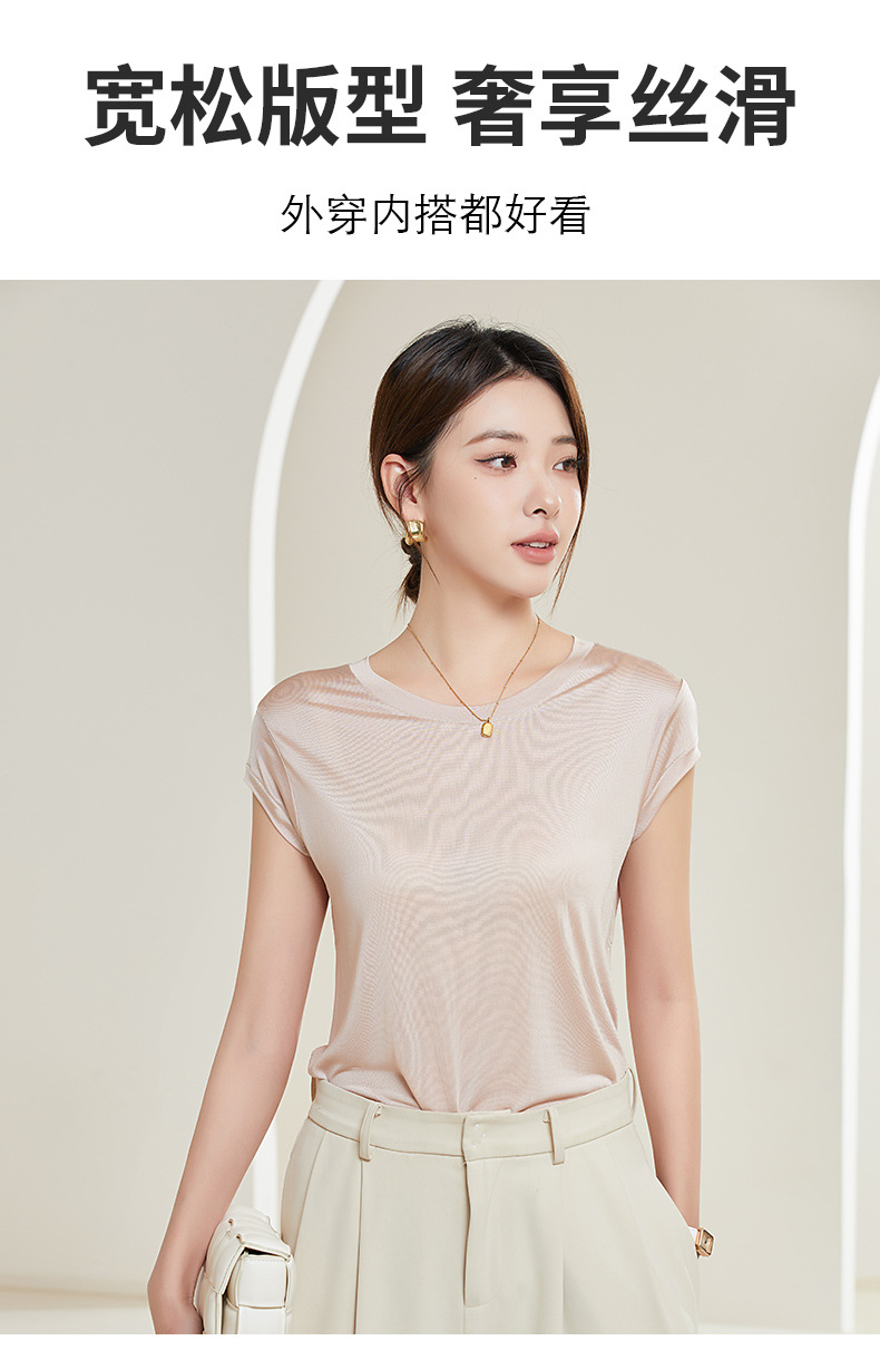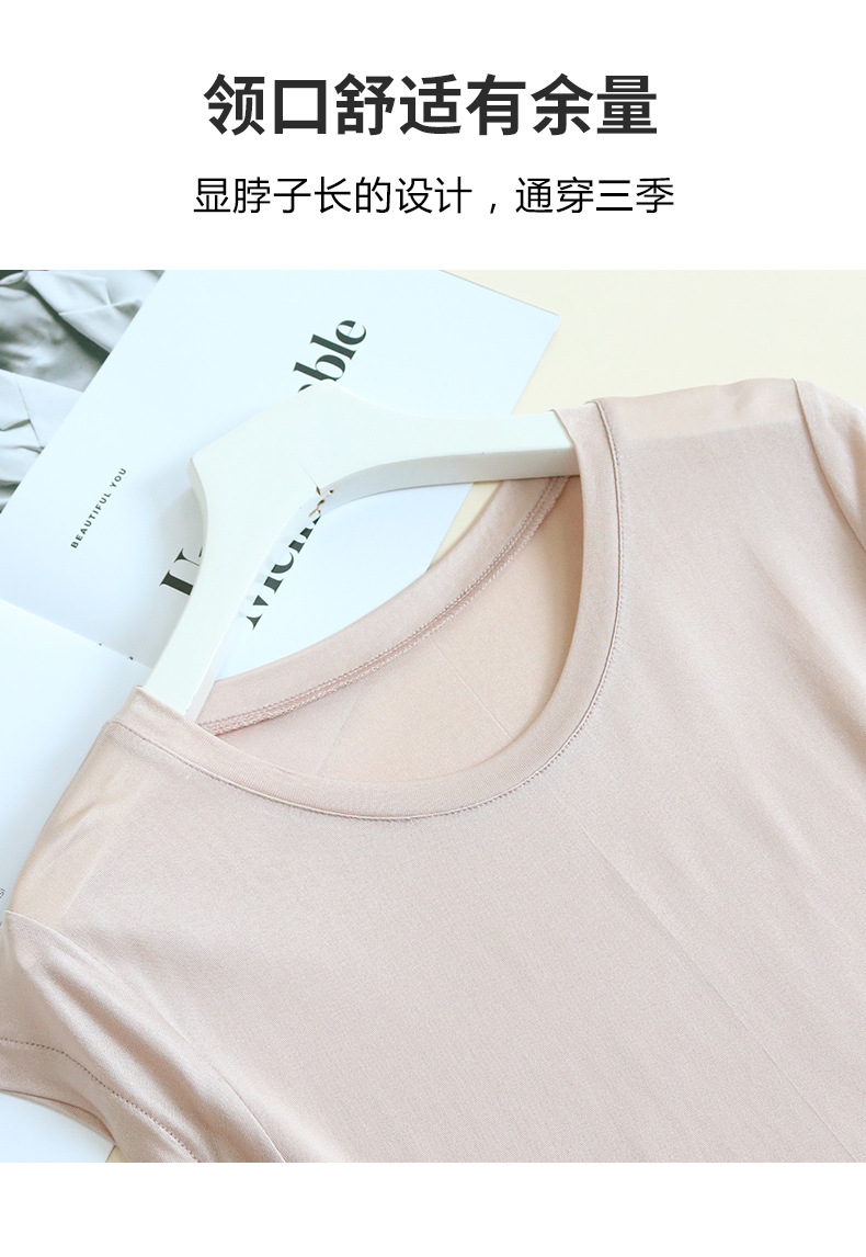 TG-TG03S284春夏真丝一分袖打底衫女家居服 桑蚕丝圆领短袖T恤腋下吸汗层